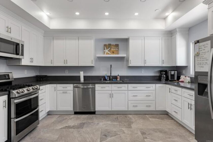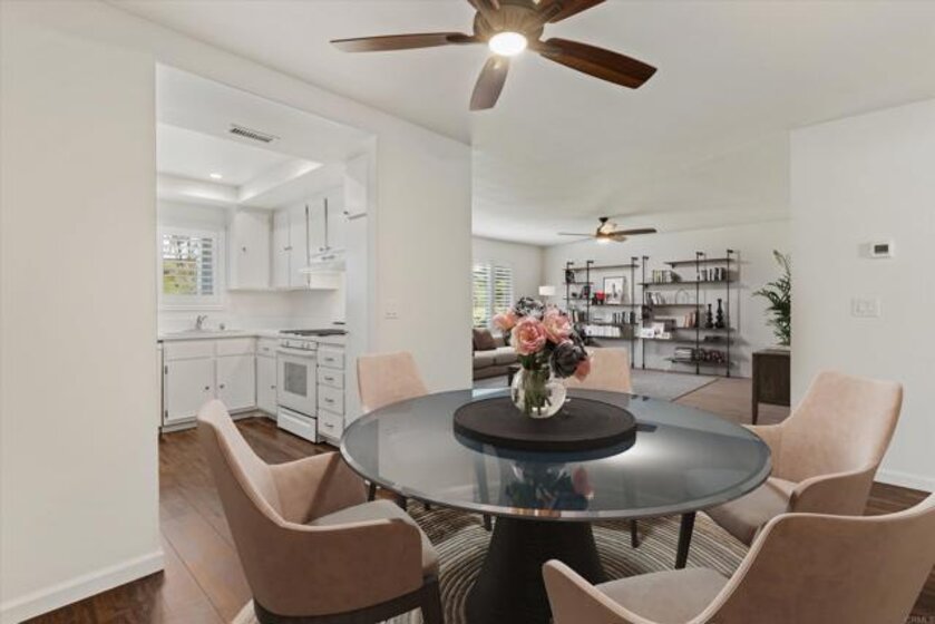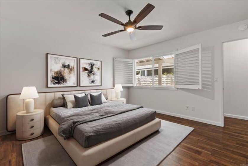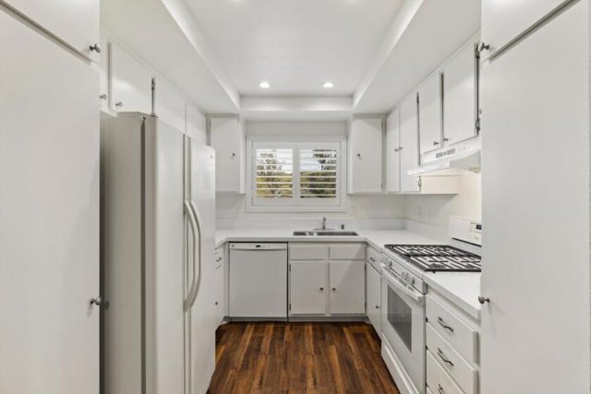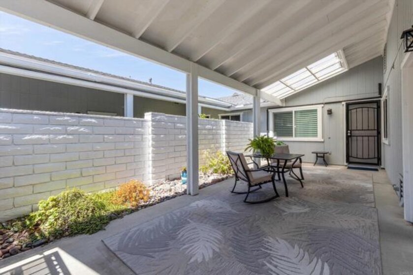 Breathtaking mountain views set the tone for this peaceful 2-bedroom, 2-bath hilltop home, ideally located in the serene Oceana Mission 4 community. Surrounded by lush greenbelts and scenic walking paths, this residence offers a rare blend of tranquility, privacy, and everyday comfort. Thoughtfully updated throughout, the home features modern quartz countertops, newer flooring, refreshed bathrooms, air conditioning, dual-pane vinyl windows, plantation shutters, and a newer roof. Perfectly positioned, the home enjoys expansive views from the front and a quiet grassy park just beyond the rear, creating a truly special indoor-outdoor setting. The bright kitchen showcases new quartz countertops, freshly painted cabinetry, a new sink, and gas cooking, all complemented by a window framing the mountain views. The kitchen flows seamlessly into the dining area and inviting living room, where large windows and plantation shutters continue to highlight the stunning natural backdrop. Both bedrooms are generously sized and thoughtfully separated for privacy, with no shared walls. The primary suite includes an en-suite bath with updated quartz countertops, while the second bedroom offers convenient access to a beautifully remodeled full bathroom. Additional highlights include a spacious, private enclosed courtyard, perfect for relaxing or entertaining, and an attached finished one-car garage with in-unit laundry. Residents enjoy the vibrant lifestyle of Oceana Mission 4, a welcoming 55+ community featuring a pool & spa, a recently remodeled clubhouse with a full kitchen, fitness center, and beautifully maintained grounds. The HOA fee covers water, sewer, trash, cable TV, exterior paint, and roof maintenance, providing both value and peace of mind.