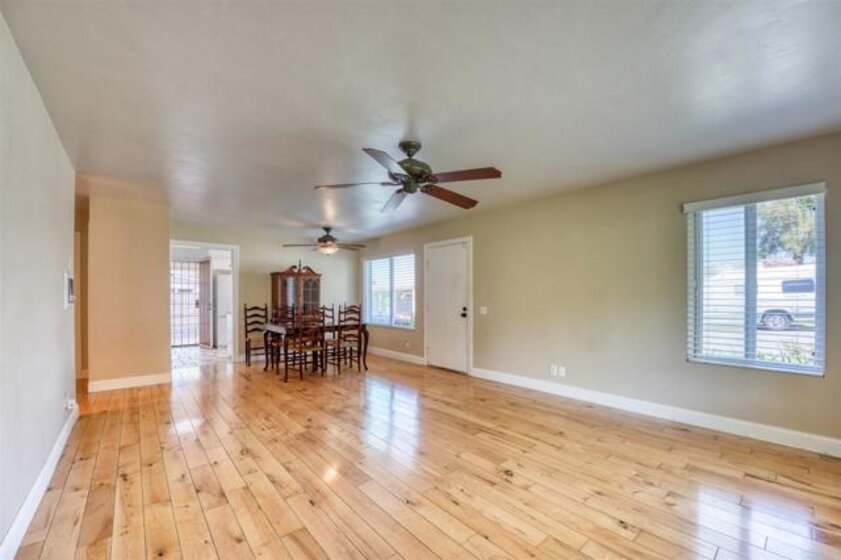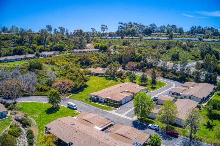 Welcome Home! Light and bright Oceana 55+ home- ready for you to move in! Spacious and upgraded 2 bedroom, 2 bath corner home- lots and lots of natural light! Meticulously maintained with wood floors, dual paned windows, ceiling fans, remodeled baths and kitchen. Peaceful and relaxing covered patio. Surrounded by lush, beautiful landscaping- backs up to greenbelt. One car attached garage. Close to shopping, restaurants, freeways, and more! Quick 10 minute drive to the beach. Community has a ton of amenities- pool and spa complex and more!