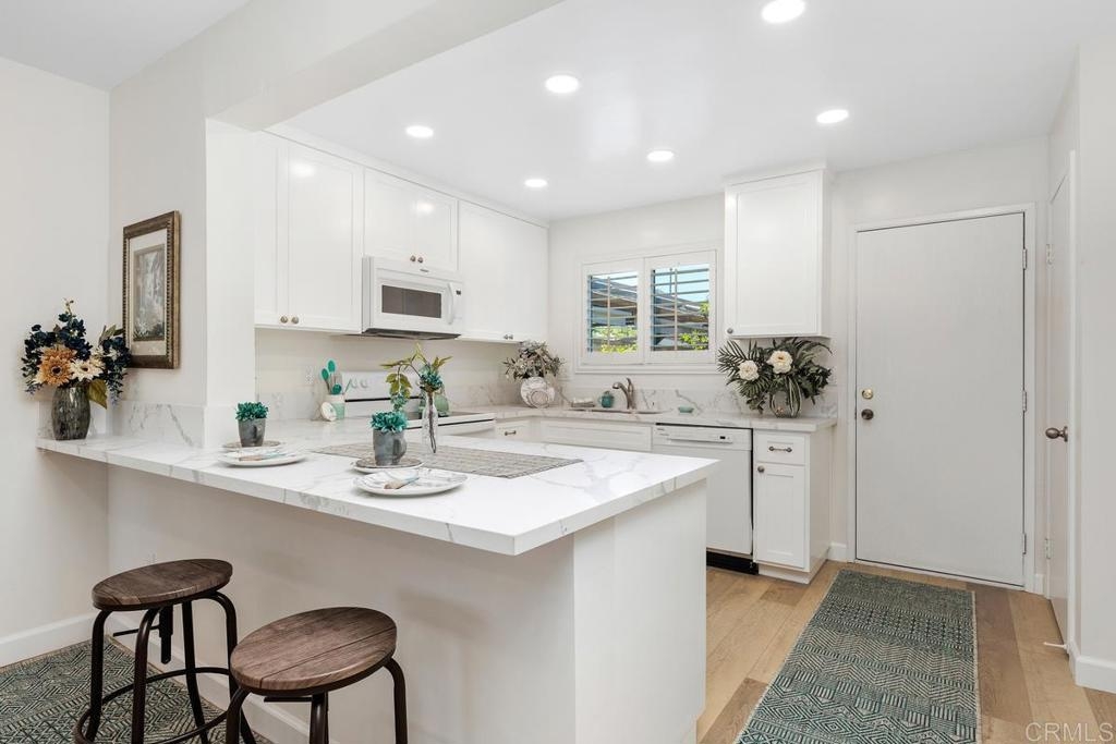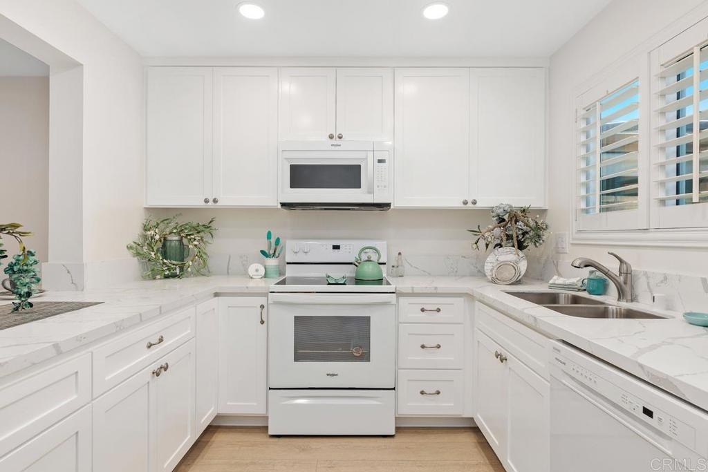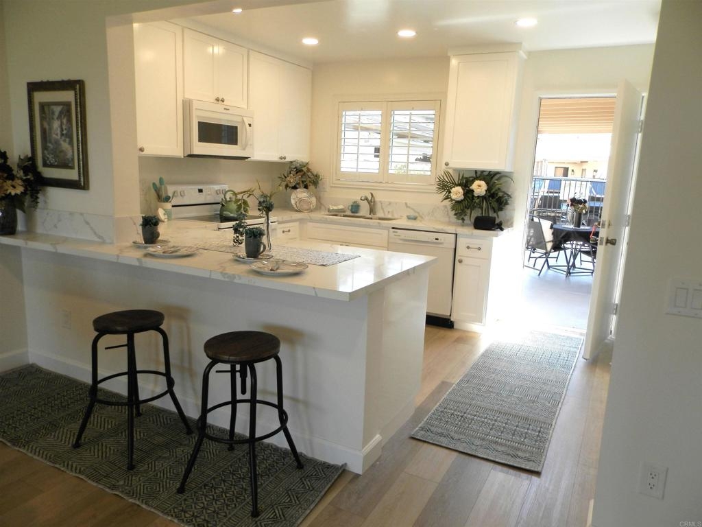 Enjoy PANORAMIC VIEWS in serene Oceana Missions II. Really move in ready, REMODELED 2 BR, 2BA home with NEW kitchen, QUARTZ counters, NEW cabinets, WATERPROOF laminate. NEW DUAL PANED WINDOWS!! PLANTATION SHUTTERS THRUOUT. Carport/patio is finished. Newer dishwasher. Ideal getaway location !! ROLL UP GARAGE DOOR! Single car garage + patio which can be used as a carport. HOA dues include water, sewer, trash + basic cable & insurance. HOA reroofed a few years ago & repainted exteriors. Inviting club house with pool + party kitchen ideal for reunions !!