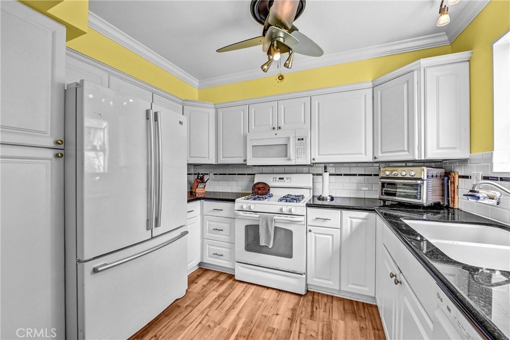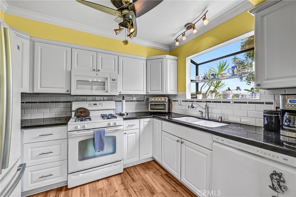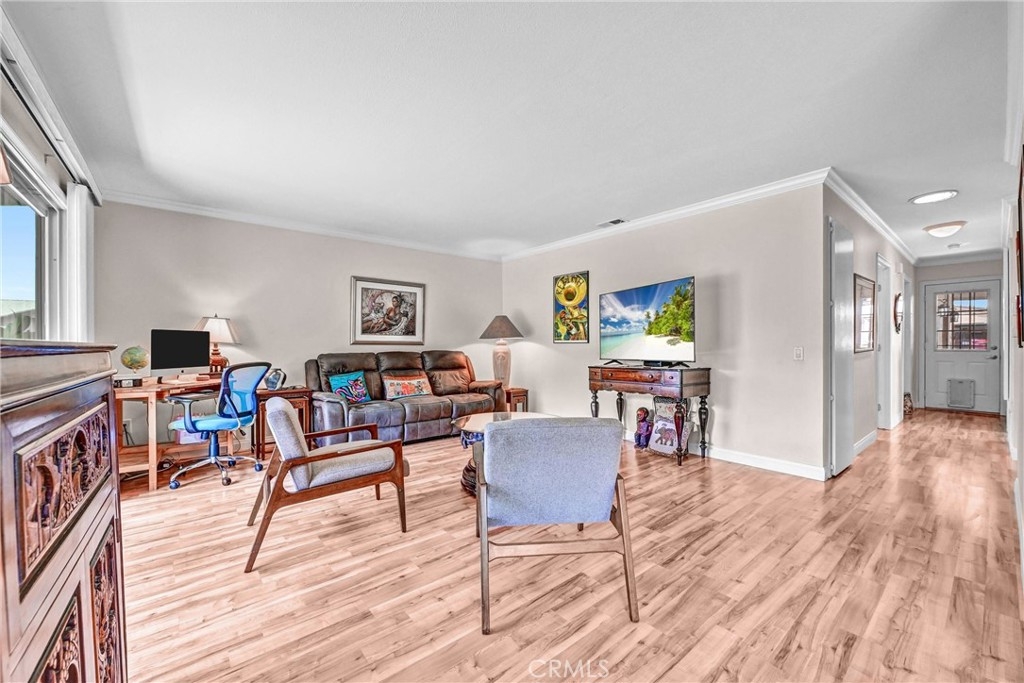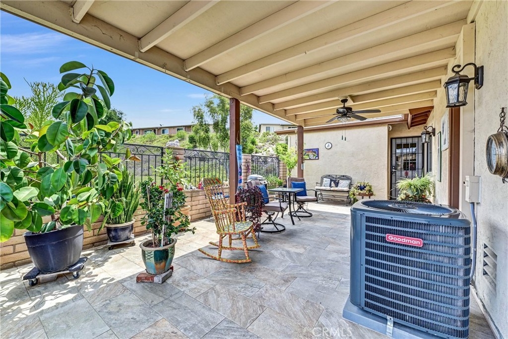 This HOME is in the best location for privacy in all of the Oceana Mission 2 community! This bright, sunny END UNIT fronts to no one; and it backs to nothing but a large, lush greenbelt that your dog will be crazy about! And so will you. Because every window has a view of greenspace; like living in your own park. This home inspires a happy feeling with its vibrant walls, which are just a paintbrush away from any color you want them to be. This Home showcases crown molding, light colored laminate floors throughout, and solar tubes in the hall and Bathroom. There’s also NEW ceiling fans and dimmers on the light in the primary Bathroom which features a walk-in shower, and in the Dining Room. The Kitchen is equipped with a garden window, granite counters, gas cooking, stainless dishwasher, and NEW disposal. The HVAC is 4 years young, and even the roof is brand NEW! NEW blinds on the sliding glass door, and NEW tile is on your very private enclosed patio with a 1 car attached garage right next to it, which is very convenient to bring in your groceries. The community has a clubhouse with a billiard room, game room, gym, pool, and spa. There’s also a social committee that plans lots of fun things like poker games and potluck dinners. The HOA fees include basic cable, sewer, water, trash, and roof maintenance. SOME OF THE PHOTOS HAVE BEEN PHOTO-SHOPPED.