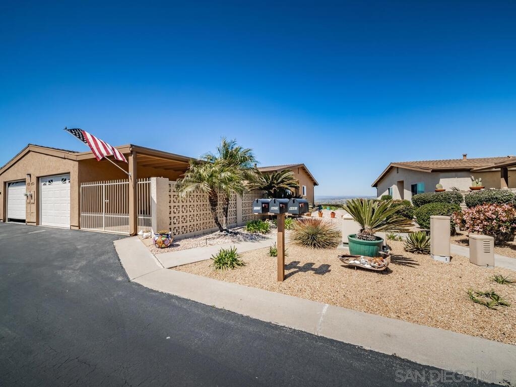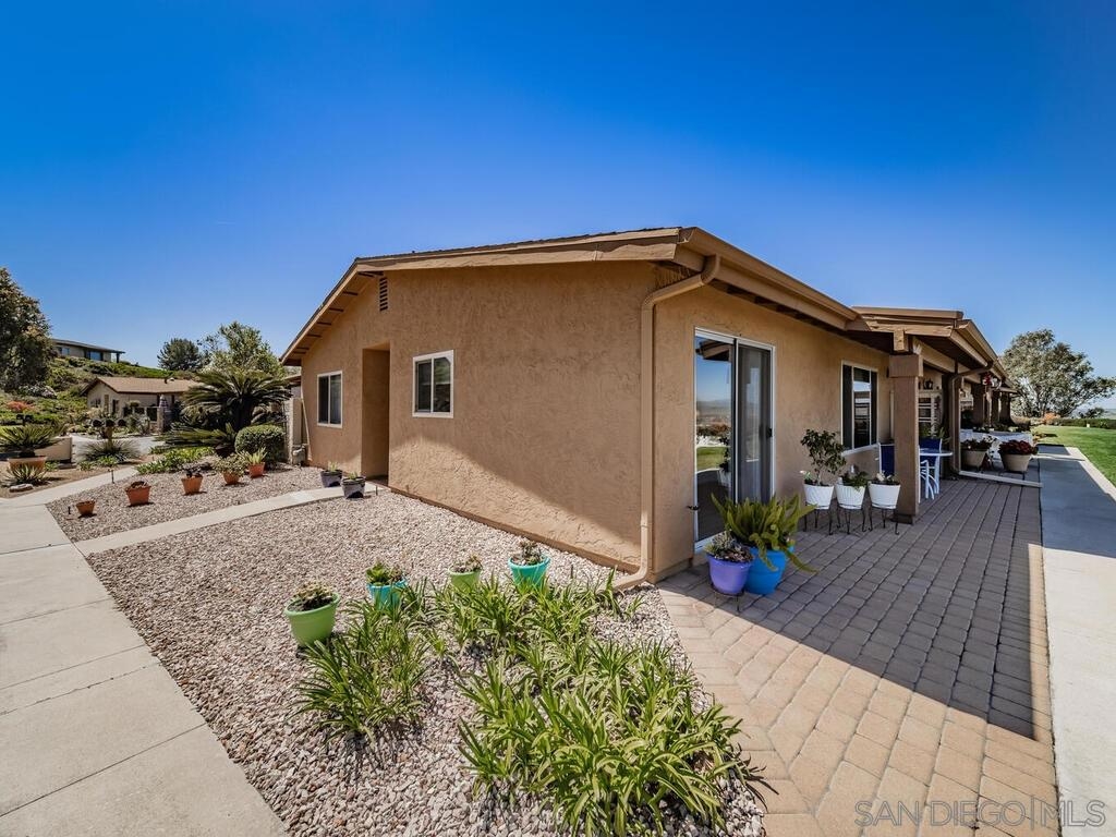 This lovely patio home is all about the simplicity of active SR living with spectacular, one-of-a-kind views. This highly sought-after end unit home in a 55+, vibrant community is move-in ready featuring 2 outdoor entertaining spaces. Enjoy your morning coffee with unobstructed views of the sun peaking over snowcapped mountains and endless rolling hills. This great home and its incredible views are a must see! (See Supp) This great 2-bdr, 2 ba, 1050 sf home is conveniently located just minutes from shopping, restaurants and Camp Pendleton’s back gate. Quick access to Rt 76 will take you 3 minutes west to the iconic landmark of the San Luis Rey Mission and its lovely grounds and architecture. A few minutes more is Oceanside’s Marina and its many restaurants and activities. The beach and Oceanside Pier are nearby too if an evening stroll at sunset calls to you. Back at home you’ll enjoy a peaceful community perfectly perched on a quiet hill, overlooking the valley below. The property is exceptionally maintained with plenty of green space, mature trees and wide streets for walking your dog and chatting with neighbors. For the social set, the clubhouse offers engaging activities to include yoga, water aerobics, pot-luck Fridays and game playing. Upon arrival you’ll be welcomed by a spacious, covered patio, perfect for entertaining. The tiled flooring and garden-like décor makes this outdoor space a perfect extension of the home’s square footage. The main entrance offers the incredible, sweeping views of mountains, rolling hills and miles of nature’s very best. You’ll be the first to know when snow arrives in Southern California as you wake up one winter morning to snow-capped mountain peaks. Enjoy your morning coffee on the front patio with breathtaking views. Inside you’ll find a well maintained, comfortable home with little to do to make it your own private sanctuary. The living room embraces incredible views and fresh air while offering plenty of space to relax and entertain friends and family. A separate dining room leads to a nice kitchen with white appliances, tile countertops and crisp white cabinetry. The master suite is spacious and comfortable. This lovely move-in ready home won’t stay on the market for long so call me soon for a showing! Equipment: Garage Door Opener Other Fees: 0 Sewer: Sewer Connected Topography: LL