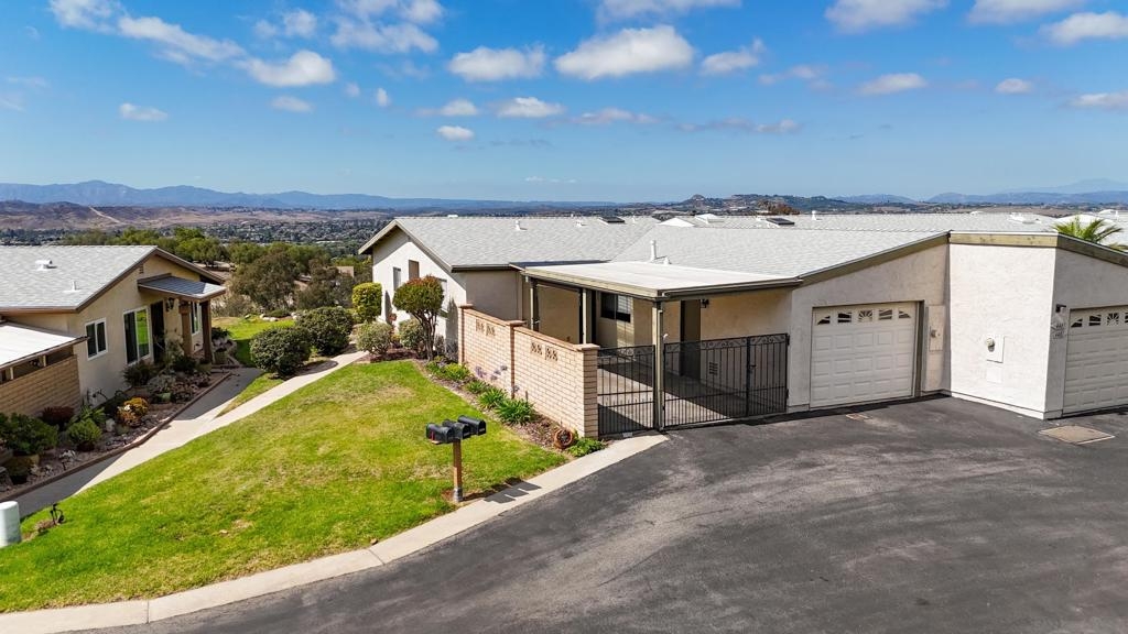 Tranquil Living with Breathtaking Views in Oceana. Welcome to 4485 Kittiwake Way in the heart of Oceanside’s coveted 55+ community. This charming 2-bedroom, 2-bath end-unit home offers privacy, comfort, and stunning views of the surrounding mountains and evening sunsets right from your living room and kitchen windows. Step inside to brand-new carpet throughout, creating a fresh and cozy atmosphere. The open living and dining area is filled with natural light and designed for easy living and entertaining. Being an end unit, you’ll enjoy the added benefit of only one shared wall — perfect for peace and quiet. Enjoy outdoor living in your spacious, private enclosed patio, perfect for relaxing or gardening in the ocean breeze. A convenient 1-car garage provides secure parking and extra storage. Brand new roof as of January 2025! This well-maintained community offers a wide range of amenities including pools, spas, a clubhouse, and social events — all designed to complement your active lifestyle. Whether you're relaxing indoors or enjoying the scenic views outside, this home is a serene retreat with everything you need at your doorstep.Don’t miss your chance to enjoy beautiful sunsets, a vibrant community, and comfortable living — all in one place. Emerald Isle Golf Course is adjacent to Oceana where residents receive a discounted rate on green fees. Plus, walking and biking trails meander through the community. Oceana is a beautiful active adult community in North San Diego County. Oceana is situated just 4 miles from the ocean and 275 feet above sea level, where residents can enjoy the climate that blends the hotter inland areas with cooler ocean breezes. Active adults looking to enjoy the Southern California climate at reasonable prices and with numerous amenities will find it all at Oceana. At the heart of Oceana is the clubhouse which has several options for active adults to gather with neighbors, whether by joining a club in the card room, challenging friends at pickleball, attending a fun event to meet new friends, or honing a new hobby in the ceramics, lapidary or woodworking shop. Oceana also provides several opportunities for residents to enjoy the beautiful year-round climate with two outdoor pools, BBQ areas, and the community garden. Please check out video! https://youtu.be/8dLfqE61bck