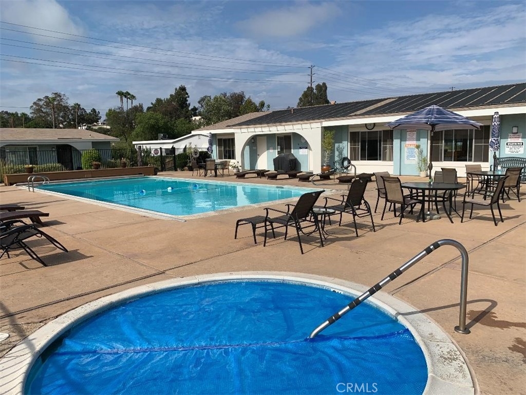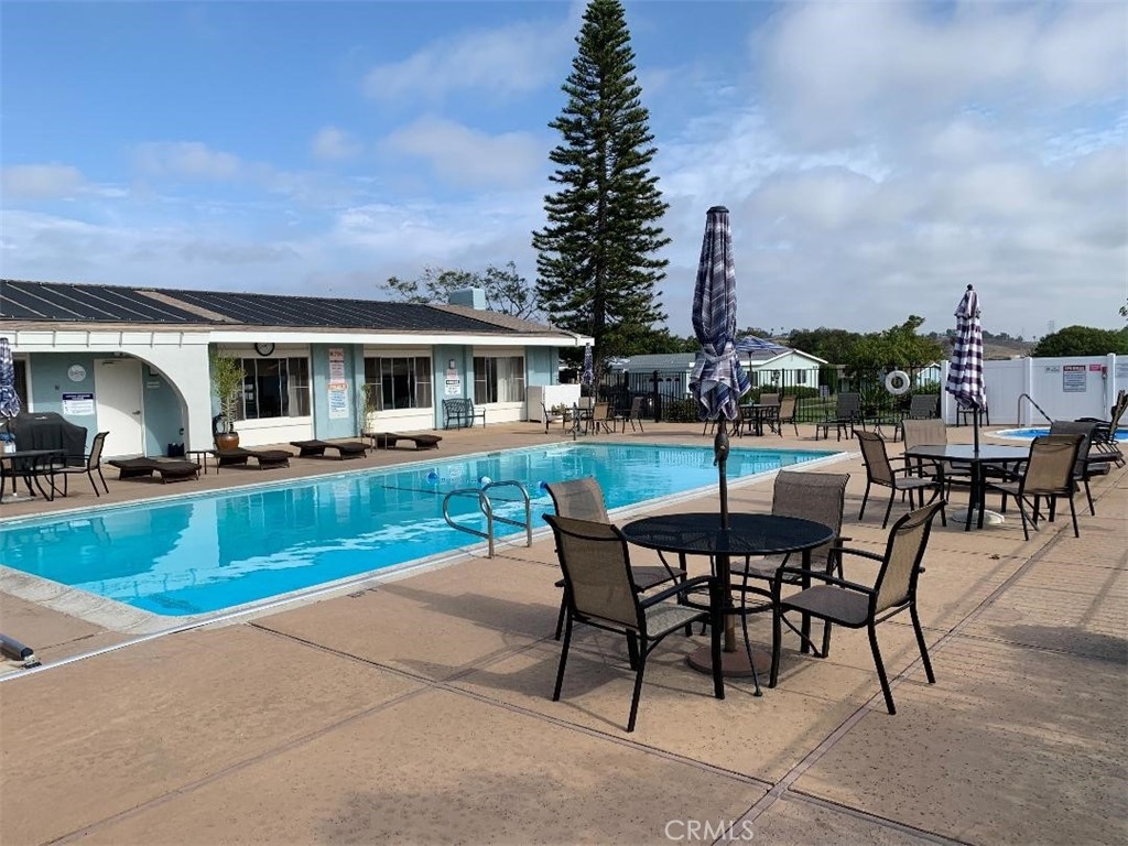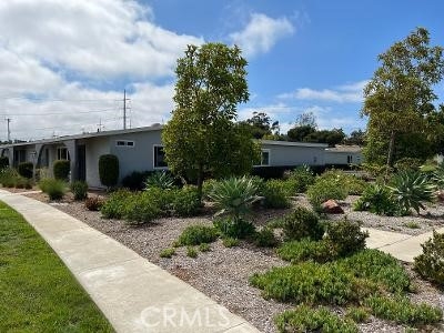 Nestled in a prime location on a hill within the community, this End Unit overlooks an expansive greenbelt, succulent gardens, and captures the fresh ocean breezes. A single story 2-Bedroom 2-Bath property, it is in a 55-plus community with outstanding association amenities. The spacious living room features a large picture window with a view and custom shutters. Remodeled kitchen with eating area. Both the bedrooms have a view of the plants and succulent gardens. The two bathrooms have been remodeled. Newer windows and newer sliding door to the roomy patio. Open the front door and back slider and ocean air flows through the unit. It has central air for those really hot days. One car garage with washer and dryer included. It is located a conveniently short distance from the huge community clubhouse with a full kitchen, roomy gathering room, billiard room, and features a large sparkling pool, and spa. HOA is a bargain as it covers basic cable, water, sewer, trash, exterior paint, and maintenance, pool, spa, and grounds. Over the years this unit has been re-piped, windows replaced, air conditioning added, and THIS PAST NOVEMBER 2022 A NEW ROOF INSTALLED ON UNIT INCLUDING THE CARPORT/PATIO.