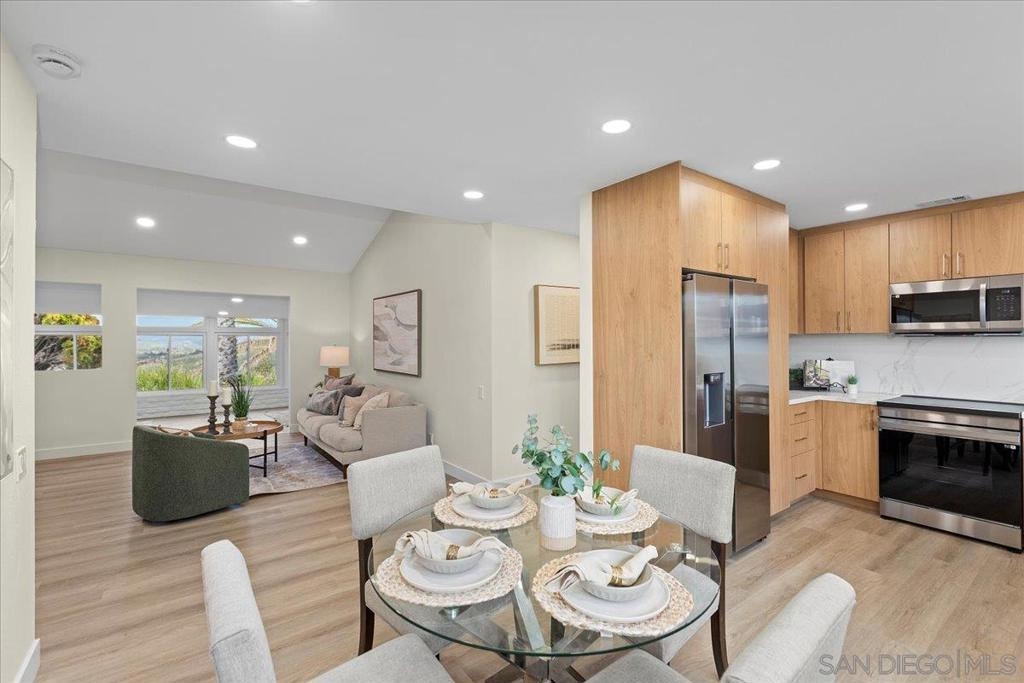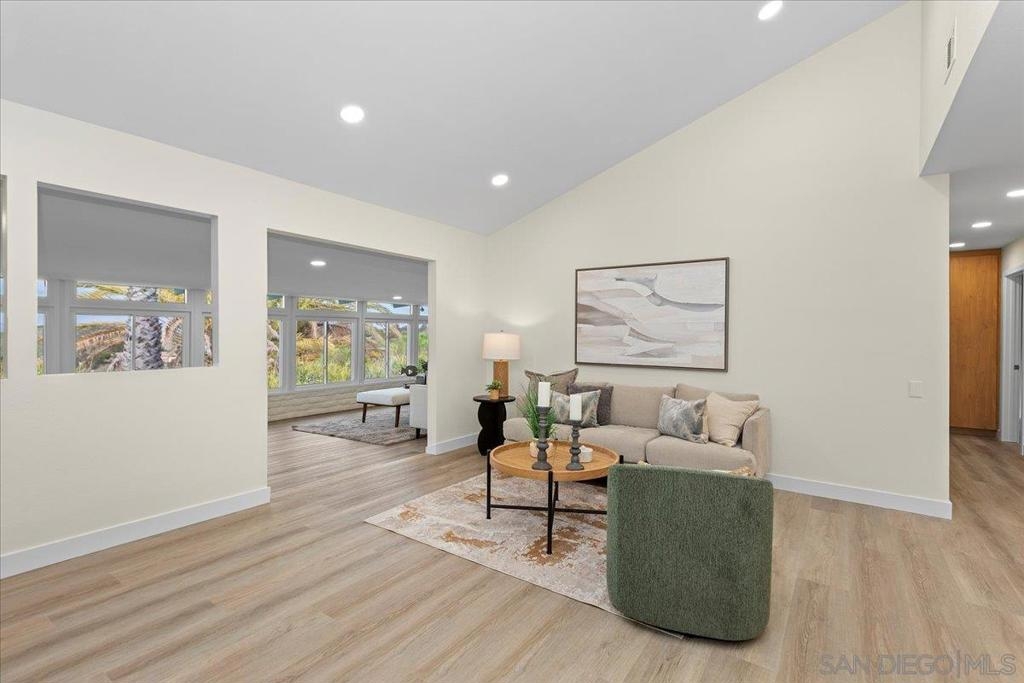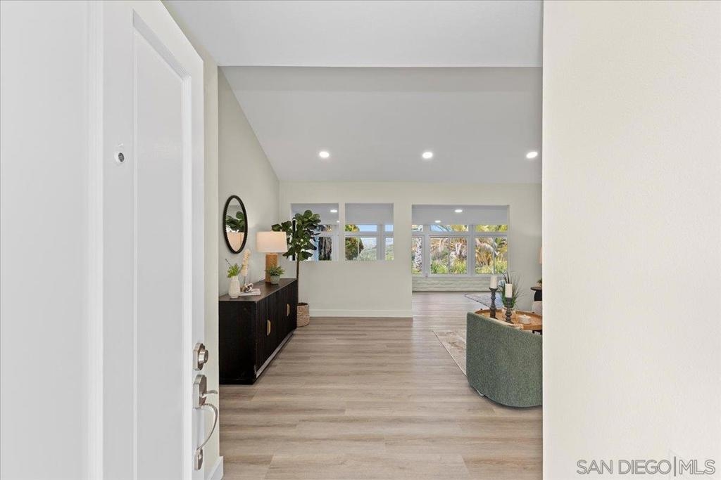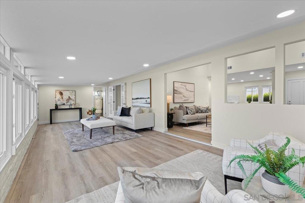 Welcome to the comfort of this beautifully remodeled home in the popular Oceana 55+ Community. Don't miss this exclusive opportunity to get a rarely available end unit perched on the bluff overlooking the valley to the north and the community garden below. The home features new luxury vinyl flooring throughout, new stainless steel appliances, fully remodeled kitchen and bathrooms, and a spacious enclosed lanai flooded with natural light overlooking the serene and dynamic view. This home is a peaceful retreat where you will love to host friends in this vibrant community loaded with amenities including a large community garden, two swimming pools and a spa, clubhouse, billiards room, pickleball court, dog park, walking and biking trails, and so much more. Adjacent to the the beautiful Emerald Isle Golf course where owners receive discounted green fees. Get involved in countless activities including book clubs, wood shop, lapidary, golf, trivia nights, and more. This community is close to nearby shopping and public transportation and just 4 from the beach and a 10 minute drive to downtown Oceanside and the pier.
