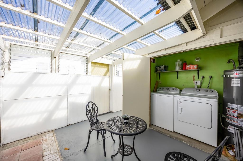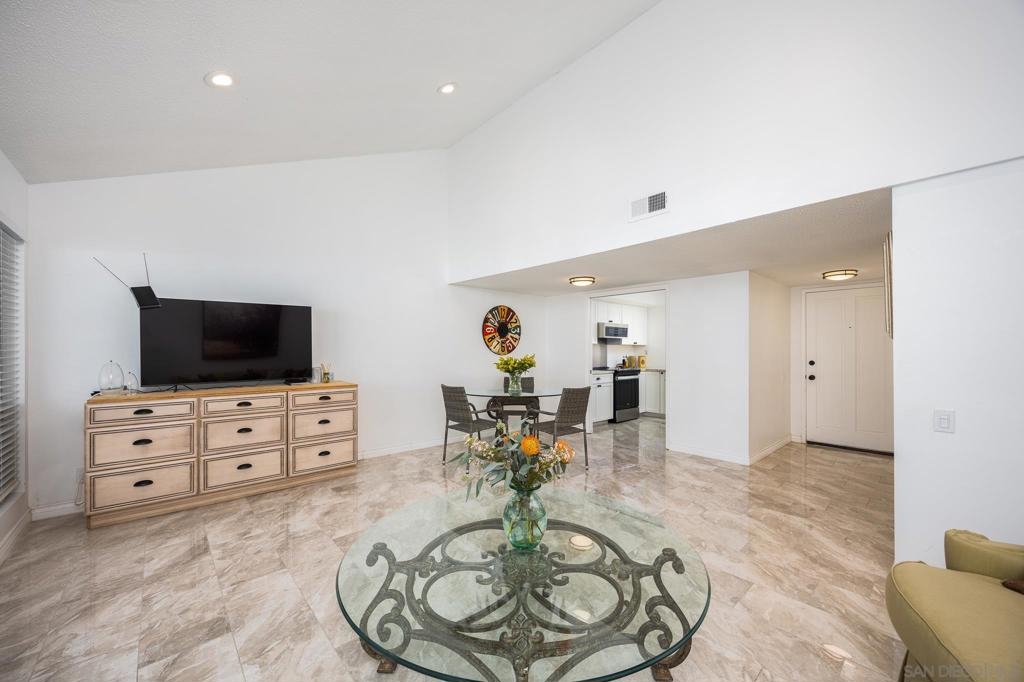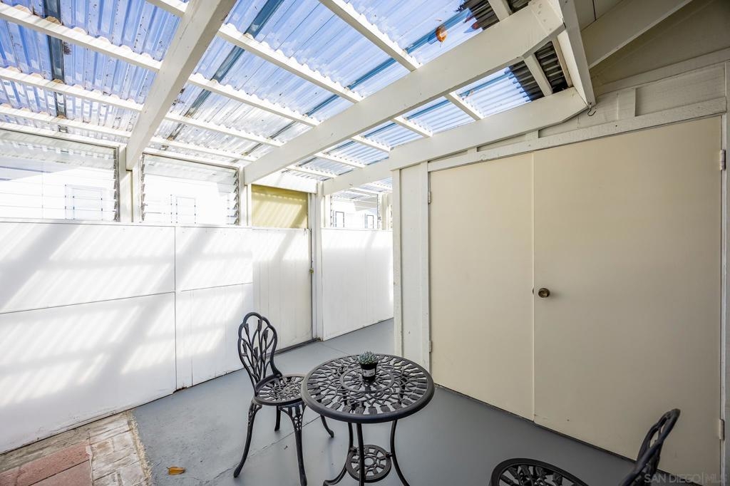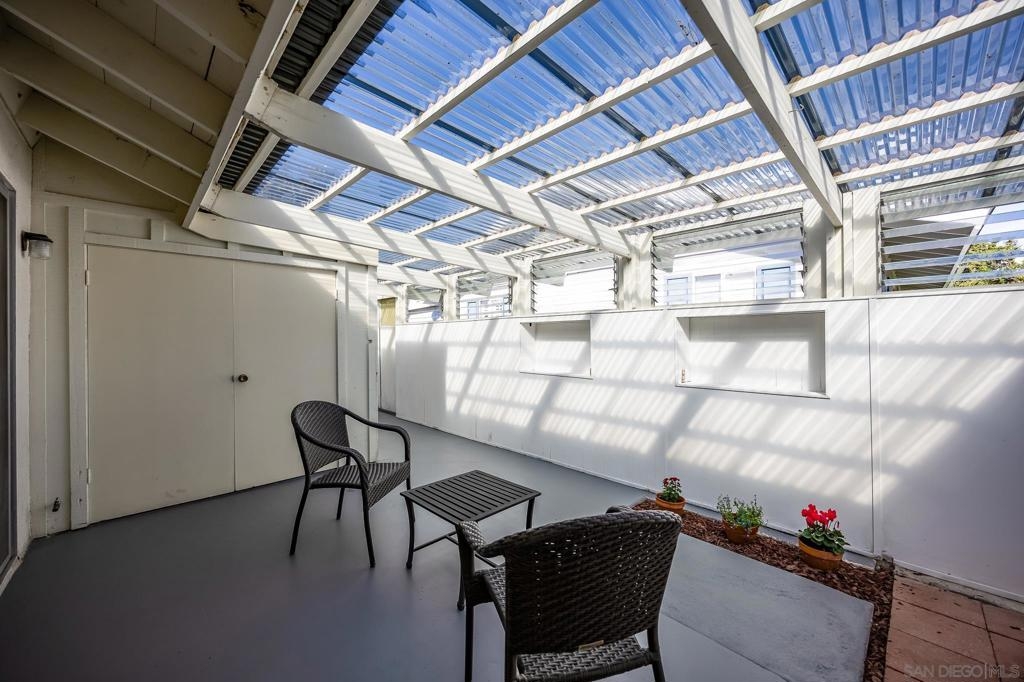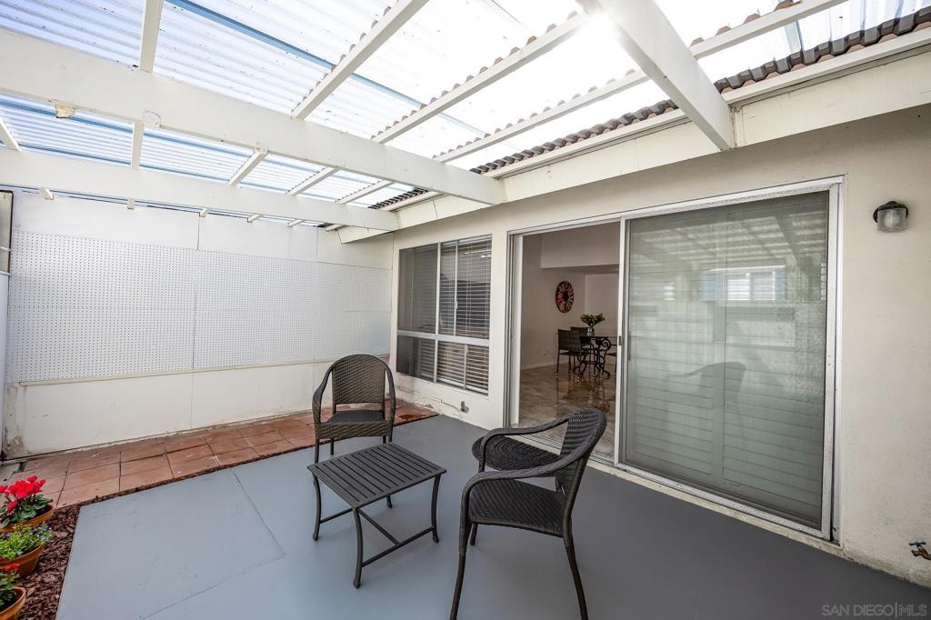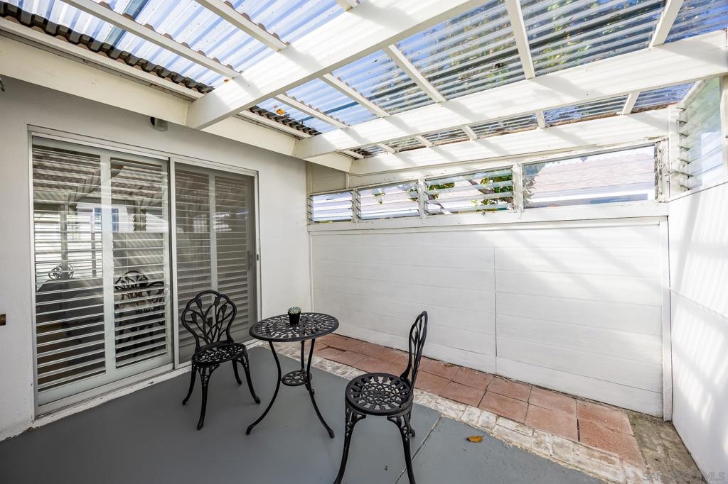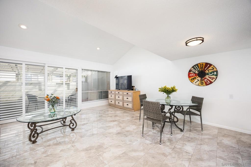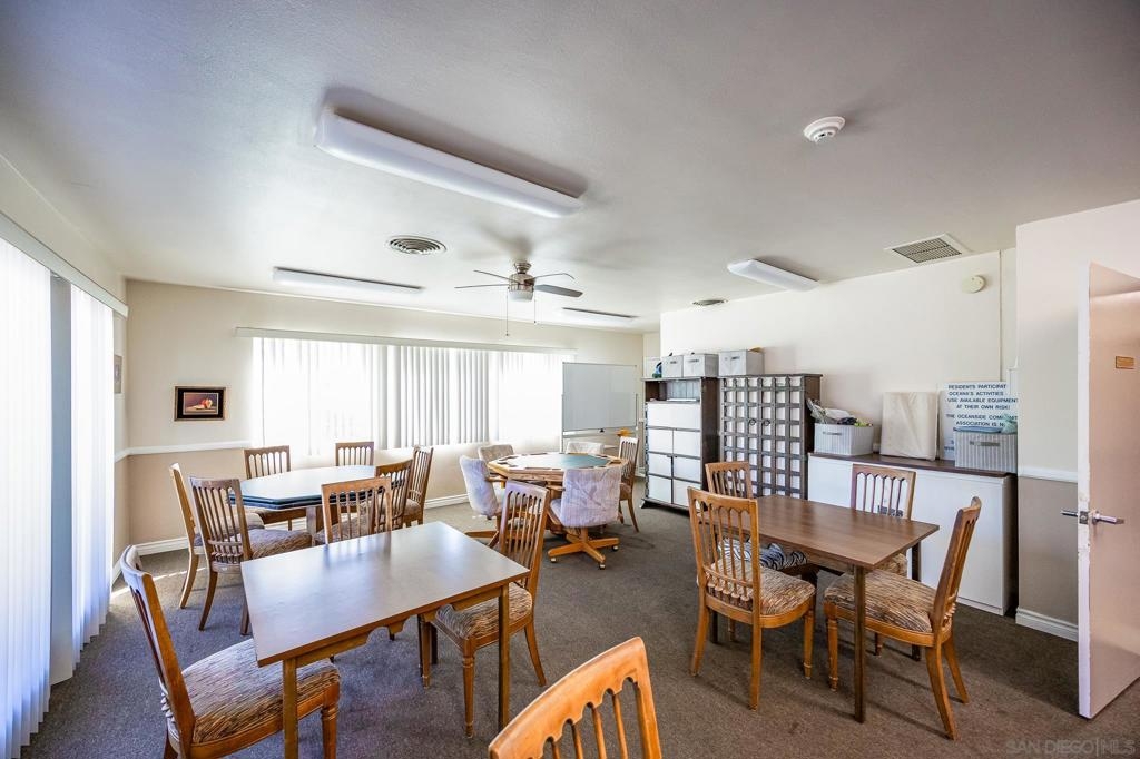 Single Story townhouse available in the Active 55+ Oceana community--feels like a house! Open layout with vaulted ceilings in the living room allows for lots of natural light. Renovated kitchen features high-end refrigerator, granite counters, updated white cabinetry, and stainless appliances. The home is currently 906 sq ft as is, or convert the enclosed porch areas to living space to increase size to 1313 sq ft. The Oceana Community offers many social activities and events, including fitness classes, golf, pickleball, gardening club, cards, community pool and spa, art classes, and access to community wood shop, library and dog park. The HOA also covers maintenance of common grounds, water, sewer and trash. Conveniently located near shopping, dining, and entertainment. Walk to Emerald Isle Golf Course or take a short drive to Oceanside Pier and beaches. Come see it and make it your new home today!