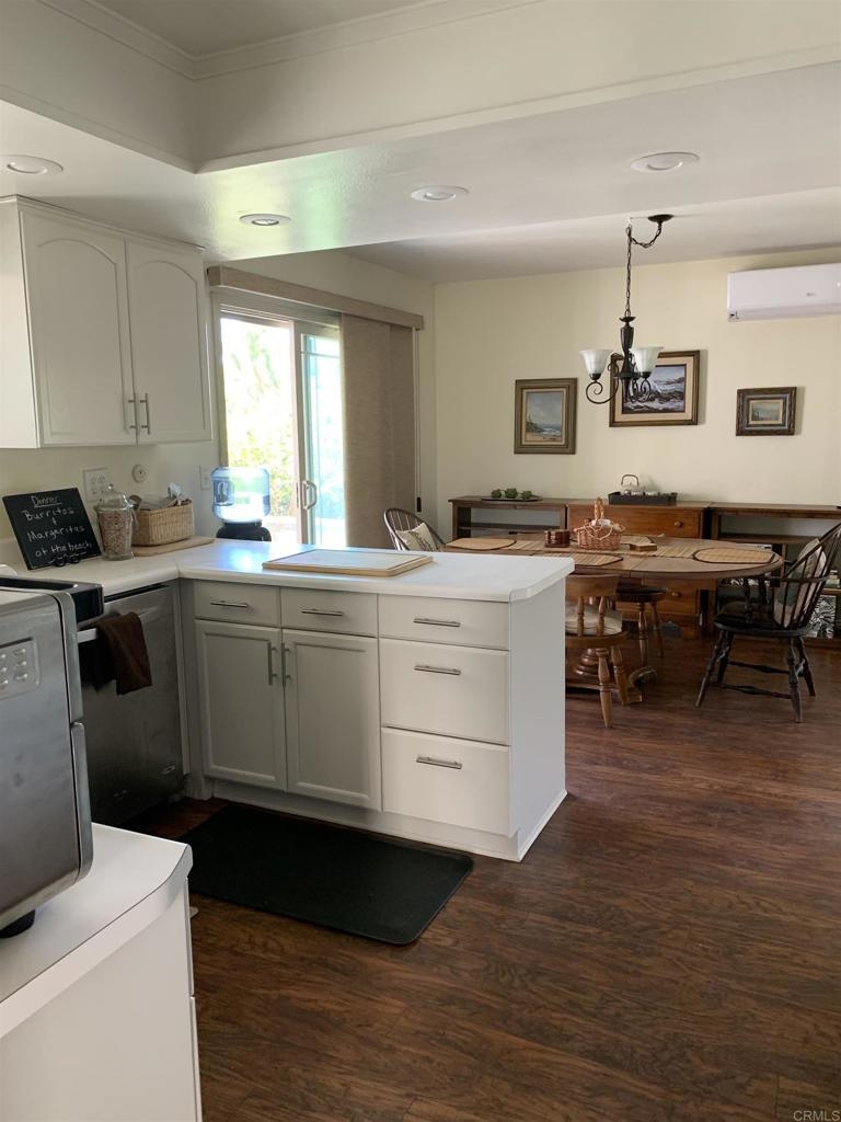 Beautiful single story Detached Home in Oceana. Enter through the private courtyard that also provides access to the 2-car garage. There are two bedrooms/two bathrooms in 1347esf that have been beautifully upgraded. Private patio off the kitchen, with another off the living room. Newly painted kitchen, dining area, pergo laminate floors, large baseboards, built-in shelving in the second bedroom, and vinyl windows throughout. Heat pumps provide air condition/heat throughout the home. There have been two natural deaths in the property since May, 2024.