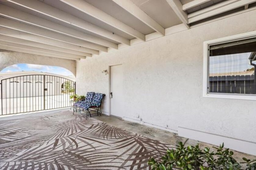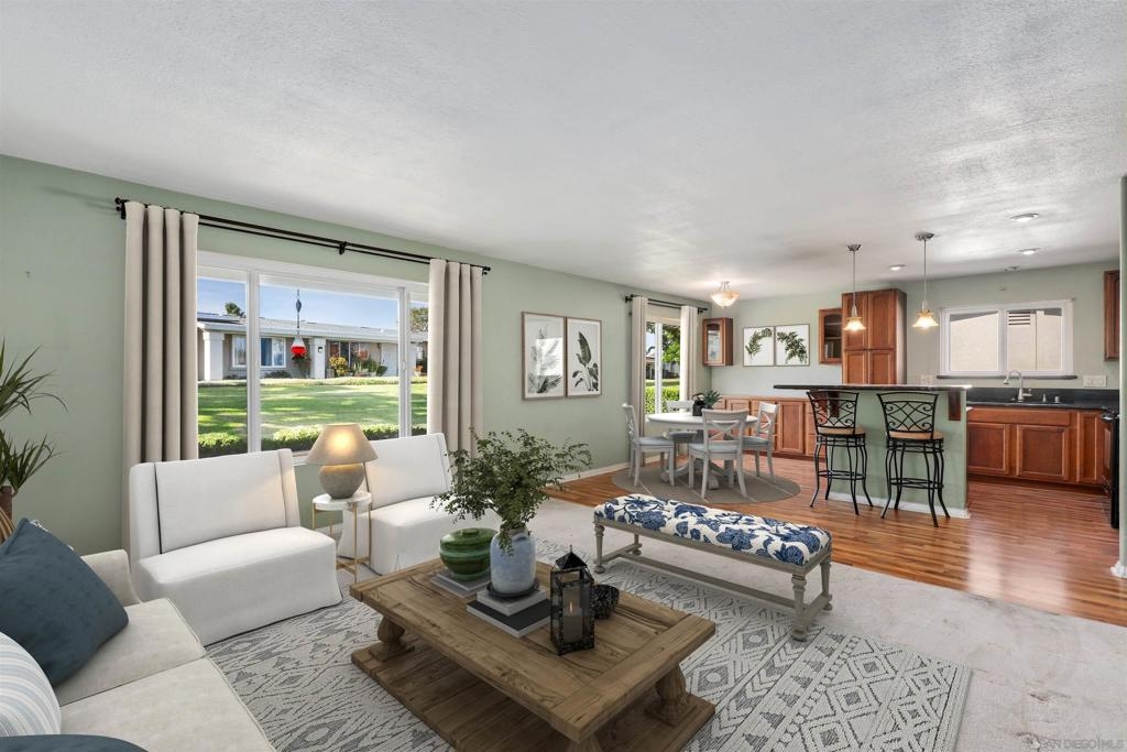 Welcome to this open concept 2-bedroom, 2-bathroom end unit situated in the vibrant 55+ community of Oceana. This inviting residence features a modern, light-filled floor plan with large windows that offer serene greenbelt views and bathe the space in natural light. The beautifully remodeled kitchen seamlessly flows into the living and dining areas, and boasts high-end cabinetry with soft close drawers and adjustable shelves, granite countertops, and a brand-new microwave. An eat-at island enhances both style and functionality, while a built-in buffet in the dining room provides additional storage. The primary bedroom includes a tastefully upgraded en-suite bathroom for added convenience and comfort. Across the hall, is a generously sized secondary bedroom. Step outside to the enclosed patio, perfect for private dining, entertaining, or even parking an additional vehicle. Residents enjoy the community’s beautifully landscaped grounds, as well as access to a pool, hot tub, and clubhouse, which features a pool table and library. Conveniently located near dining and shopping options, this home offers both comfort and a wealth of amenities.
