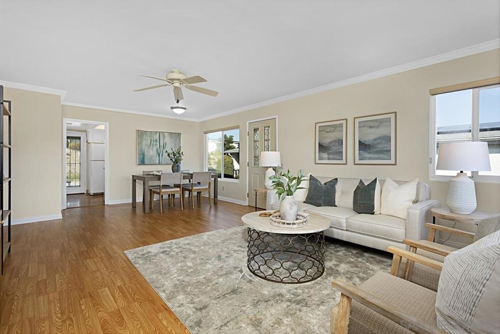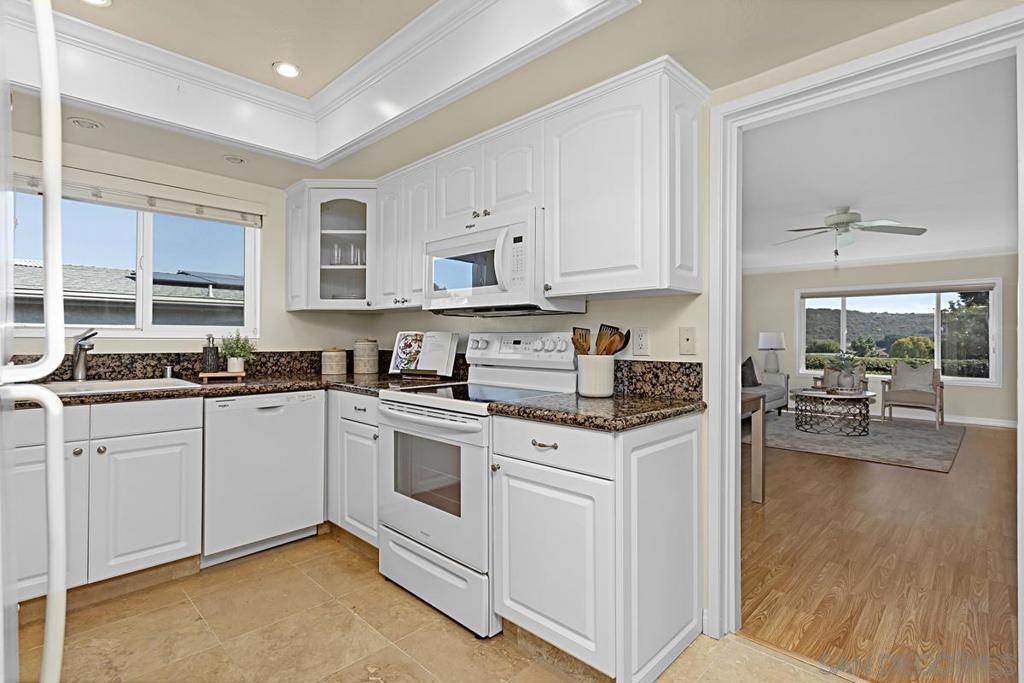 Welcome to this impeccably maintained, exceptionally light and bright home in the sought after Oceana 55+ resort style community. New paint, updated kitchen and bathrooms, laminate flooring, crown molding and dual pain windows are just the beginning. New roof in 2017. Gorgeous inner courtyard for outdoor living and open span green belts below. Expansive mountain views from the living room and bedroom make this home a must see. The complex is extremely well maintained with a pool, jacuzzi, club house and landscaping with walking paths.