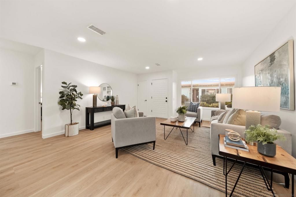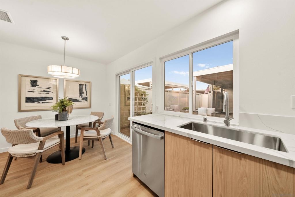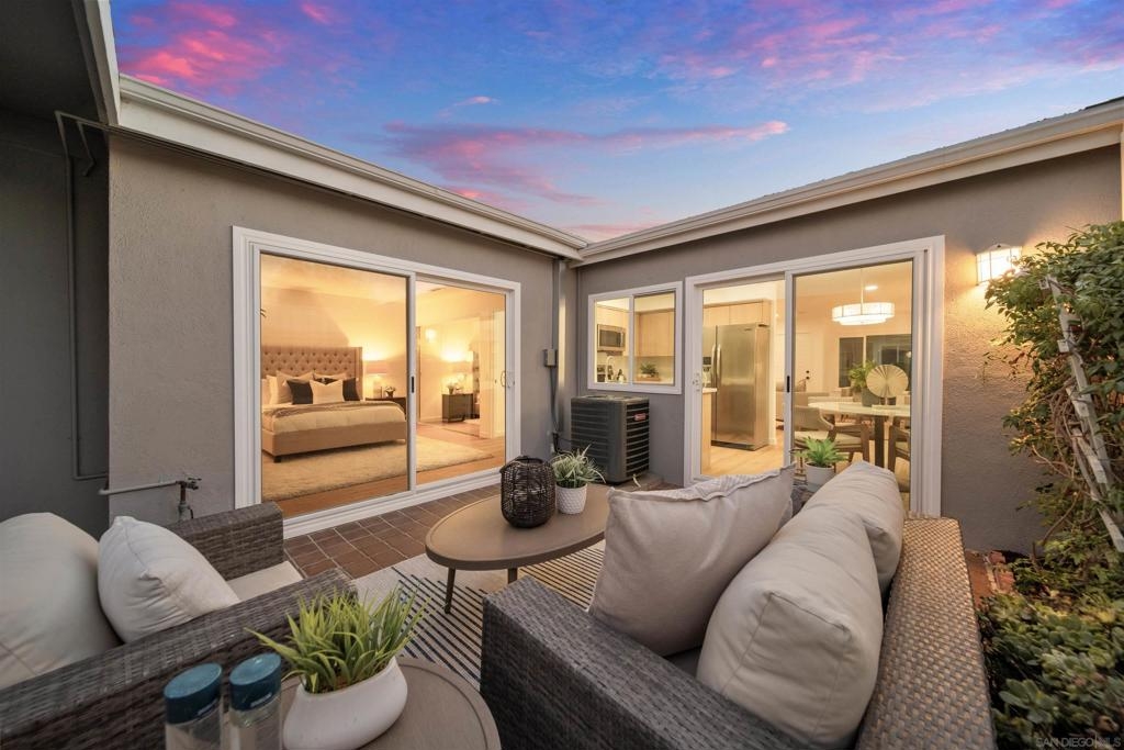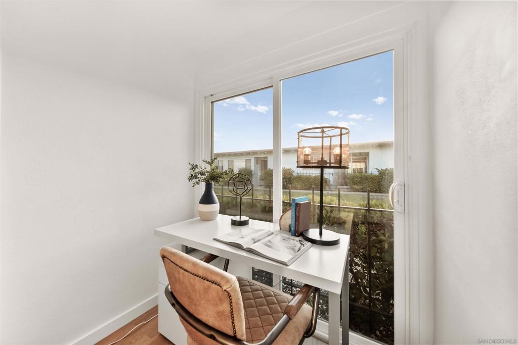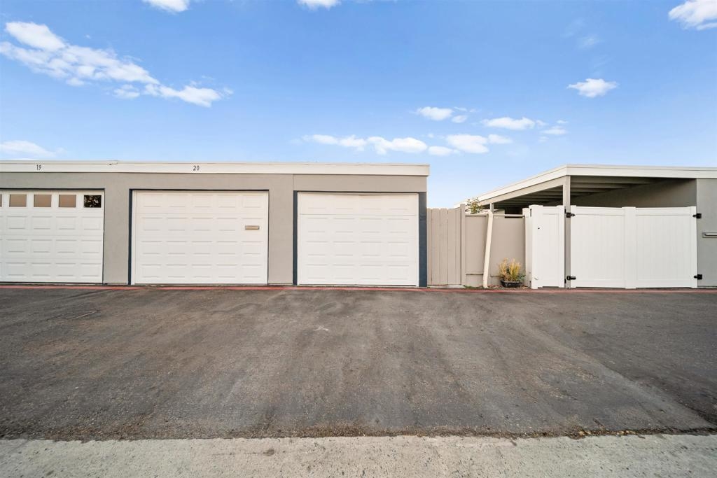 Beautifully designer finished and updated 2 bedroom 1.5 bathroom home is waiting for you in the vibrant Oceana 55+ community! One of the bedrooms includes a private half bathroom and an additional versatile space that can be customized to suit your needs- whether it's an office, hobby studio, or more. Two detached garages where you'll have plenty of space for your vehicles and belongings. Your private outdoor courtyard offers you a place to relax and enjoy the fresh air. The breeze can flow through both the second bedroom and the dining room, creating a serene atmosphere. Indulge in the active lifestyle this community has to offer with two refreshing pools, pickleball courts, a dog park, community garden, Emerald Isle golf course, and daily activities.