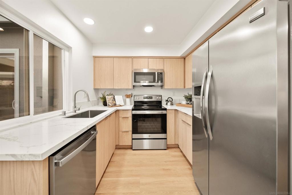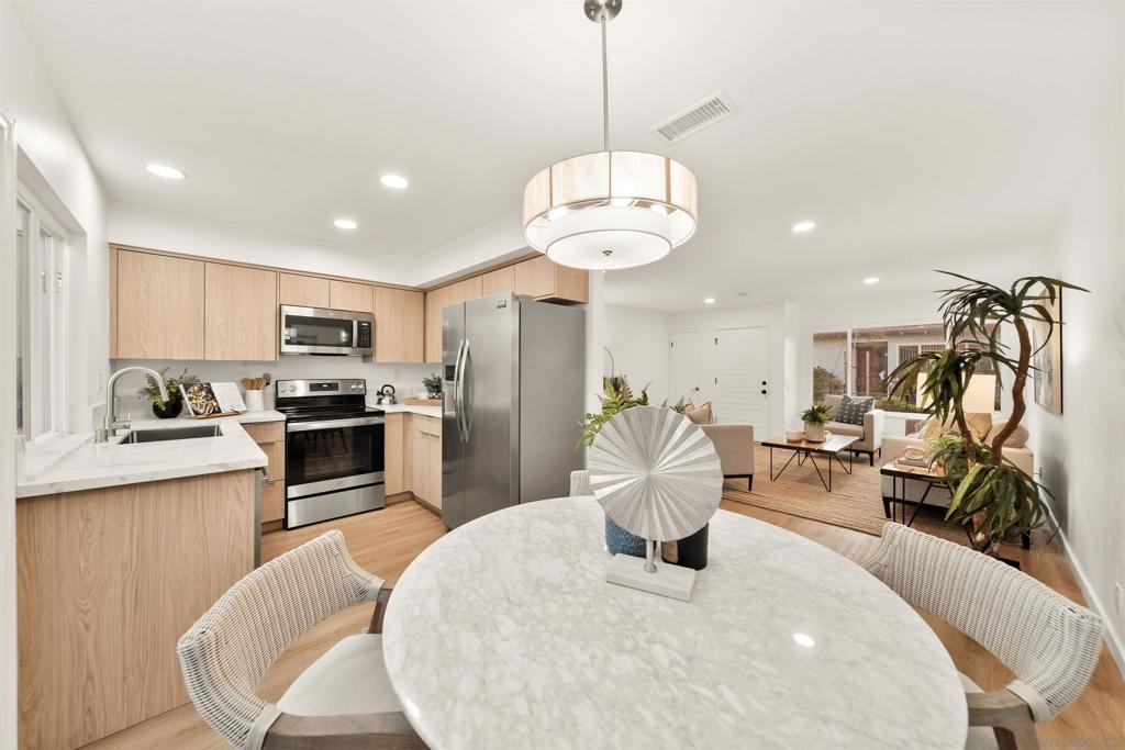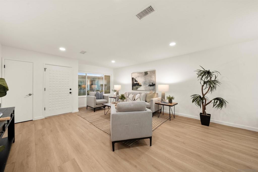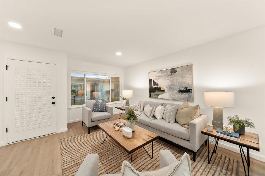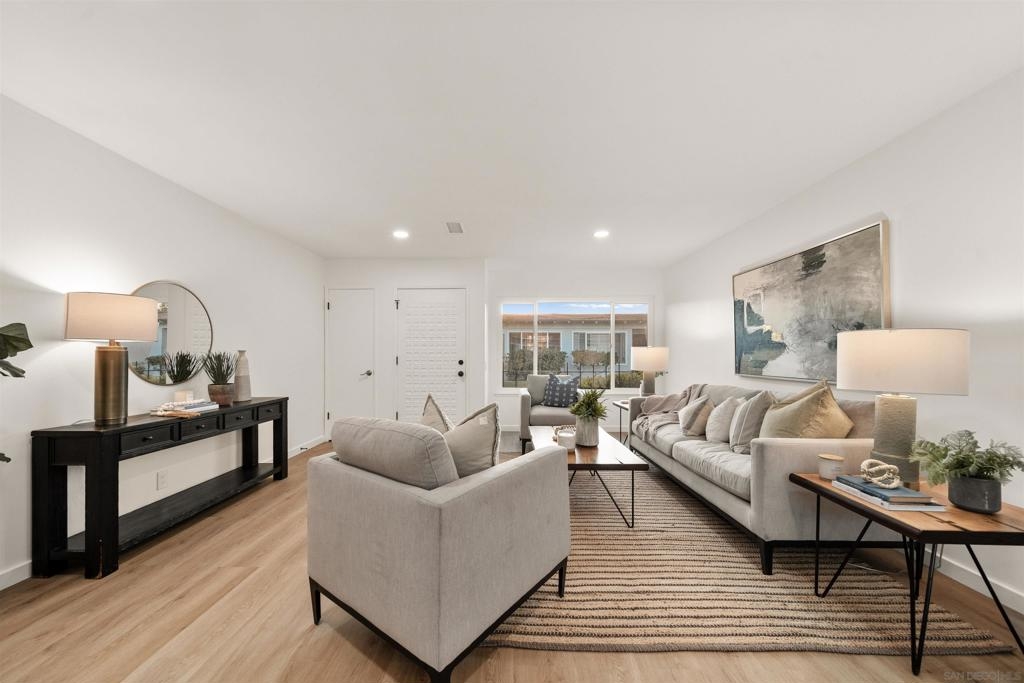 Beautifully designer finished and updated 2 bedroom 1.5 bathroom home is waiting for you in the vibrant Oceana 55+ community! One of the bedrooms includes a private half bathroom and an additional versatile space that can be customized to suit your needs- whether it's an office, hobby studio, or more. Two detached garages where you'll have plenty of space for your vehicles and belongings. Your private outdoor courtyard offers you a place to relax and enjoy the fresh air. The breeze can flow through both the second bedroom and the dining room, creating a serene atmosphere. Indulge in the active lifestyle this community has to offer with two refreshing pools, pickleball courts, a dog park, community garden, Emerald Isle golf course, and daily activities.