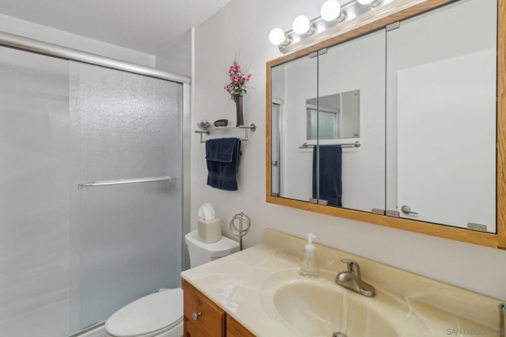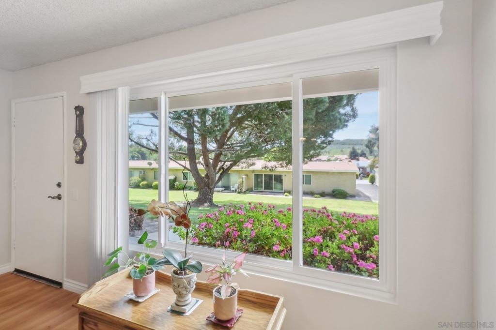 Welcome to this beautifully maintained, light-filled home in the coveted Oceana 55+ resort-style community. Featuring dual pane windows, laminate flooring, and updated kitchen and bathrooms, this home blends comfort and style. Central forced heating and a ductless mini-split A/C system ensure year-round comfort, while modern PEX plumbing adds peace of mind. The spacious inner courtyard is perfect for outdoor relaxation, and expansive mountain views from the living room and bedroom create a serene backdrop. Residents enjoy access to a pool, spa, clubhouse, walking paths, and impeccably kept grounds. Conveniently located near shopping and dining options, including Mission Marketplace and Pacific Coast Plaza, this home offers both tranquility and accessibility. Additional nearby shopping destinations include The Shoppes at Carlsbad and Carlsbad Premium Outlets, providing a variety of retail and dining experiences. Experience the perfect blend of comfort, convenience, and community in this exceptional Oceana home.