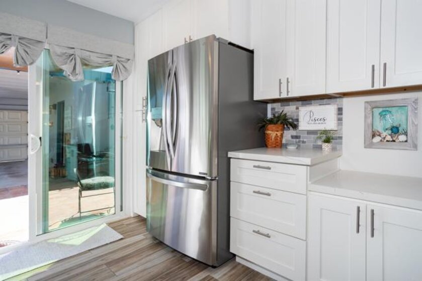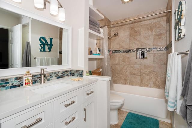 Coastal elegance throughout this home that is nestled in the 55+ community of Oceana. 1 Bedroom 1 Bathroom / 812 sq. ft. Gorgeous kitchen that does not disappoint - island, quartz countertops, ss appliances, pantry with pull out shelving & a farm sink. Spacious living room & dining room with views of the community greenbelt through the white shutters. Stunning & functional bathroom with porcelain shower walls and flooring. The fantastic bedroom has a wonderful walk-in closet & a sliding door that leads out to the tranquil backyard. A private covered carport & 1 car garage with Epoxy flooring - both the carport and the garage have roll up garage doors - WOW! Newer AC, furnace, roof, dual pane windows & sliding doors, plumbing, paint etc... Community pool, spa, garden, dog park & clubhouse. HOA includes water, sewer, trash & basic cable.