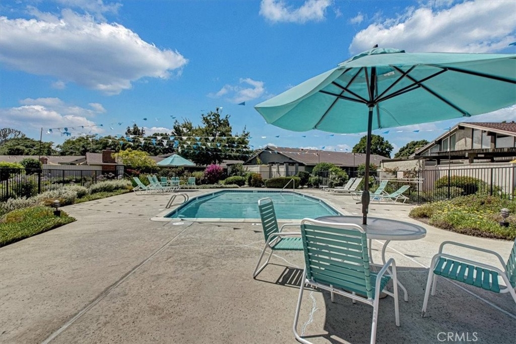 Here is your opportunity to own your own home in a quiet and parklike community! This condo has everything you need- a primary bedroom with a dressing/vanity area, a secondary bedroom that would make a perfect office, an open living/dining room with vaulted ceilings, an interior laundry room with shelf storage, a galley kitchen with plenty of counterspace for food preparation, and a large enclosed patio ready for entertaining. The unit is centrally located in the community, steps from your single car garage, additional parking, and the community pool, spa, and picnic area. Enjoy the temperate weather and ocean breezes that Oceanside provides. Los Arbolitos is conveniently located near major roads and highways but far enough away to enjoy the serene surroundings.