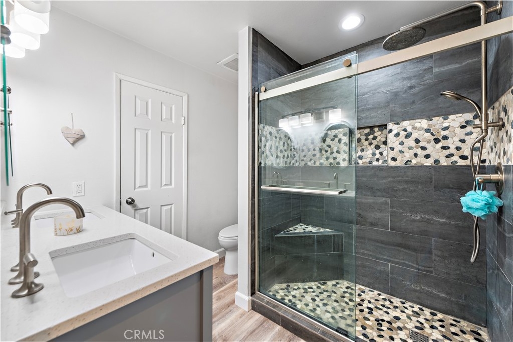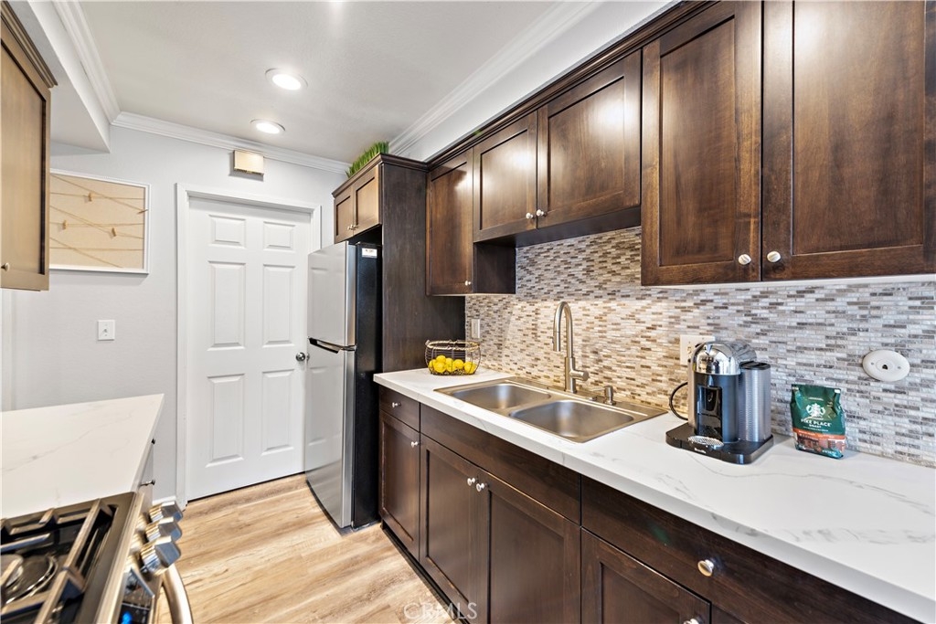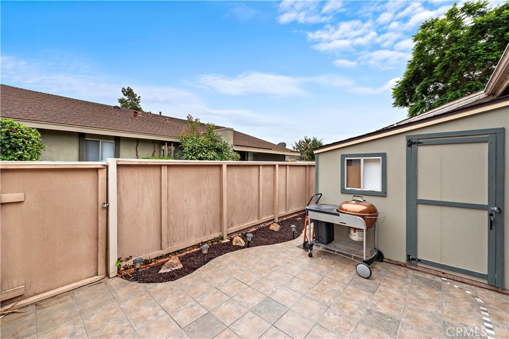 Step into this charming 2-bedroom, 1-bathroom condo. The open layout offers a bright and airy living space, complete with large windows that let in plenty of natural light. The kitchen features modern appliances, quartz counters and stainless steel appliances. Shaker style, updated cabinets offer plenty of storage space. The comfortable living room opens up to a private back patio, offering a peaceful spot to enjoy your morning coffee or unwind after a long day. Workshop/ Storage shed offers an opportunity for more storage or would be a fantastic hobby space! The spacious bedrooms complete with a very large walk in closet. Updated bathrooms and updated finished throughout the home. With in-unit laundry and extra storage, this condo has everything you need for convenient living. Located in a well-maintained community, you’ll love the easy access to shopping, dining, parks, and freeways. Whether you’re commuting to work or exploring the neighborhood, this home offers the perfect combination of comfort and convenience.