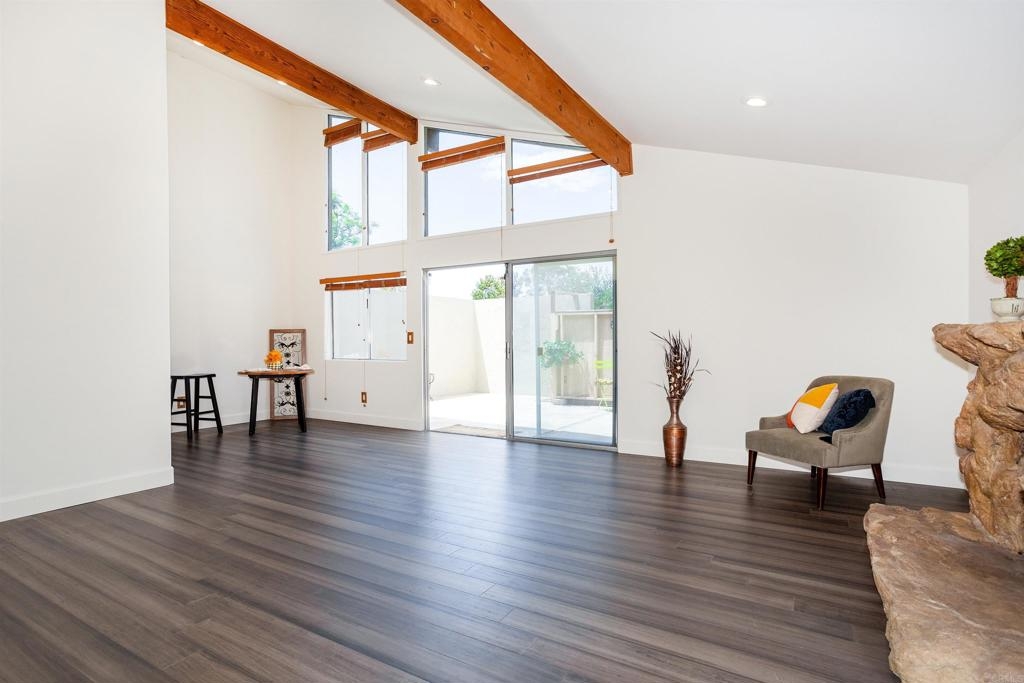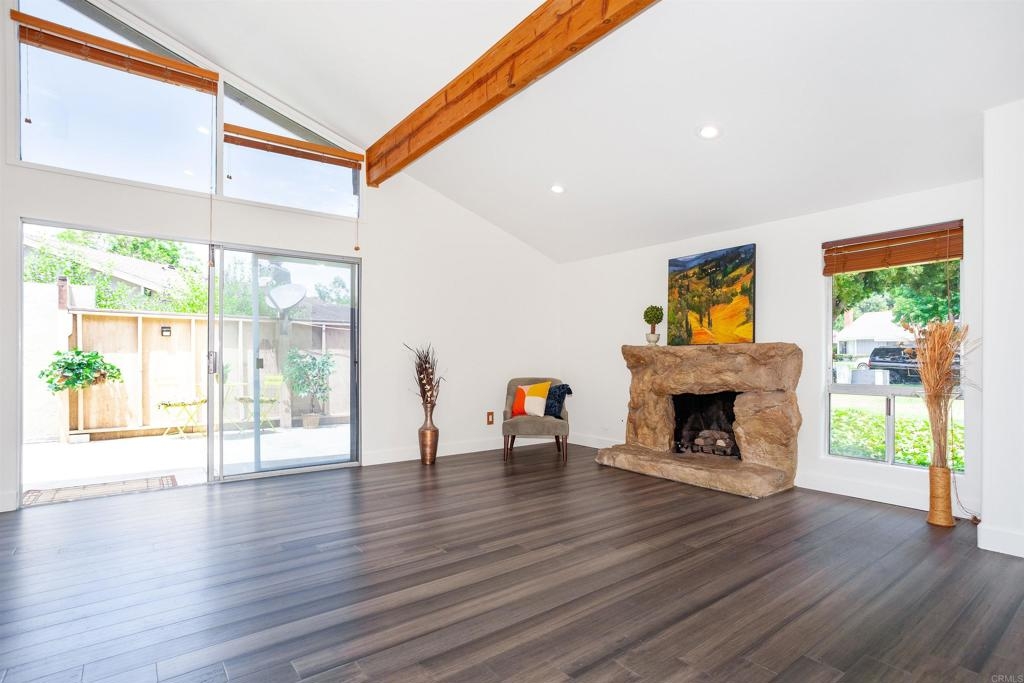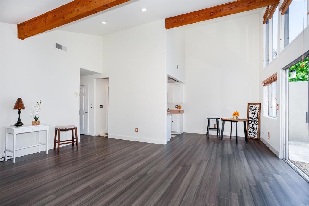 Welcome to this move-in ready 2 bed 1 bath condo. Vaulted ceilings and large windows bring in the natural light. Inside you will find newer bamboo flooring, new recessed lights and fresh interior paint. The open concept living/dining areas feature a fireplace with plenty of room to gather. The kitchen comes fully equipped and connects to the laundry area to provide an easy flow and comfortable living. Down the hallway you will find 2 generous bedrooms and a full bathroom. Enjoy your fully fenced private patio for outdoor enjoyment. Convenient access to the community pool and detached single car garage. You’re only minutes from the 76 and 5 freeways, shopping, restaurants and all Oceanside has to offer.