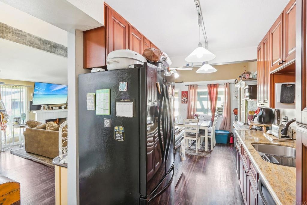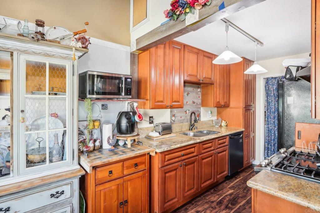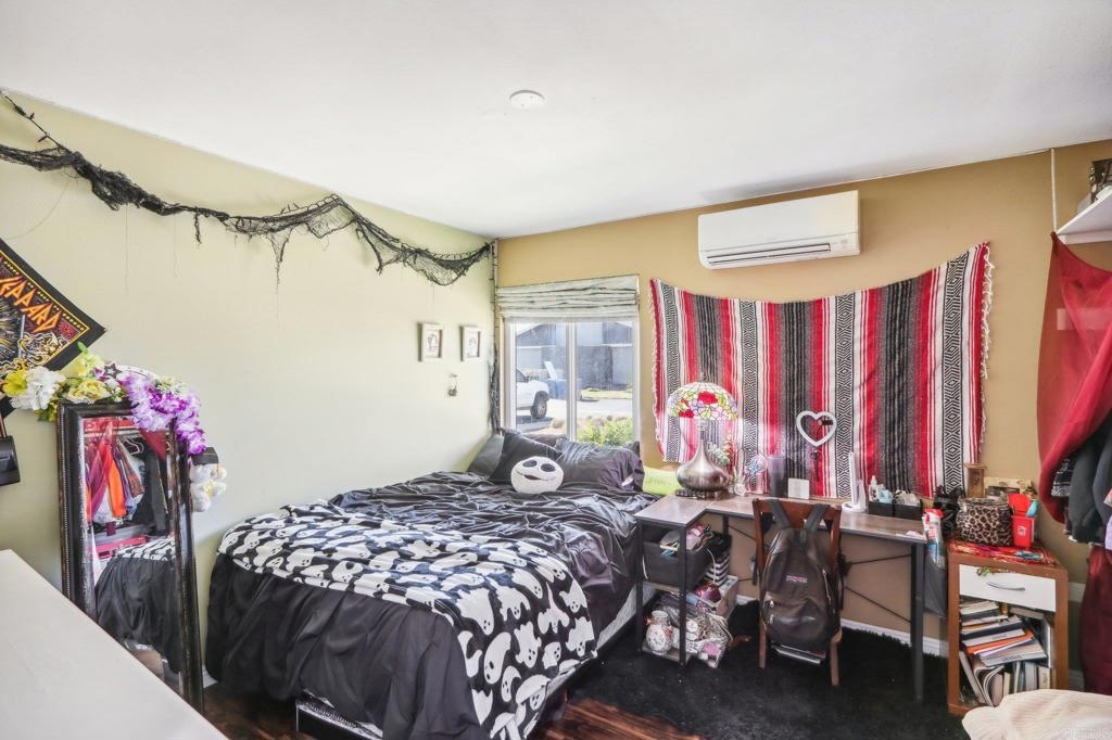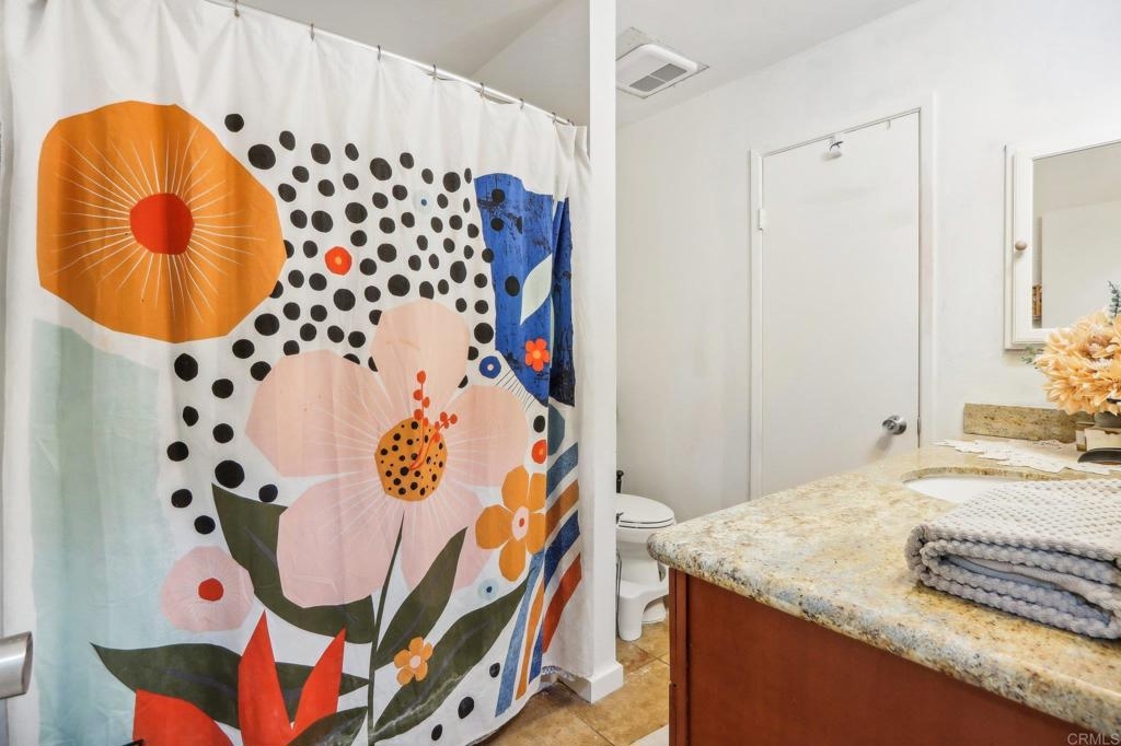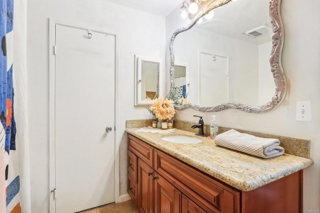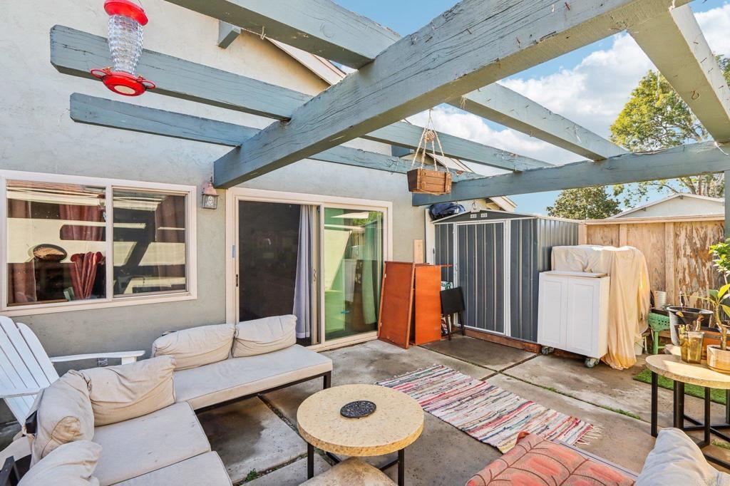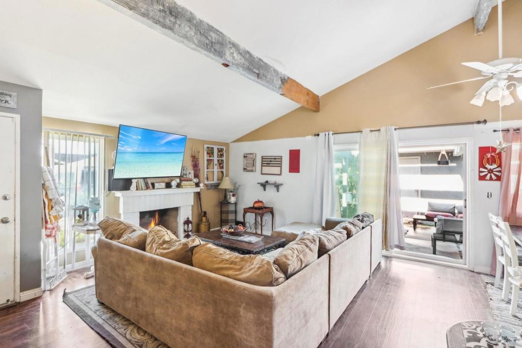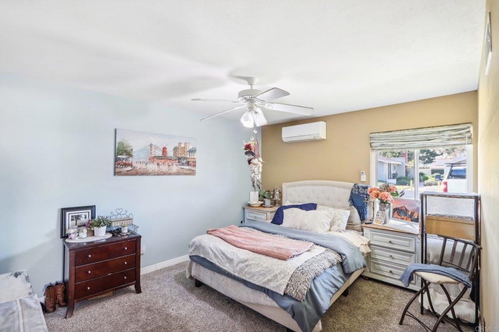 A delightful 2 bedroom, one bathroom, single level condo with attractive fenced in patio. Vaulted ceilings, ac, granite countertops in the kitchen and bathroom, cozy fireplace for those cooler evenings. Comprising of 1017 sq ft, the floor plan is light and bright, laundry room with washer and dryer. The Primary Bedroom has a large walk in closet, secondary bedroom has a decent size closet also. Garage attached to the home via the patio, makes bringing in groceries easier. The complex is gated, offers 2 swimming pools and a hot tub, well groomed grounds. Great location and proximity to the beach, I-5, 76 and 78. The home has 8KW system solar, will be fully paid off in escrow. Newer carpet, bamboo flooring. A dedicated parking space in front of the home plus 1 car garage.