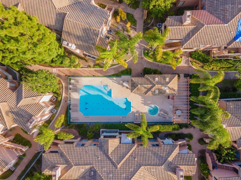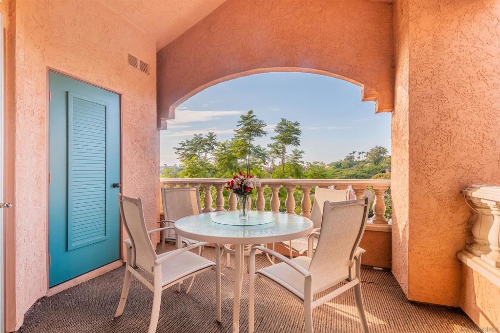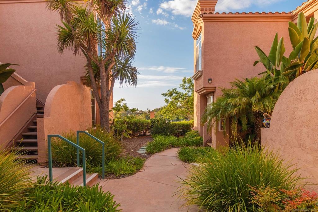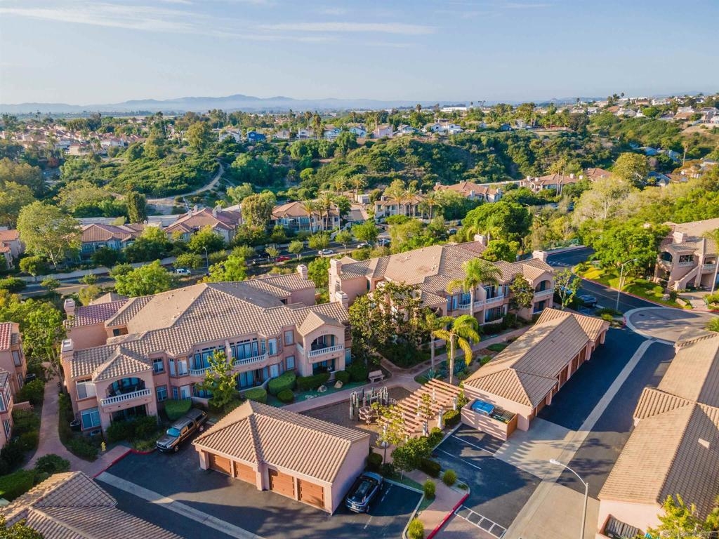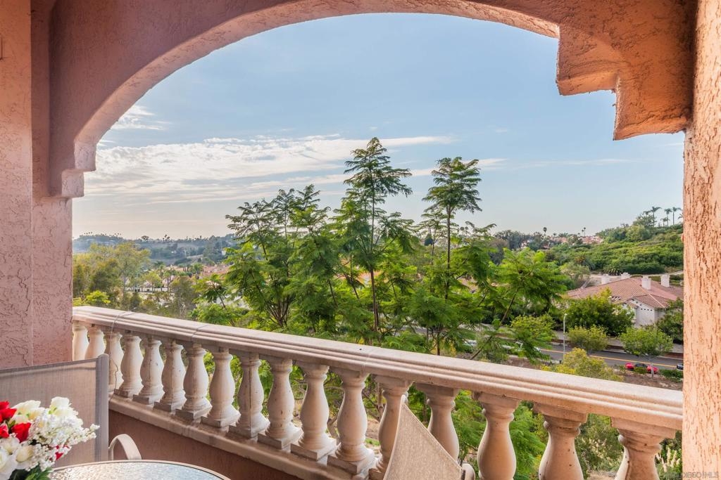 Located atop the gated community of Palmilla Del Oro, this upstairs condo has arguably the best views around! This is an end-unit and is situated so that your balconies are private and overlook a park-like setting below. Vaulted ceilings open up the living space and there is plenty of natural light. The primary bedroom has its own separate balcony + ensuite bathroom with recently renovated Jacuzzi shower. Full-size laundry closet (washer & dryer included). Stay cool with central A/C during warmer months. Includes a car garage + one uncovered assigned parking space. The community is beautifully landscaped and features walking paths throughout, a playground, pool, and hot tub. Just around the corner from Mira Costa College, minutes to shopping/dining, 78 & 5 Freeways, and less than 5 miles from the beach!