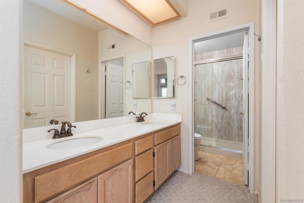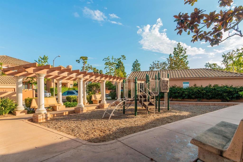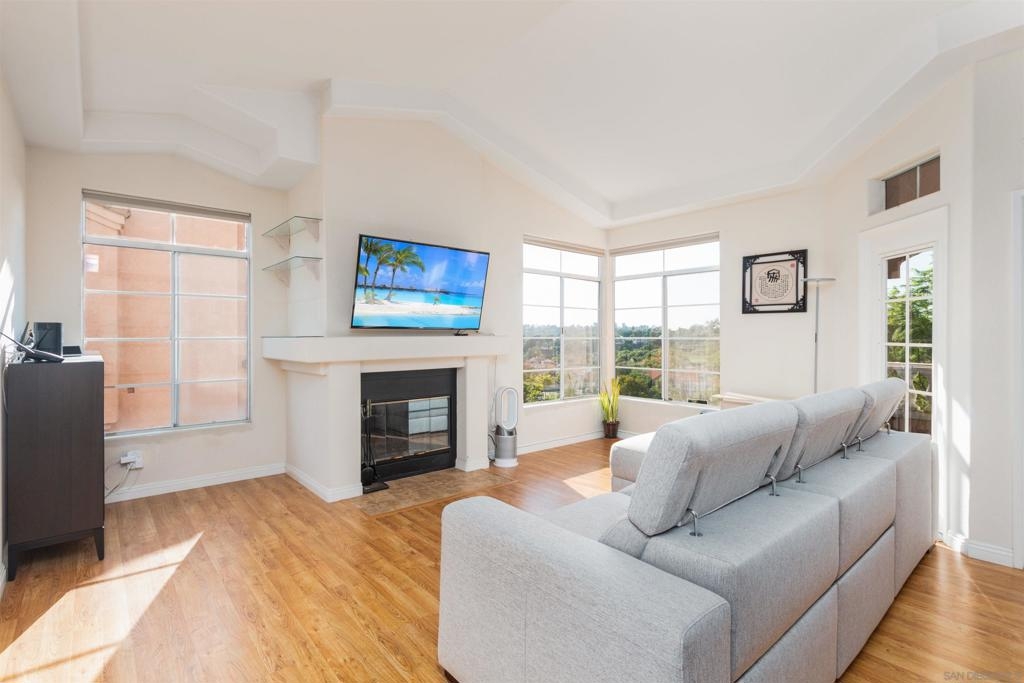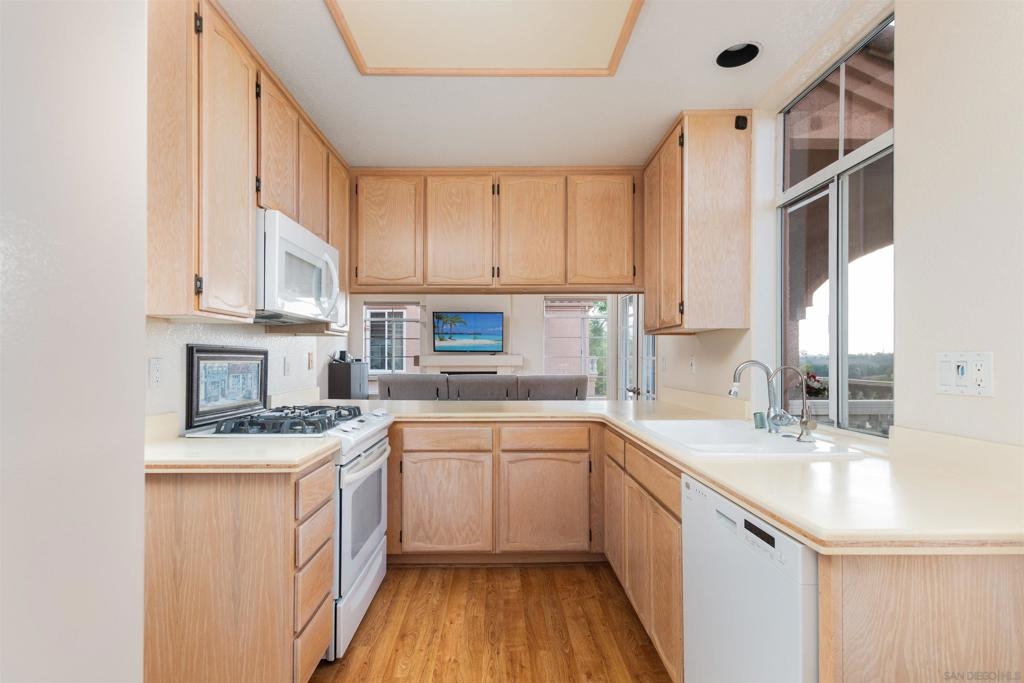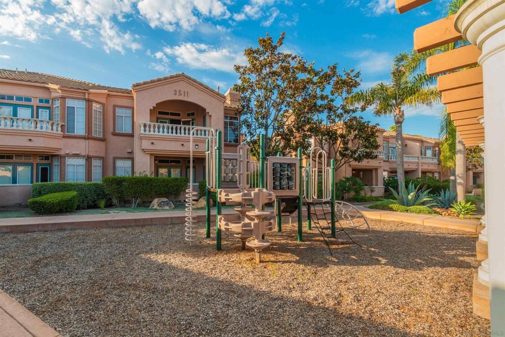 Located atop the gated community of Palmilla Del Oro, this upstairs condo has arguably the best views around! This is an end-unit and is situated so that your balconies are private and overlook a park-like setting below. Vaulted ceilings open up the living space and there is plenty of natural light. The primary bedroom has its own separate balcony + ensuite bathroom with recently renovated Jacuzzi shower. Full-size laundry closet (washer & dryer included). Stay cool with central A/C during warmer months. Includes a car garage + one uncovered assigned parking space. The community is beautifully landscaped and features walking paths throughout, a playground, pool, and hot tub. Just around the corner from Mira Costa College, minutes to shopping/dining, 78 & 5 Freeways, and less than 5 miles from the beach!