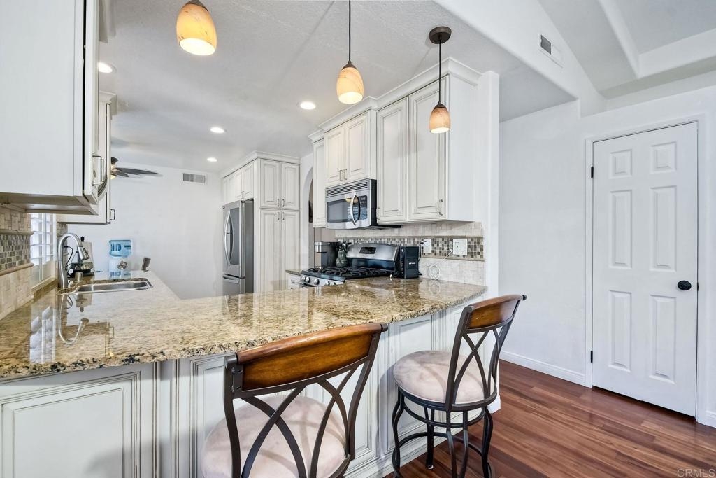 Located in the heart of Rancho Del Oro, in the highly desired gated community Palmilla Del Oro. This home boasts high ceilings, lots of natural light, plantation shutters, and upgrades galore. Enjoy indoor-outdoor living and entertaining with your private covered balcony off the living room. The kitchen features upgraded cabinets, granite counters, customized back splash, a cozy breakfast nook, and stainless steal appliances. The spacious primary bedroom offers its on private balcony, a walk-in closet and an updated primary bathroom. With this condo you get 1 uncovered parking space and a 1 car garage that has room for some storage as well. Enjoy resort style living in this community from the moment you drive up the hill to sitting by the pool and spa with the lush tropical landscape. Not only is the community amazing, but you are just 5 miles from the beach and close to the freeways and shopping.