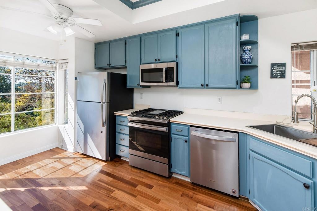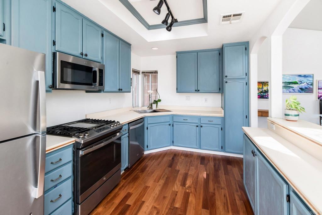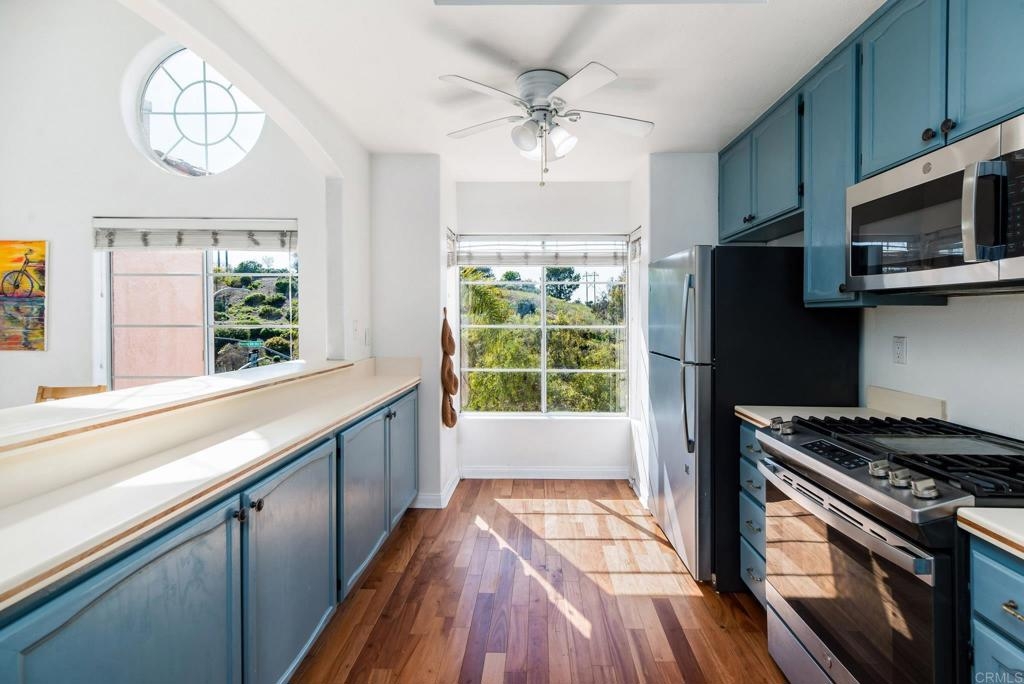 Step into luxury living with this stunning second-floor unit offering breathtaking sunset views in the esteemed gated community of Palmilla Del Oro, nestled in the heart of Oceanside. Immerse yourself in the warmth of wood flooring that graces this meticulously maintained condo. Entertain effortlessly in the spacious living room adorned with vaulted ceilings, flooded with natural light, and offering awe-inspiring westerly views. Embrace the coastal breezes with not one, but two expansive balconies, perfect for savoring morning coffee or evening sunsets. Indulge in culinary delights with a kitchen complete with newer appliances and living room that showcase panoramic views. Recently updated, the guest bathroom boasts modern elegance, while the guest bedroom welcomes with plush carpet installation. Take advantage of a newer HVAC system, which is approx 3 years old. Enjoy the tranquility of privacy from neighbors and the convenience of a short walk to your detached 1 car garage or dedicated parking spaces. With Mira Costa College just a stroll away and easy access to main roads and military bases, convenience meets comfort seamlessly. Experience the allure of nearby developments, from delectable dining to vibrant shopping options. Don't miss the opportunity to make this Oceanside sanctuary your own. Welcome home to Palmilla Del Oro!