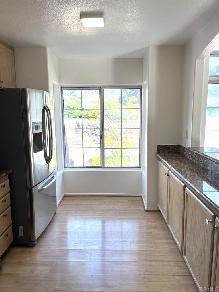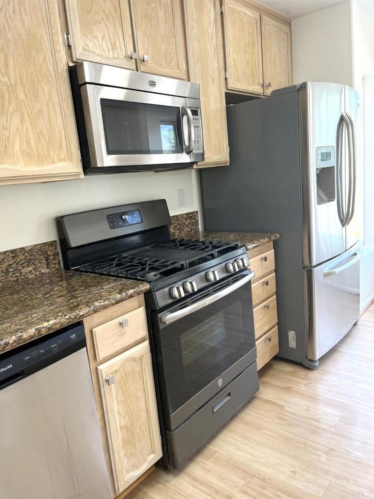 Discover the epitome of comfortable living in the serene Palmilla del Oro community nestled in the heart of Rancho del Oro. This delightful 3-bedroom, 2-bathroom condo spans 1141 sqft of tastefully designed living space, recently updated with new fixtures and hardware. Newly painted throughout and in move-in condition. The condo feels contemporary as light and bright with high ceiling in the living room and a central chimney. The kitchen boasts granite countertops, complemented by stainless steel appliances, creating an inviting space for culinary adventures. The open layout seamlessly connects the kitchen to the living area, enhancing the sense of space and functionality. A detached garage and a convenient uncovered parking space provide hassle-free parking options. The gated community ensures security and tranquility, offering residents a peaceful retreat from the outside world. Enjoy the Southern California sunshine at the community pool and spa, perfect for relaxation and socializing. This condo is perfect for those seeking a balance between modern amenities, security, and a peaceful atmosphere. Don't miss the opportunity to make Palmilla del Oro your home sweet home. The community provides small parks for kids and toddlers to play and for residents to sit outside. The home is close to Mira Costa College and easy access to the 78 and 5 freeways, also easy access to supermarkets, restaurants, gas stations, etc…
