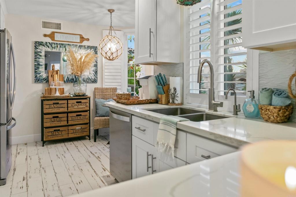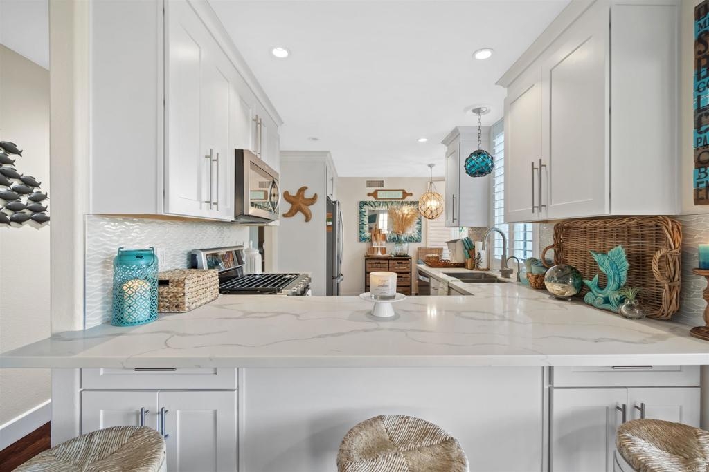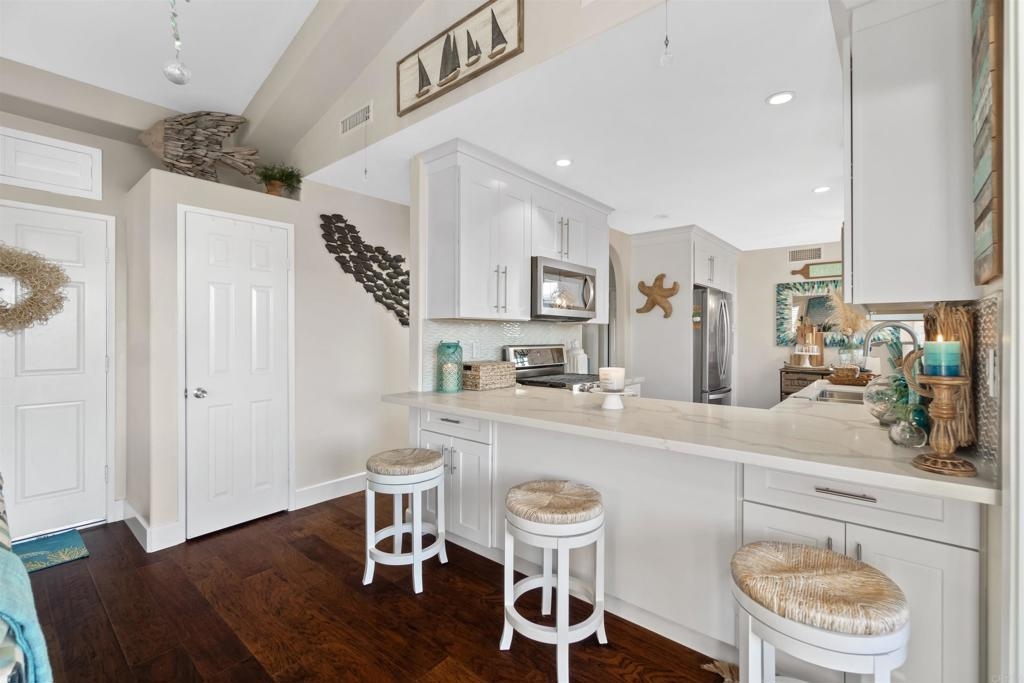 Once in a lifetime opportunity to make your dream home a reality. Live on Holiday 365 days a year. " Don't Worry, Be Happy " Every little thing has been done for you. Your Sanctuary comes professionally designed and decorated. Two Bedrooms. Two Bathrooms. Two Decks. Gated Community. All New Genuine Hardwood Flooring. Custom Real Wood Plantation Shutters. Modern quartz Countertops Throughout. High Unique Architectural Ceiling. Imported Italian Title in Both Showers. Designer High End Furniture Pieces Throughout. New Sterns and Foster Adjustable Base with massage Feature Bed. Hand Blown Light Fixtures. Two New Top Grain Leather Custom Lazy Boy Recliners. New Custom Designer Fabric Lazy Boy Love Seat. Pool and Spa. Garage. Five minutes to the Ocean. Close to all Shopping and Restaurants. All New double Low E Windows. Samsung Washer and Dryer. All New Stainless Steel Whirlpool appliances. Double Oven. Gas Cook Top. Moen Fixtures. Under Sink Water Filtration. Custom Cabinets through out. 65" LG TV in living room. 55" Samsung TV with Nakmichi Sound System. New Water Heater. Both Bathrooms Totally Remodeled. The whole house has been Professionally Remodeled. The Garage has even been remodeled with Epoxy floor and New Lift Mast Garage door Opener.