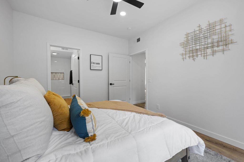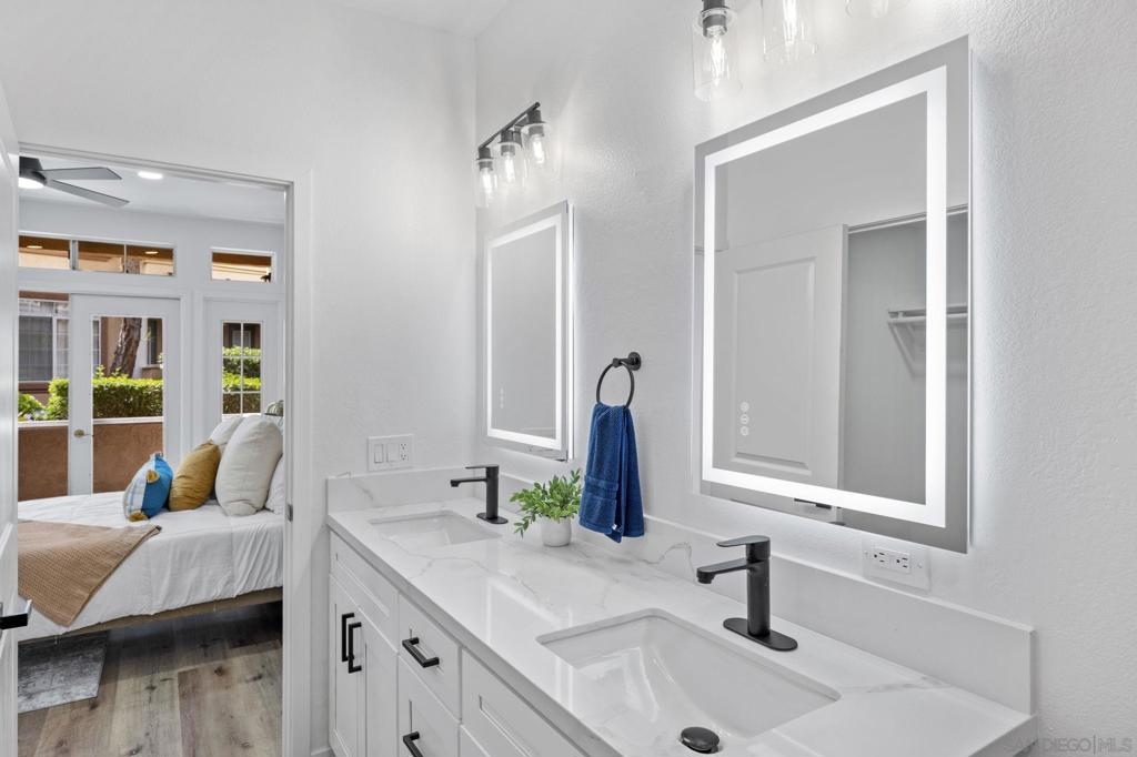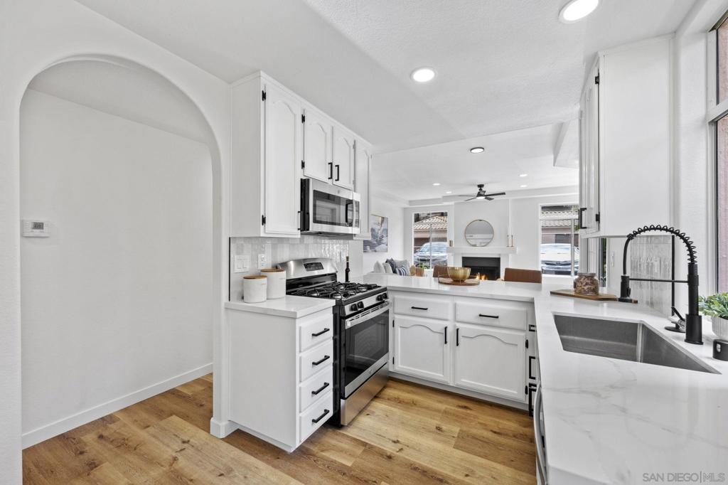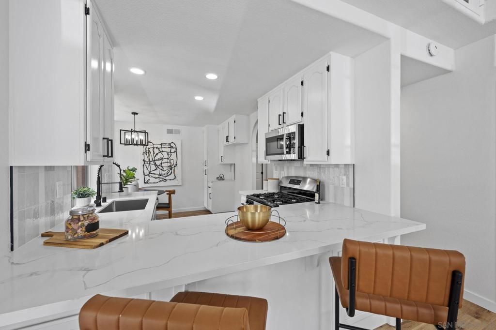 Welcome To Palmilla Del Oro. This stunning 2-bedroom, 2-bathroom condo is located in a serene, gated community. This home has been thoughtfully updated, offering a seamless blend of elegance, comfort, and convenience. The open-concept floor plan welcomes you with an abundance of natural light pouring in through large windows, highlighting the sleek vaulted ceilings and newly updated flooring throughout. The spacious living area features a cozy gas fireplace, perfect for relaxing evenings or entertaining guests. The exquisite kitchen is a chef’s dream, complete with granite countertops, stainless steel appliances, and generous cabinet space for all your culinary needs. A private garage and an additional dedicated parking space just steps from your front door – plus guest parking conveniently located right out front. Retreat to your luxurious primary suite, boasting an expansive walk-in closet and a spa-inspired, fully remodeled ensuite bathroom with a double-sink vanity and a walk-in shower designed for ultimate relaxation. The second bedroom is perfect for guests, a home office, or both – paired with a stylishly updated second full bathroom. Enjoy the comfort of brand-new air conditioning and heating systems, ensuring year-round comfort. As a resident, you’ll have access to a beautiful community pool just steps away – an ideal spot to unwind on sunny days. With gated security, lush common areas, and a peaceful atmosphere, this community truly offers it all.