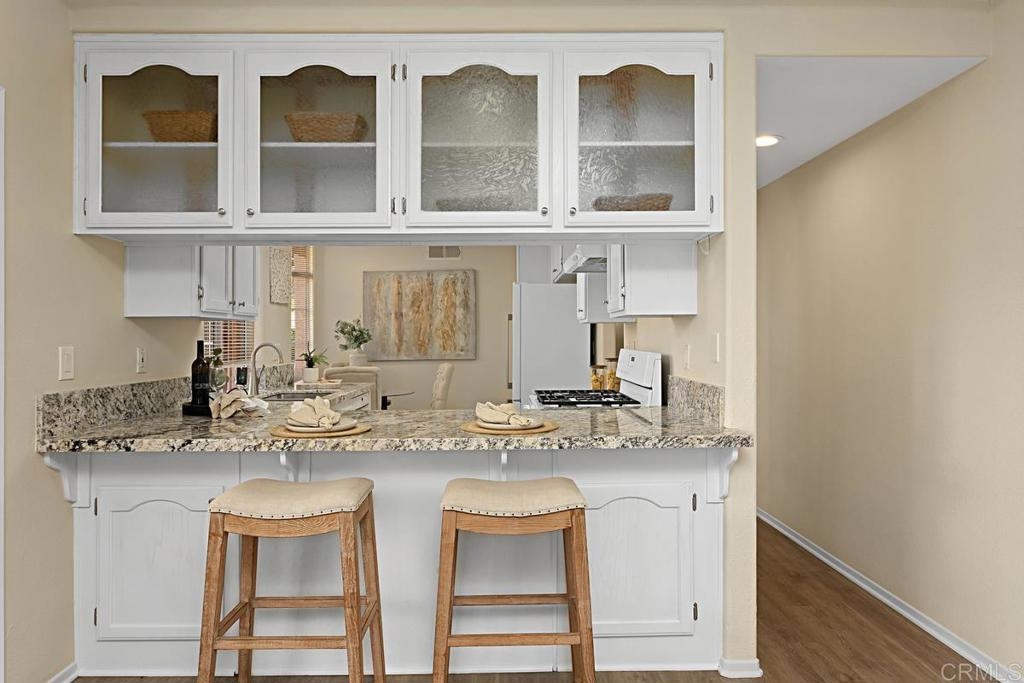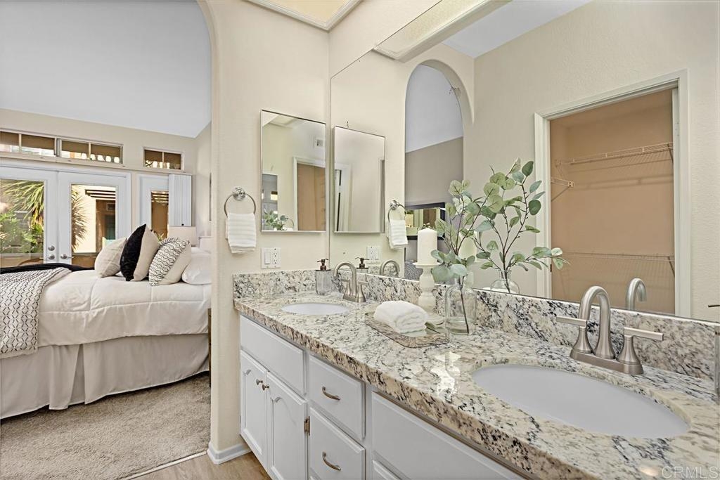 Welcome to the most charming home in the highly desirable Palmilla Del Oro Complex. As you enter this exclusive gated community, you’ll find a serene and private retreat, perfect for a tranquil lifestyle. This ground-level condo offers a spacious, open-concept living area with sleek LVP flooring and features abundant natural light that enhances the inviting atmosphere, making it the perfect home. You'll enjoy effortless access to the community’s exceptional amenities, including a heated pool, spa, and clubhouse. The condo boasts two generously sized bedrooms, an oversized kitchen with brand new refrigerator and exquisite granite countertops, and two updated bathrooms. A separate kitchen nook provides lovely views of the lush landscape, while French doors in the living room and bedroom open onto large private patios surrounded by greenery. With its prime location within the Palmilla Del Oro Complex, this home offers both privacy and convenience and easy access to shopping, dining, and beautiful beaches. Enjoy the ease of a convenient in-unit laundry room, the comfort of central A/C, and ample parking with a garage and additional parking space just steps from your door. This home is move-in ready and designed to offer both luxury and ease in a coveted Southern California setting.