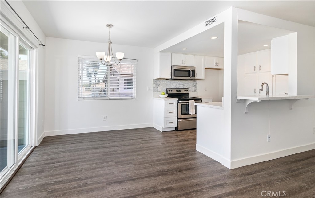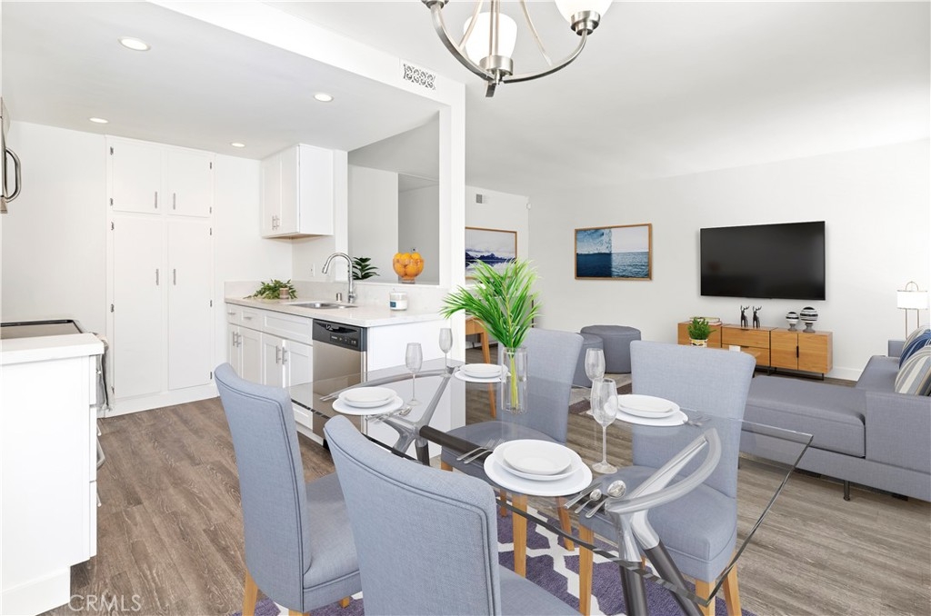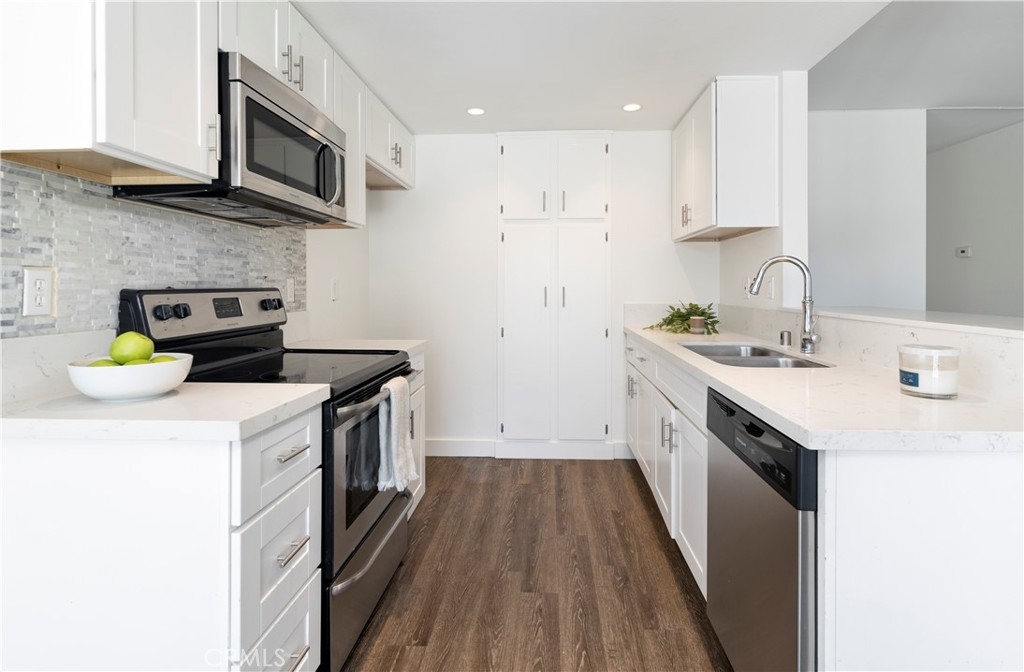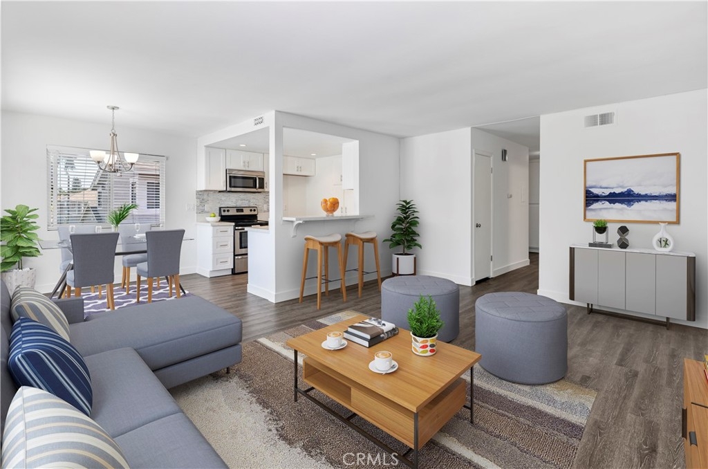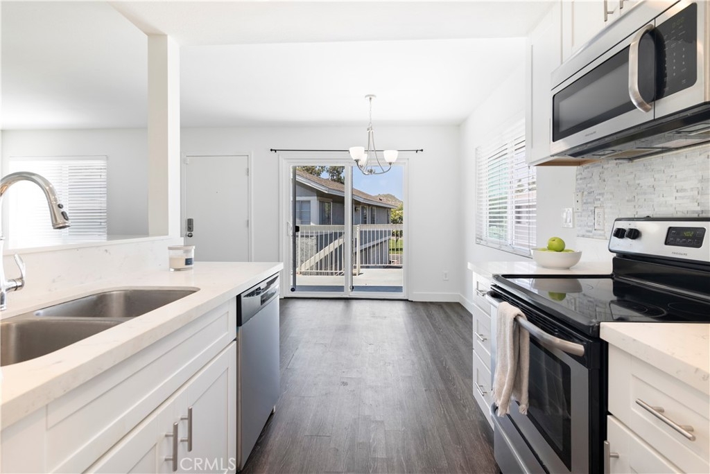 VA Approved! This highly desirable upper level Whelan Ranch, Oceanside home is tastefully upgraded, all single level with no one above or below, and is an end unit with quick access to the community pool. As you step up to this beautiful condo, the patio/deck invites you into a home filled with abundant natural light that has been recently painted throughout, is updated with LVP flooring, vinyl windows, and has an open floor plan that seamlessly flows from the living room, to the dining area, to the kitchen. The kitchen boasts quartz countertops, upgraded white shaker cabinets, recessed lighting, and stainless steel appliances including a brand new dishwasher. The primary bedroom features an en-suite bathroom with quartz countertops and a spacious walk-in closet. The hallway bathroom is equally stunning with quartz countertops and a full bathtub with a shower. Convenience is key with the laundry room located inside the unit! Additionally, this home comes with a spacious single car garage directly below the unit complete with dedicated parking. The HOA fee covers common area landscaping, water, and trash! Embrace the indulgent lifestyle that Whelan Ranch has to offer with the beach just 7 miles away! Relax and grill on your deck, take a dip in the community pool, or explore the nearby trails for hiking or biking the San Luis Rey Trail. The community exudes a secluded feel with mature landscaping and trees, yet is just a stone's throw away from Camp Pendleton, Oceanside pier and harbor, golf courses, fishing spots, restaurants, shopping centers, and schools. Don't miss the opportunity to make this stunning Whelan Ranch condo your own! This is truly a rare find in beautiful Oceanside in a sought-after location, so schedule a viewing today before it's gone!
