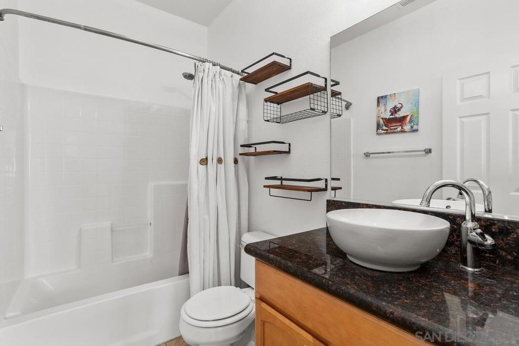 TURNKEY CONDO IN PELICAN COVE. This beautifully maintained 2-bedroom, 2-bath condo offers 1,005 square feet of comfortable living in the sought-after Pelican Cove community. Located on the upper level, the open floor plan features a spacious living and dining area with abundant natural light and a cozy fireplace. The kitchen includes granite countertops, ample cabinet space, and a breakfast bar for casual dining. The primary bedroom offers a generous layout with an en suite bath and walk-in closet. Additional highlights include updated flooring, a private west-facing balcony, central A/C, and an attached 1-car garage with laundry and storage. A second permitted parking space is also included. Residents enjoy easy access to the 76, I-5, and 78 freeways, as well as proximity to Camp Pendleton and the San Luis Rey River Trail. The home is located in the Oceanside Unified School District and is just a short drive to beaches, dining, and shopping along Coast Highway. Pelican Cove also features a community playground and guest parking.
