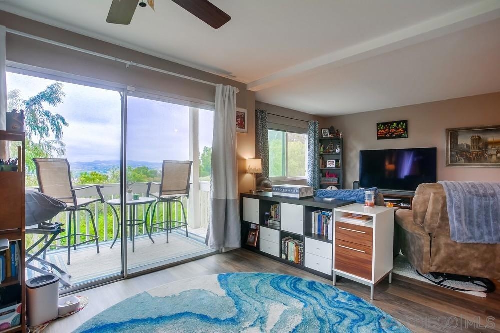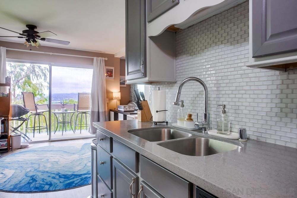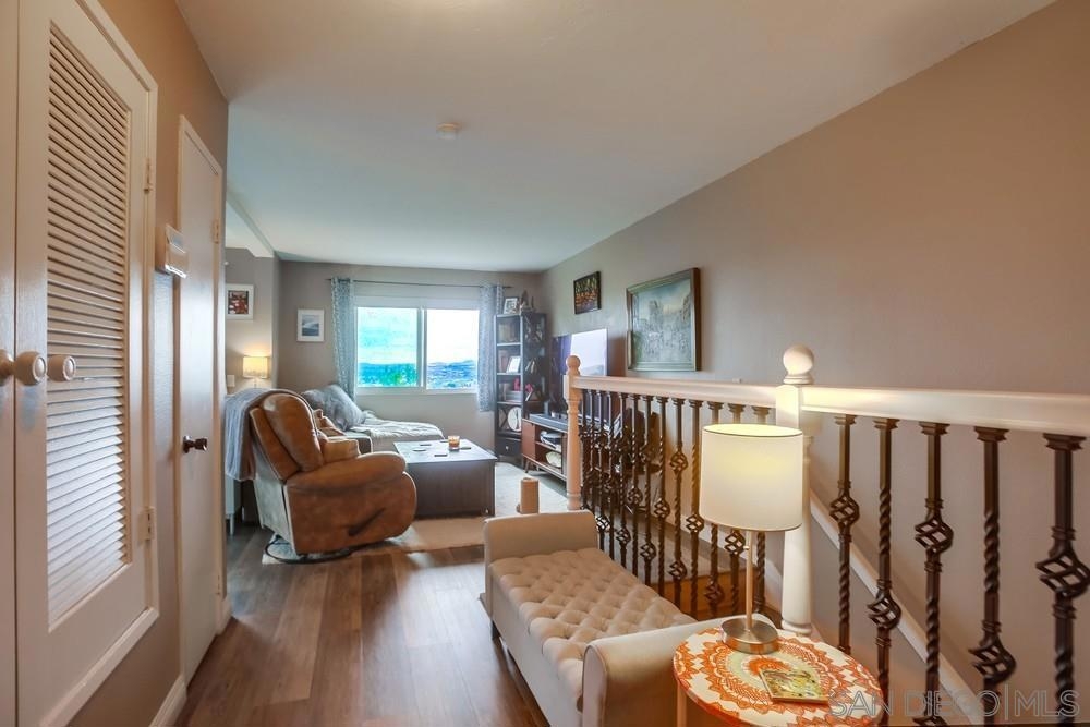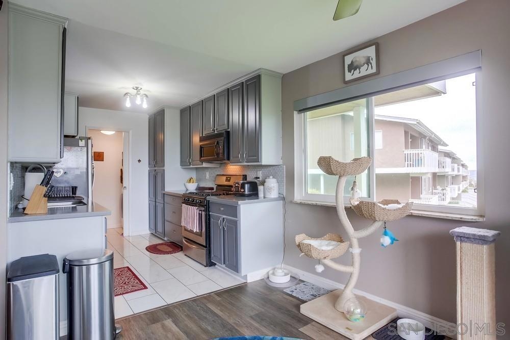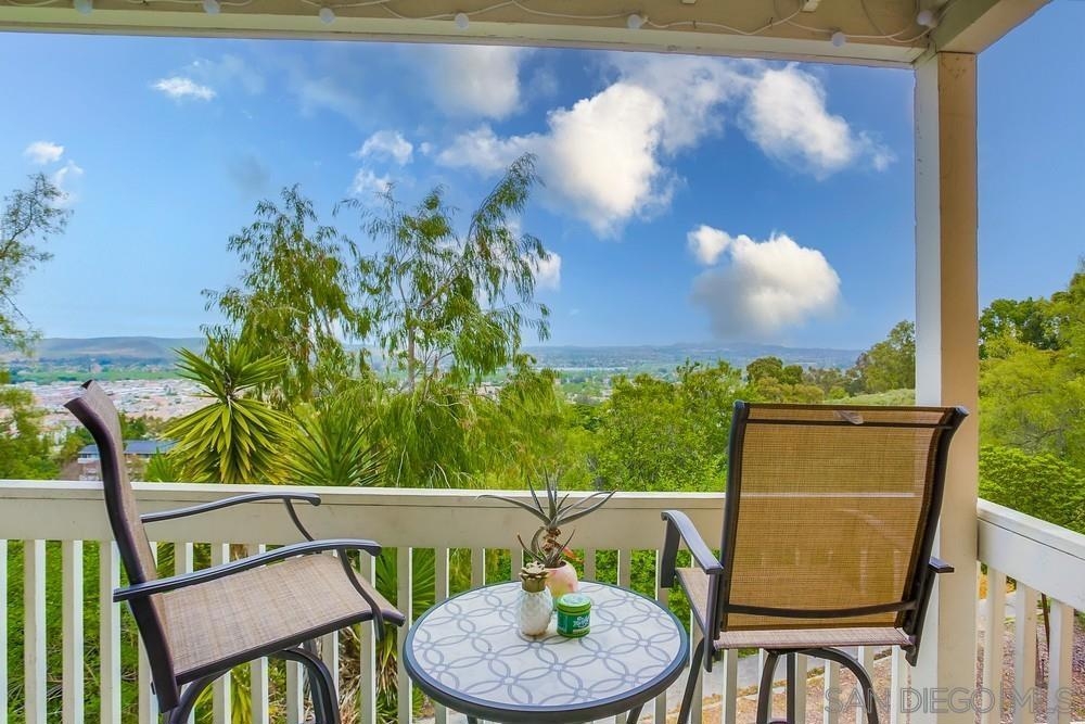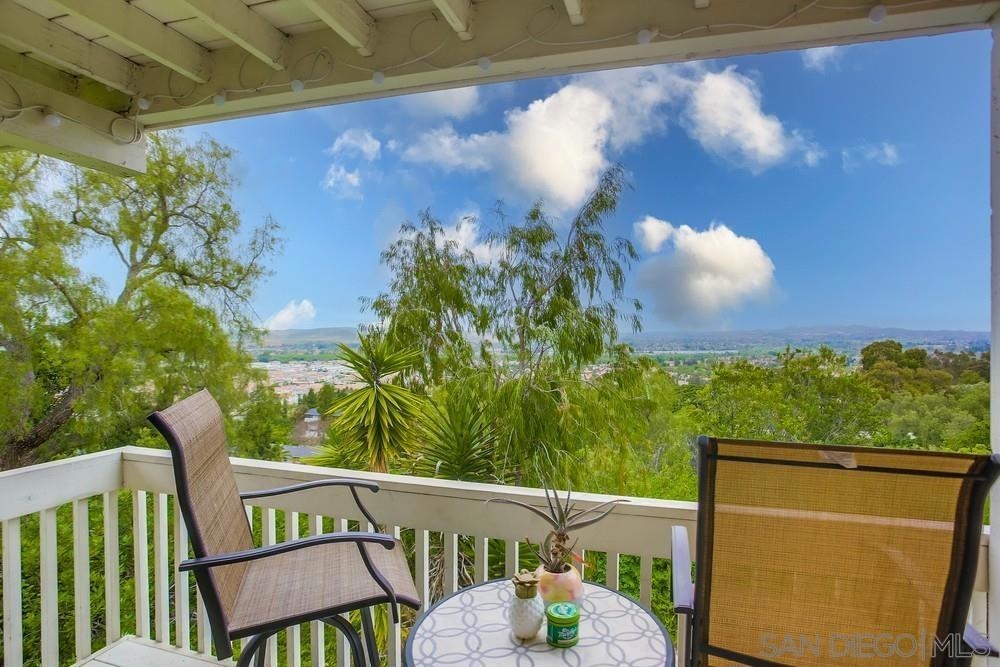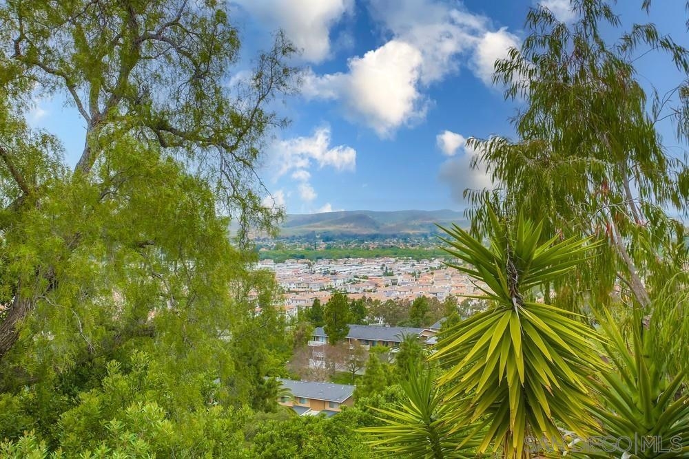 This is the one you have been waiting for! Pride of ownership, end unit, with Panoramic hilltop views, overlooking the mountains and the San Luis Rey Valley. The living & dining areas open to a spacious balcony to enjoy the beautiful views! Features include a remodeled kitchen, and bath, laminate wood flooring, dual paned windows, attached garage, in-unit laundry, remote controlled black out shades, upstairs, and a Google NEST thermostat. The master bedroom, has an end unit patio, where you can enjoy privacy & serenity as you take in the green views. Beach close at an affordable price! Hurry before this one is gone! Security System does not convey.