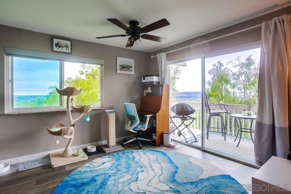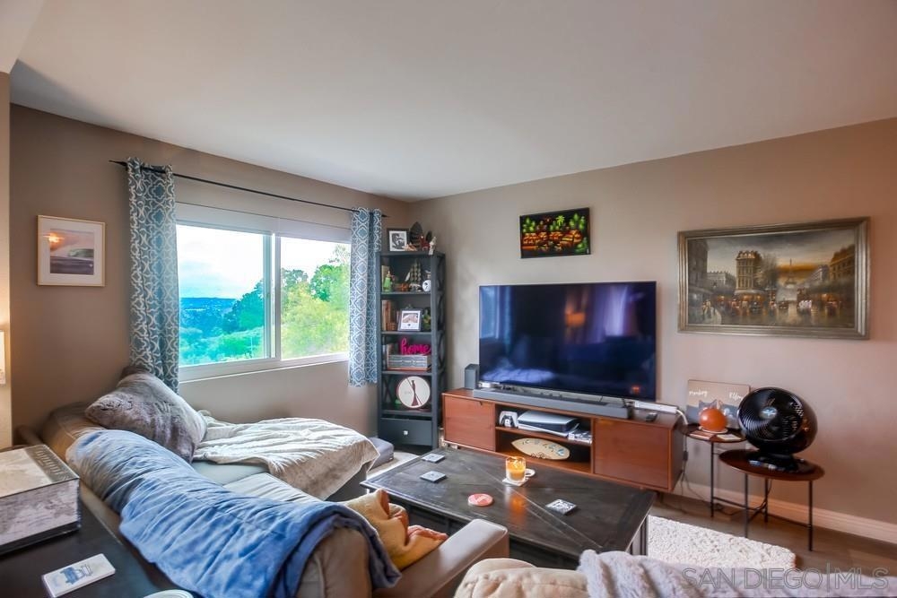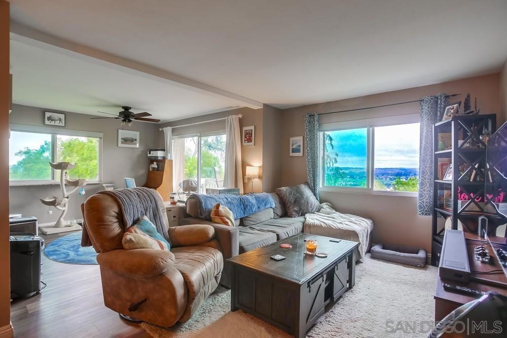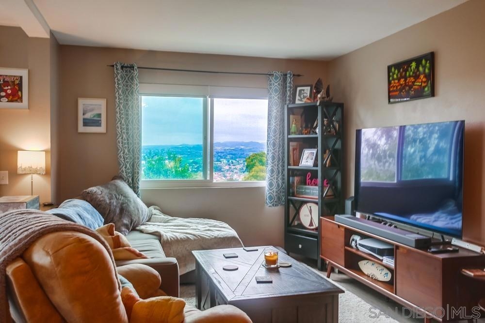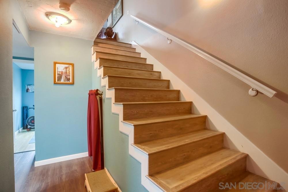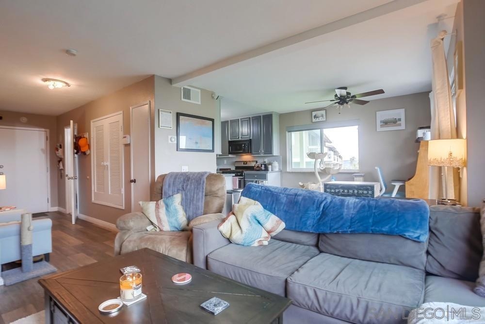 This is the one you have been waiting for! Pride of ownership, end unit, with Panoramic hilltop views, overlooking the mountains and the San Luis Rey Valley. The living & dining areas open to a spacious balcony to enjoy the beautiful views! Features include a remodeled kitchen, and bath, laminate wood flooring, dual paned windows, attached garage, in-unit laundry, remote controlled black out shades, upstairs, and a Google NEST thermostat. The master bedroom, has an end unit patio, where you can enjoy privacy & serenity as you take in the green views. Beach close at an affordable price! Hurry before this one is gone! Security System does not convey.