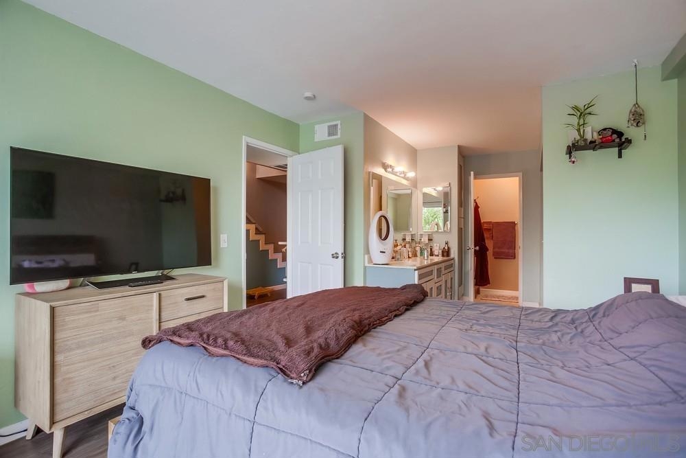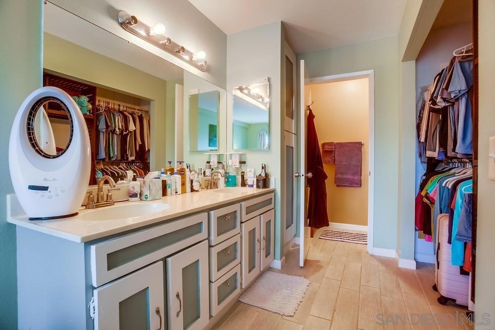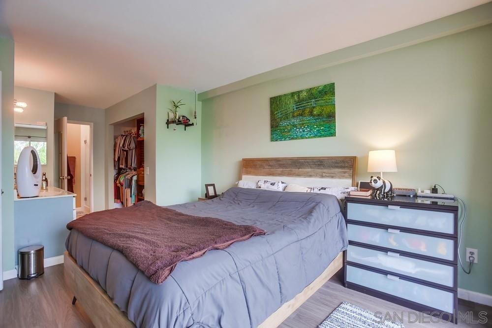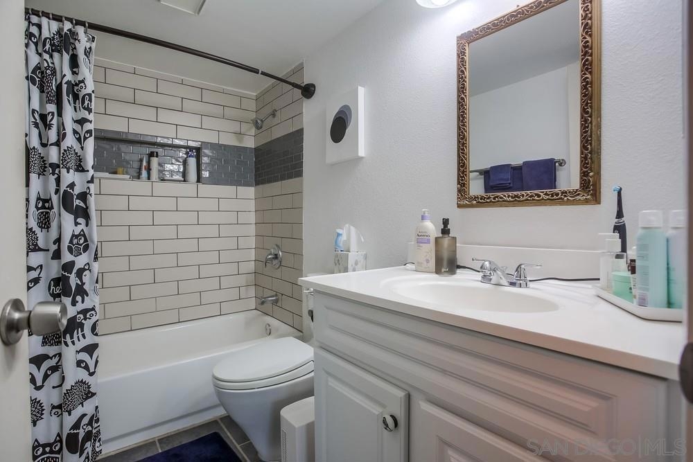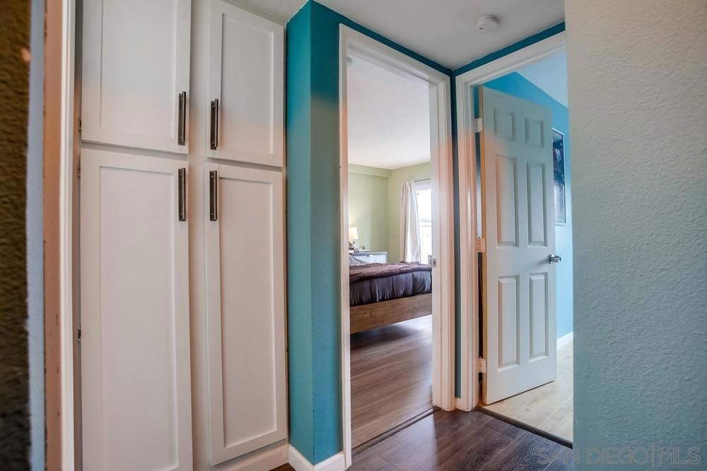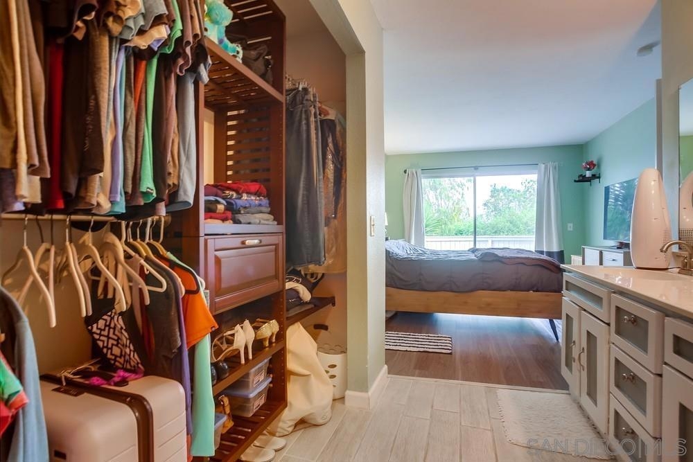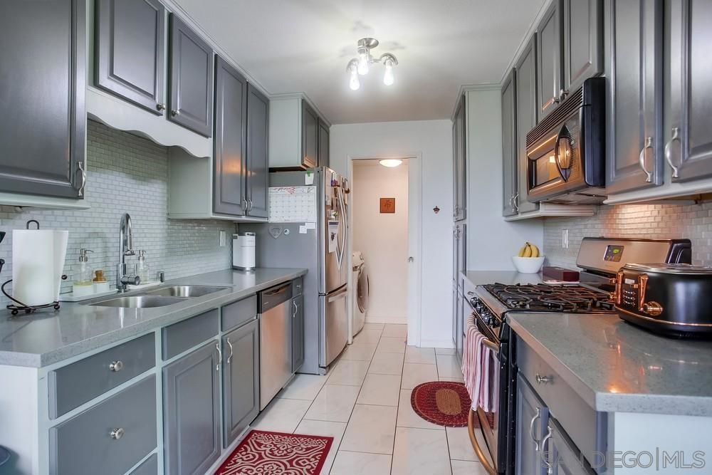 This is the one you have been waiting for! Pride of ownership, end unit, with Panoramic hilltop views, overlooking the mountains and the San Luis Rey Valley. The living & dining areas open to a spacious balcony to enjoy the beautiful views! Features include a remodeled kitchen, and bath, laminate wood flooring, dual paned windows, attached garage, in-unit laundry, remote controlled black out shades, upstairs, and a Google NEST thermostat. The master bedroom, has an end unit patio, where you can enjoy privacy & serenity as you take in the green views. Beach close at an affordable price! Hurry before this one is gone! Security System does not convey.