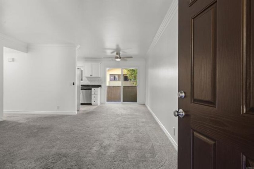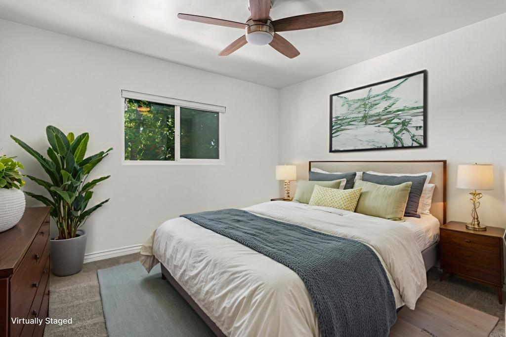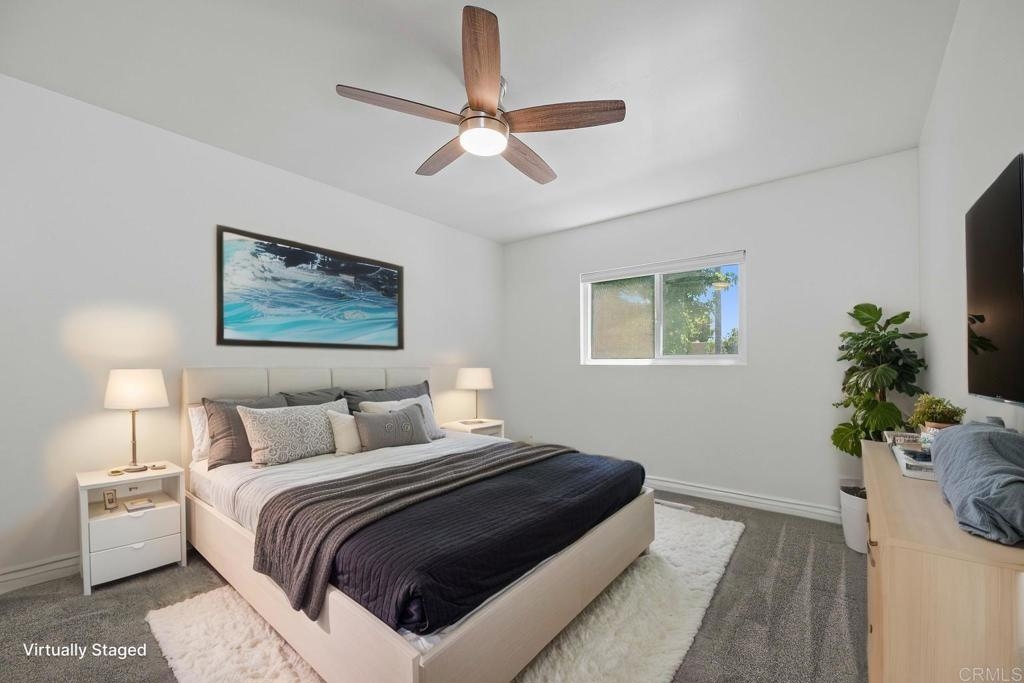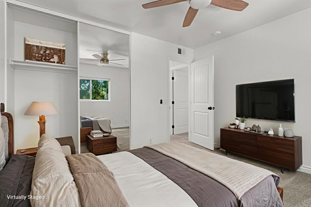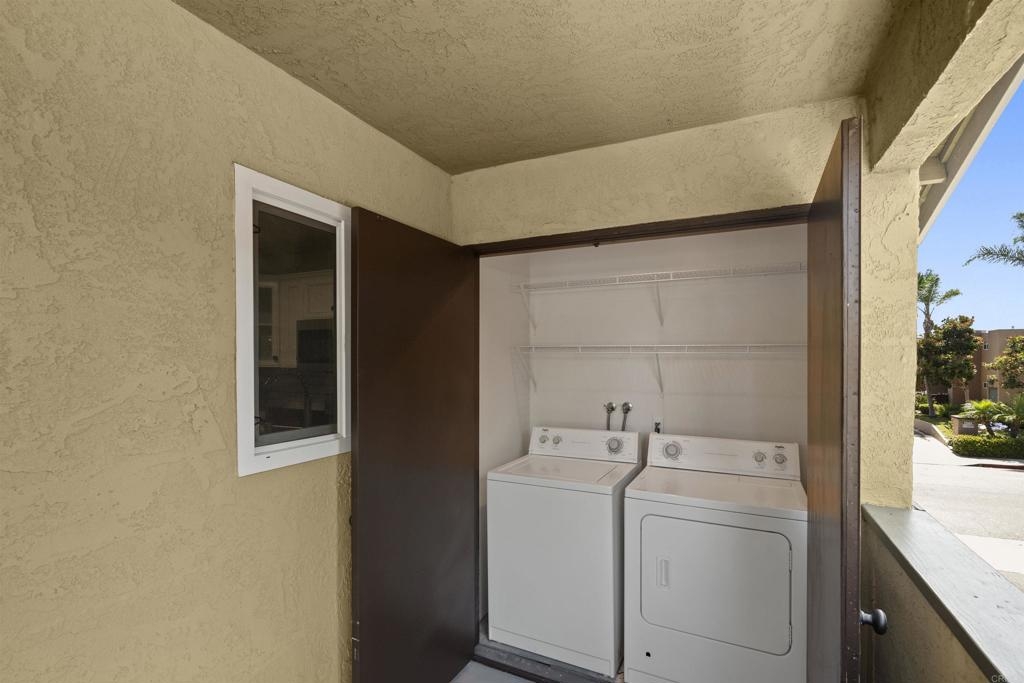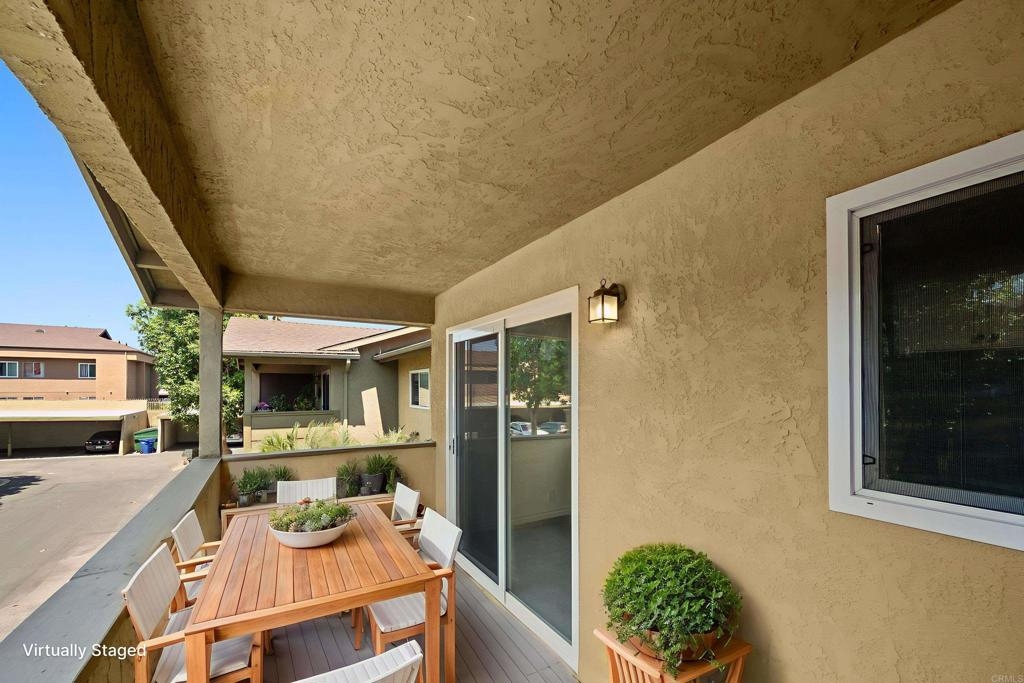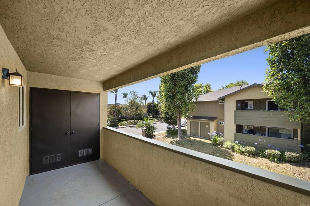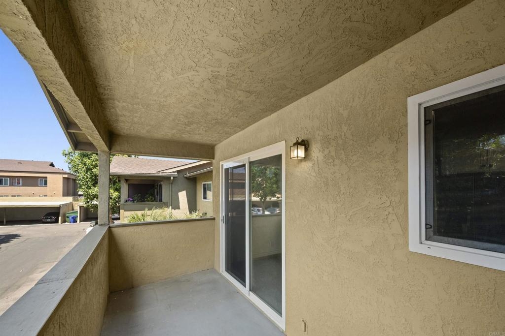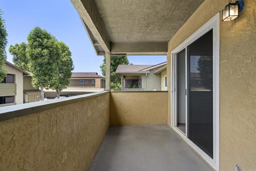 Updated, Move-In Ready Condo – Ideal for First-Time Buyers or Investors. This quiet upstairs condo with a private entrance and spacious balconies is just 15 minutes from Camp Pendleton, Oceanside Harbor, and the beach, it’s perfectly located for convenience. The entire unit has been upgraded with new paint throughout, new flooring, ceiling fans, lighting, hardware and blinds. Both bathrooms have been updated with new vinyl flooring-decorative glass shower doors-oversized mirrors and modern lighting. The kitchen has been refreshed and boast all new stainless steel appliances: a five-burner gas range, bottom-freezer refrigerator, quiet dishwasher, microwave, and a new faucet. The large primary suite includes a walk-in closet and a separate vanity area. Enjoy the added convenience of in-unit washer and dryer located on the balcony. Complex parking is gated, this unit comes with two dedicated parking spots: one covered carport space and one open space. As well as easy street parking for guests. The community offers low HOA fees that cover exterior maintenance and insurance, plus water, hot water, sewer, trash pickup, and even free large-item removal—a unique and valuable perk. Don’t miss this turnkey opportunity to own a beautifully maintained home in a well-managed community!