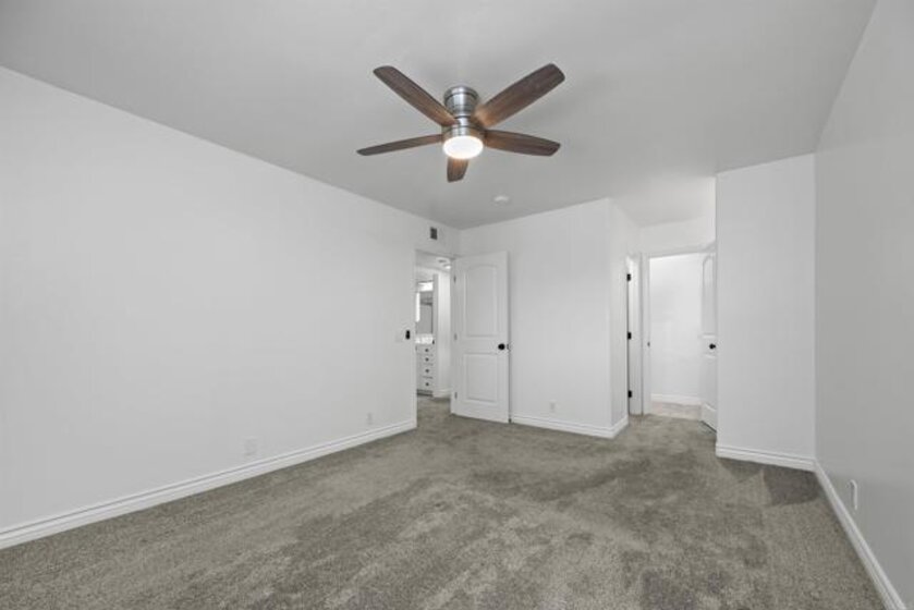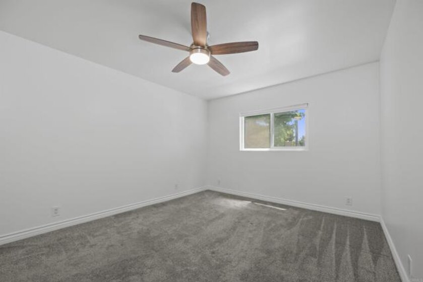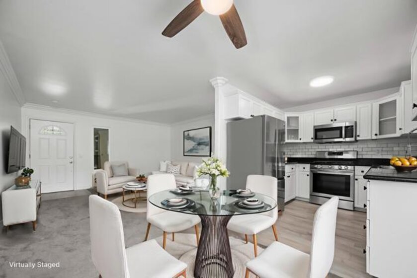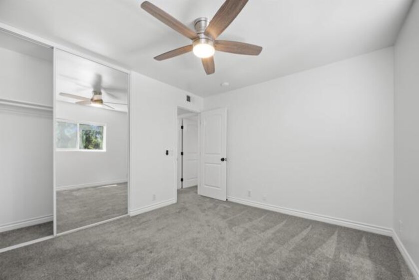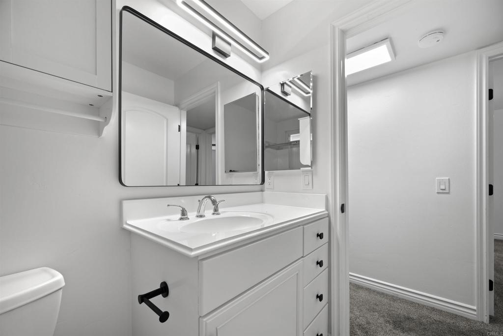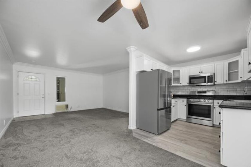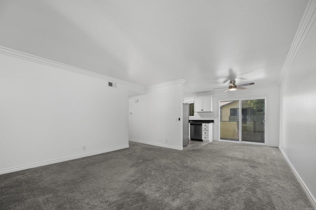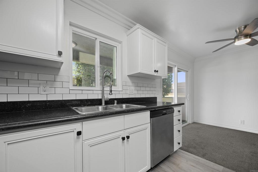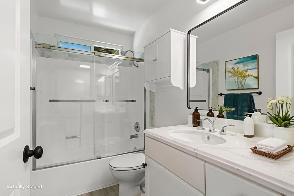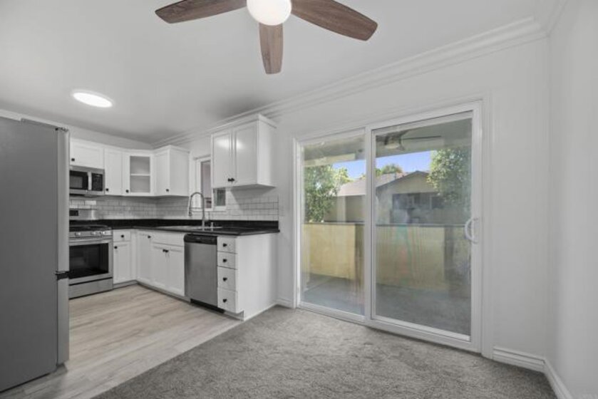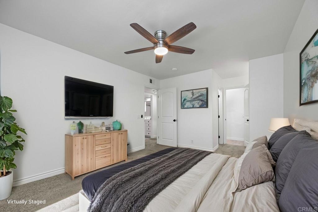 Updated, Move-In Ready Condo – Ideal for First-Time Buyers or Investors. This quiet upstairs condo with a private entrance and spacious balconies is just 15 minutes from Camp Pendleton, Oceanside Harbor, and the beach, it’s perfectly located for convenience. The entire unit has been upgraded with new paint throughout, new flooring, ceiling fans, lighting, hardware and blinds. Both bathrooms have been updated with new vinyl flooring-decorative glass shower doors-oversized mirrors and modern lighting. The kitchen has been refreshed and boast all new stainless steel appliances: a five-burner gas range, bottom-freezer refrigerator, quiet dishwasher, microwave, and a new faucet. The large primary suite includes a walk-in closet and a separate vanity area. Enjoy the added convenience of in-unit washer and dryer located on the balcony. Complex parking is gated, this unit comes with two dedicated parking spots: one covered carport space and one open space. As well as easy street parking for guests. The community offers low HOA fees that cover exterior maintenance and insurance, plus water, hot water, sewer, trash pickup, and even free large-item removal—a unique and valuable perk. Don’t miss this turnkey opportunity to own a beautifully maintained home in a well-managed community!