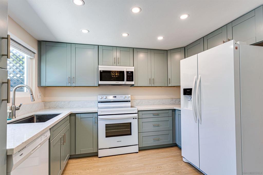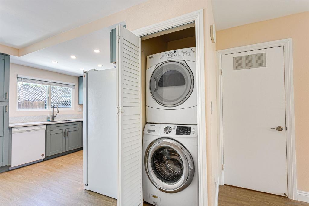 Recently remodeled 2-story townhome. New kitchen, bathrooms, flooring, paint, lighting and remote controled fans. Sale includes refrigerator, microwave, dishwasher, range and stacked washer and dryer. Two large bedrooms and your own garage. Community pool/spa.
