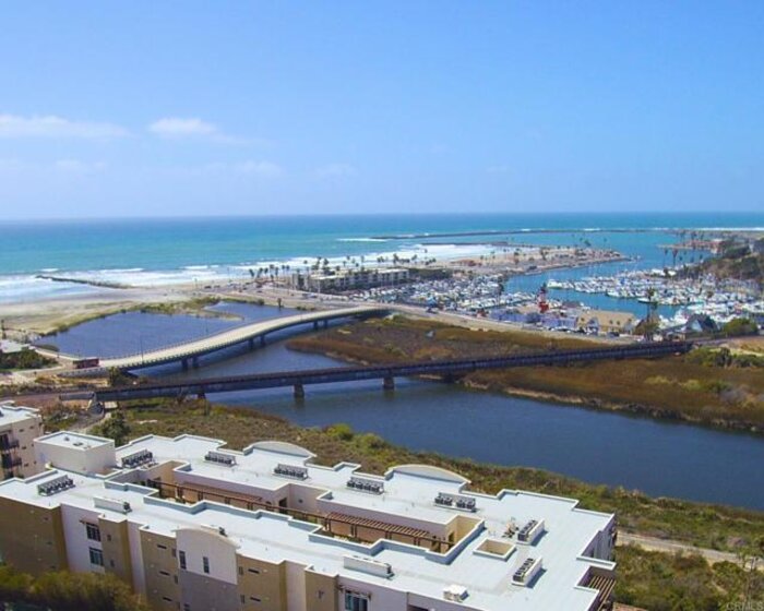 Welcome to 1019 Costa Pacifica Way, Unit #1110—where coastal living meets modern comfort. Just approx. 500 Steps to the Sand. This RARE single-level 3-bed, 2-ba condo features a private backdoor entrance, perfect for pet owners or accessible exit. Just walk out the backdoor and the pool, jacuzzi, fitness center and bbq area are a few steps away. Added bonuses include air conditioning, two parking spaces, building elevator, gated entry, and EV charging stations in gated garage. Just a short stroll to the beach and harbor, it’s the perfect mix of seaside lifestyle and everyday convenience. Inside, the open-concept floor plan is filled with natural light from expansive windows overlooking the tropical courtyard. The living, dining, and kitchen areas connect seamlessly, making it a welcoming space for both entertaining and unwinding. The kitchen features modern appliances, sleek countertops, and generous storage, ideal for daily use or weekend hosting. The primary suite offers private balcony access, a walk-in closet, and a spacious & wide walk-in shower. Two additional bedrooms provide flexibility for family, guests, or a home office. First floor access, you’re just steps from the pool, jacuzzi, fitness center, and BBQ area—all the benefits of resort-style living. Easy elevator access takes you directly from the parking garage to your condo. Start your mornings with a coffee at the beach or wind down with a sunset stroll along the harbor. Located west of Coast Highway, this community also borders a scenic 9-mile bike trail and is just minutes from shops, dining, and entertainment.
