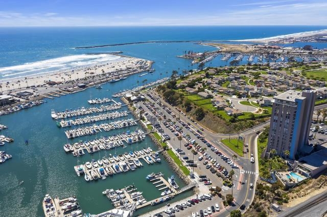 Breathtaking whitewater ocean and harbor views! On a clear day you can see Catalina and San Clemente Islands, and watch the kayakers and sailboats drift in and out of the harbor from your living room. From your private balcony, you can watch the surfers, or grab your board and join them! This unique highrise building is a rare find along the coast. This unit is a true 2 bedroom with artisan glass door panels separating the second bedroom and living area. Freshly carpeted and ready for your decorating touches. Note the many amenities in the building – pool, spa, barbecue area, exercise room, and well-appointed recreation room. Wifi, basic cable, and water included in your HOA dues. Secure building, and gated parking add to your comfort, and there is an additional storage closet for your surfboards, bicycles, beach chairs. Professional interior photos coming soon.