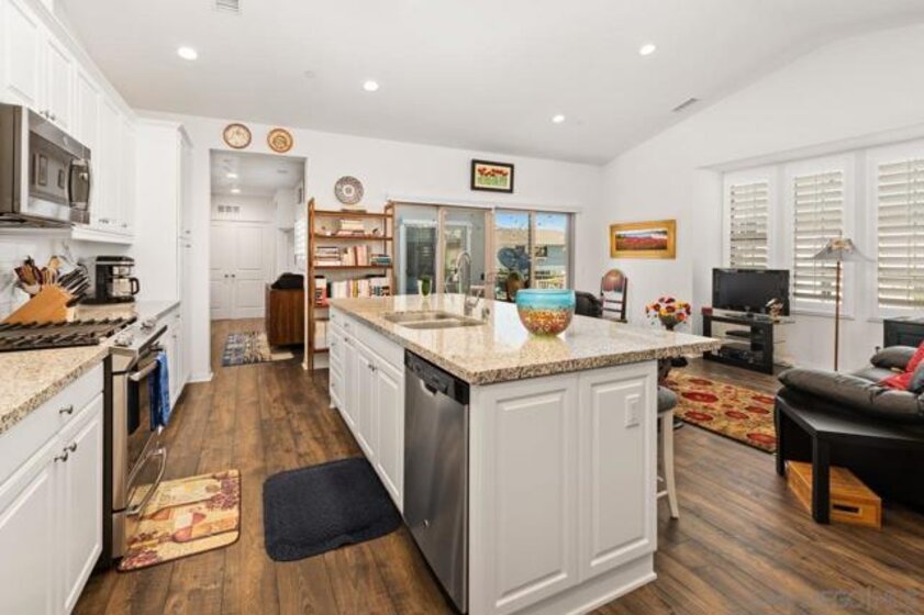 This gorgeous condo in the desirable gated St Cloud community has been meticulously maintained and shows like a model. Perfect for entertaining, the modern, spacious kitchen features a large center island with seating, granite counters, stainless steel appliances, open to the great room with vaulted ceilings and abundant windows with plantation shutters. Double door access from the great room to the spacious patio offers expanded indoor-outdoor living. The living area and bedrooms are all on one level. The primary bedroom features a large walk-in closet with custom built-in organizer system, ceiling fan and plantations shutters. The secondary bedroom offers a slider to the patio, custom closet organizer and ceiling fan. Additional cabinets were installed in the hallway for extra storage. The home also features a tankless water heater, and an electric car charger has been installed in the garage. St Cloud offers wonderful amenities including a resort style pool, spa, clubhouse, fitness center, tot lot, basketball court and BBQ stations. Complex Features: ,,, Equipment: Garage Door Opener Sewer: Sewer Connected Topography: LL
