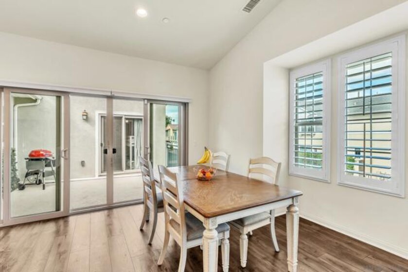 This spacious townhome showcases a great room with vaulted ceilings, massive kitchen island, modern stainless-steel appliances, and abundant cabinet space. The primary bedroom boasts a large bathroom and a well- apportioned Closet World walk-in wardrobe. You’ll love the upgraded plantation shutters, the attached two-car garage, as well as plenty of storage space and natural light throughout the entire home. Home includes bonus storage space added in hallway between bedrooms. Second bedroom has a third closet door. Home is wired ADT ready. Located in the resort-like, gated St. Cloud community within Ivey Ranch, this complex features a clubhouse, pool, jacuzzi, cabanas, BBQ area, and children’s playground, just minutes from the beach, shopping, freeways, and highly regarded schools. Please come see how much this home has to offer!