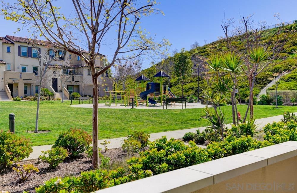 Beautifully upgraded corner-unit townhome with solar in the gated Hideaway at St. Cloud community in Oceanside! This rare 2-story model features a main-level entry with a bedroom and full bath downstairs—ideal for guests or multigenerational living. Built in 2018, this 3 bed, 3 bath home offers an open layout with upgraded flooring, a spacious kitchen with quartz counters, shaker cabinetry, stainless steel appliances, and a large island. You can watch the kids play in the green space or playground from the kitchen window or the private patio. Upstairs features a generous loft, full laundry room, and a serene primary suite with walk-in closet and dual sinks. Attached 2-car garage and solar system for energy efficiency. Close guest parking adds convenience. Enjoy resort-style amenities including a junior Olympic pool, spa, gym, clubhouse, basketball court, and parks. Located near top-rated schools: Ivey Ranch Elementary—known for academic strength and a welcoming community; Mission Vista High—offering dual-magnet programs in arts and technology; and St. Mary Star of the Sea—a private Pre-K–8 Catholic school known for strong academics. Minutes from Skylark and Oak Riparian Parks, downtown Oceanside, beaches, and major freeways. An ideal blend of comfort, efficiency, and location!