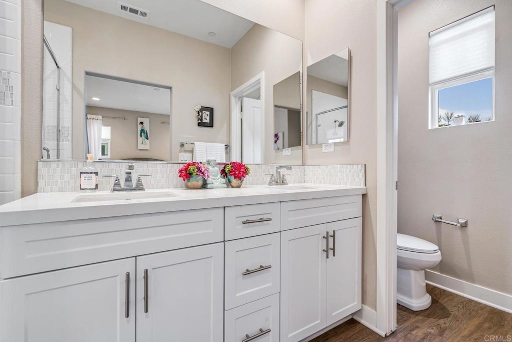 Rare and highly desirable 2-story model within "Hideaway at St. Cloud" that features main level entry, along with an easily accessible bedroom and full bath on the 1st floor. This 3 bed/3 bath townhome was built in 2018 and is located in the private, gated community of St. Cloud. This corner unit is recently updated move-in ready, and allows for lots of natural light. Seller upgraded flooring to a Luxury Vinyl Plank throughout the entire unit. It also features a spacious loft, high end kitchen, upstairs laundry, enclosed patio, and is close to guest parking & large playground. As part of the St. Cloud master planned community, residents have access to resort-style amenities including the Clubhouse, Jr. Olympic size pool & spa, cabanas, BBQs, a fitness center, basketball court, and parks. This community is in the heart of Oceanside and is close to I-5 and Highways 76 & 78. It is also in walking distance to top rated schools and close to shops and restaurants.