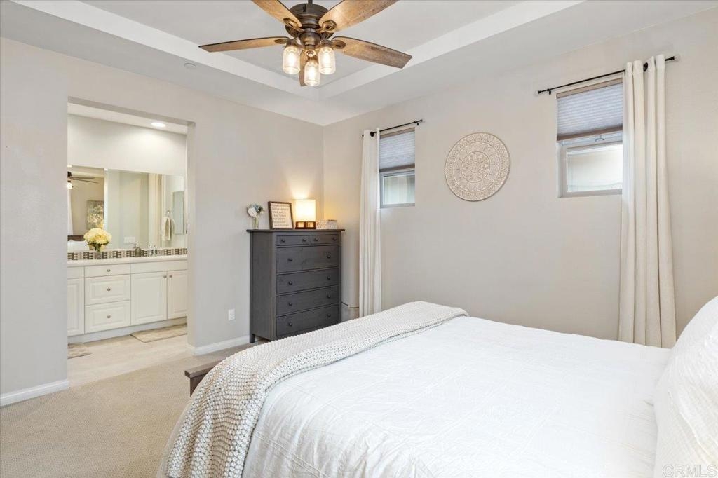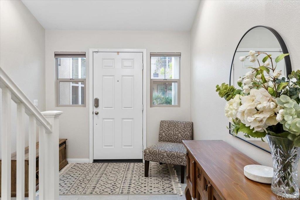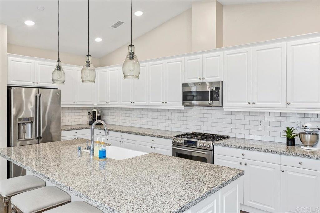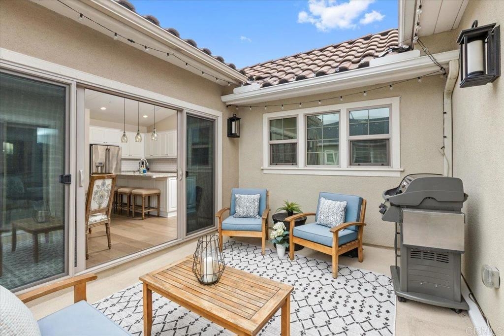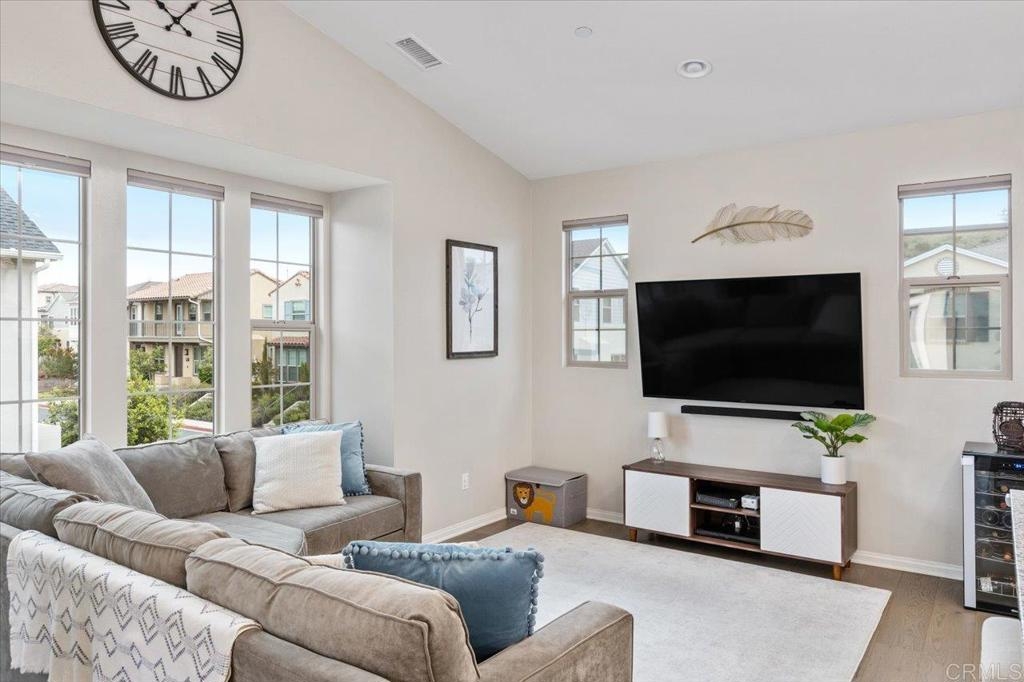 Welcome to the highly sought-after gated community of St. Cloud in beautiful Ivey Ranch / Rancho Del Oro. This community is FHA and Military VA approved! This impeccably maintained 2-bedroom, 2-bathroom townhome, built in 2016, offers an inviting atmosphere with abundant natural light streaming through south and east facing windows. Elegant neutral tones and vaulted ceilings enhance the modern and airy feel throughout the home. The spacious entryway leads up to the single-level living area. This gorgeous home features a gourmet open kitchen with large island, granite countertops, crisp white cabinetry, and stainless steel GE appliances overlooking the living room. Double-sliding doors open onto a welcoming patio, perfect for outdoor entertaining. The master suite is complete with a walk-in closet (featuring custom built-in storage), large shower, and double sink vanity. The second bedroom boasts a large closet and access to the patio. Additional features include: central AC, energy efficient LED lighting, hardwood floors, attached 2 car garage with epoxy flooring, full-size laundry closet, tankless water heater, whole-house fan to take advantage of the cool mornings and evenings, extra storage space throughout, and much more. Enjoy country club style living with community amenities including a stunning Junior Olympic sized pool with cabanas and jacuzzi, clubhouse with kitchenette for hosting gatherings, fitness center, half basketball court, playground, and lush landscaping throughout. Ideally positioned within walking distance to the top-rated Ivey Ranch Elementary School and to MLK Jr Park, which is perfect for walking your dog along hiking trails or sports activities. Enjoy a short 15 minute drive to local beaches, Highway 101 restaurants, cafes, breweries, and shopping. This move-in-ready home presents an incredible opportunity to live in one of Oceanside’s most desirable neighborhoods.