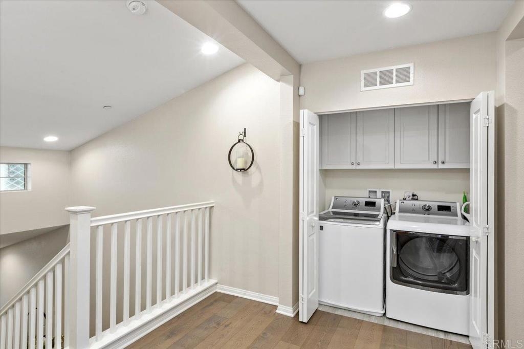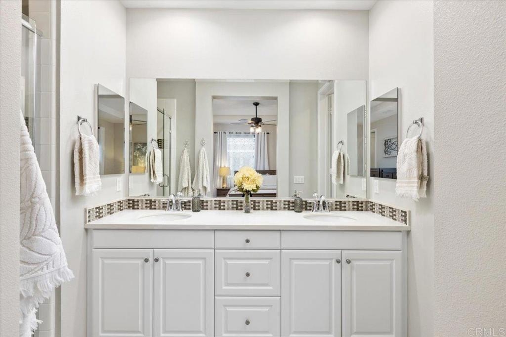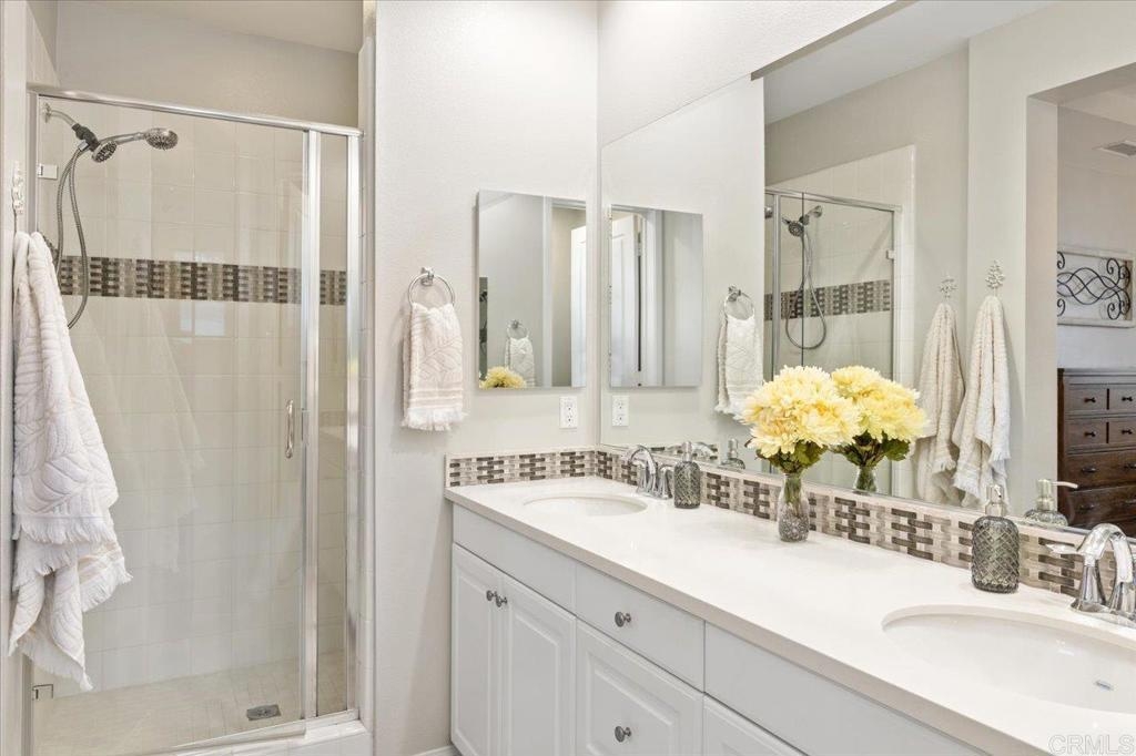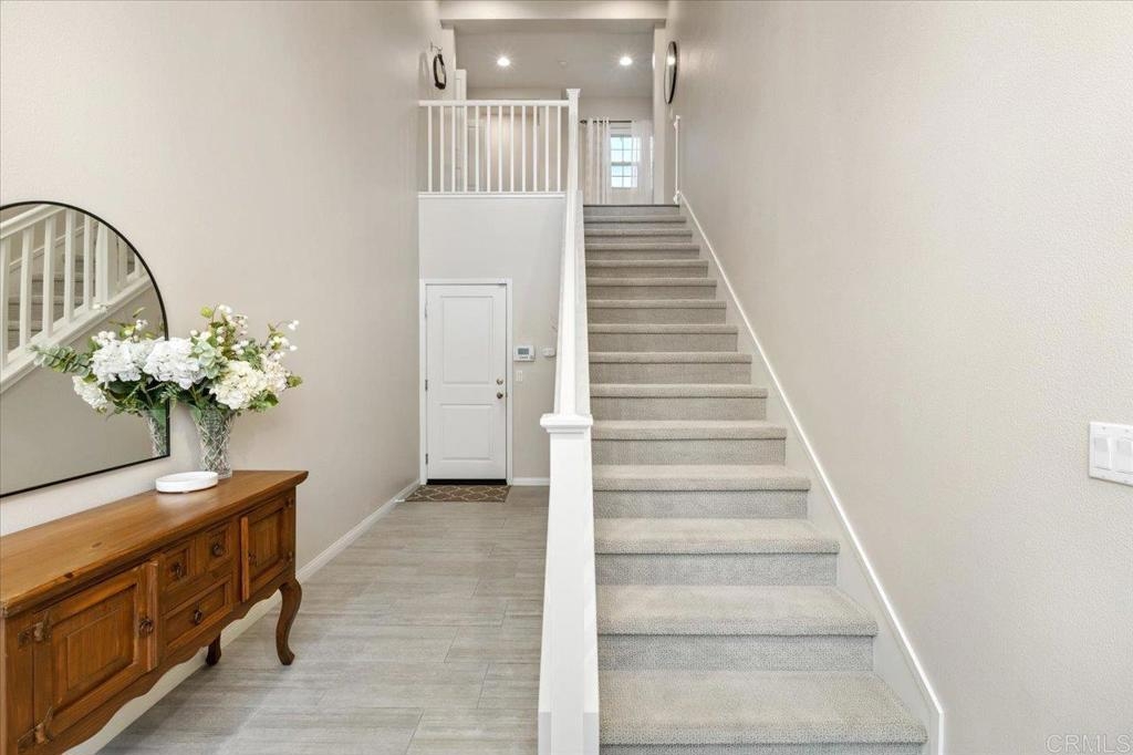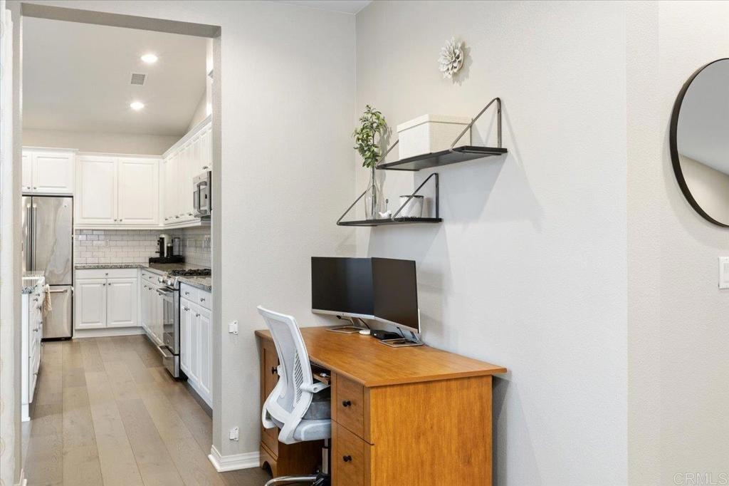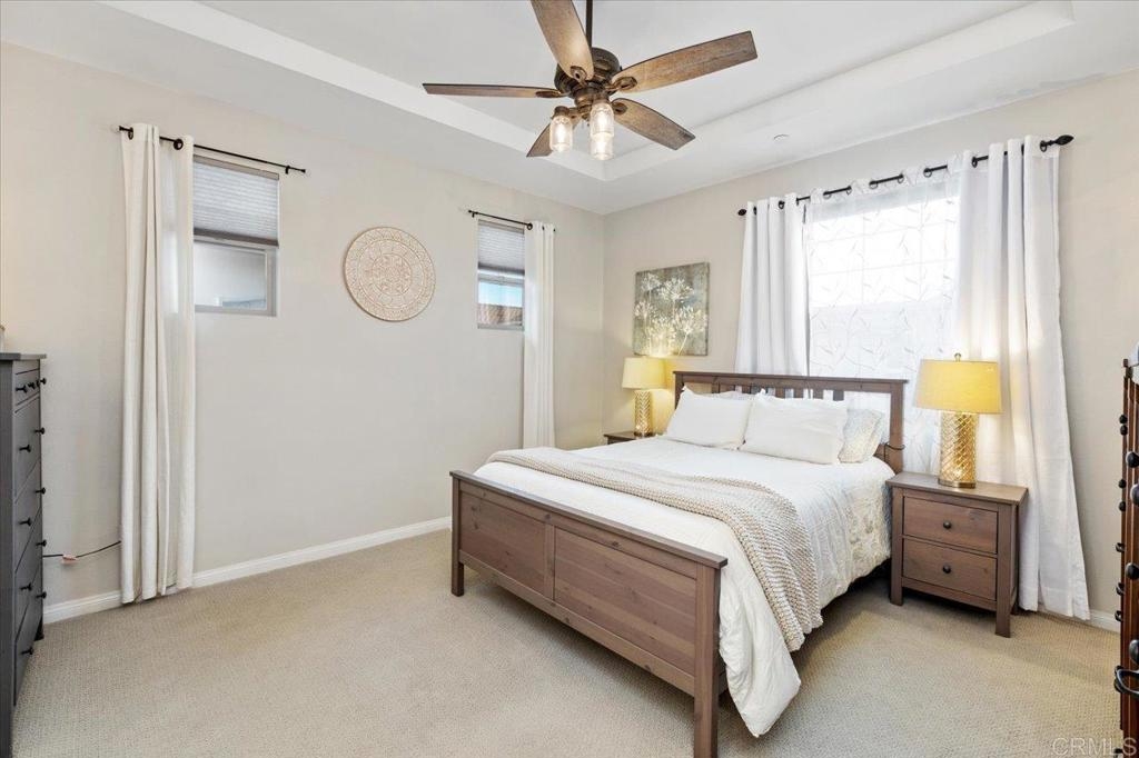 Welcome to the highly sought-after gated community of St. Cloud in beautiful Ivey Ranch / Rancho Del Oro. This community is FHA and Military VA approved! This impeccably maintained 2-bedroom, 2-bathroom townhome, built in 2016, offers an inviting atmosphere with abundant natural light streaming through south and east facing windows. Elegant neutral tones and vaulted ceilings enhance the modern and airy feel throughout the home. The spacious entryway leads up to the single-level living area. This gorgeous home features a gourmet open kitchen with large island, granite countertops, crisp white cabinetry, and stainless steel GE appliances overlooking the living room. Double-sliding doors open onto a welcoming patio, perfect for outdoor entertaining. The master suite is complete with a walk-in closet (featuring custom built-in storage), large shower, and double sink vanity. The second bedroom boasts a large closet and access to the patio. Additional features include: central AC, energy efficient LED lighting, hardwood floors, attached 2 car garage with epoxy flooring, full-size laundry closet, tankless water heater, whole-house fan to take advantage of the cool mornings and evenings, extra storage space throughout, and much more. Enjoy country club style living with community amenities including a stunning Junior Olympic sized pool with cabanas and jacuzzi, clubhouse with kitchenette for hosting gatherings, fitness center, half basketball court, playground, and lush landscaping throughout. Ideally positioned within walking distance to the top-rated Ivey Ranch Elementary School and to MLK Jr Park, which is perfect for walking your dog along hiking trails or sports activities. Enjoy a short 15 minute drive to local beaches, Highway 101 restaurants, cafes, breweries, and shopping. This move-in-ready home presents an incredible opportunity to live in one of Oceanside’s most desirable neighborhoods.