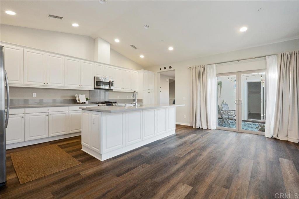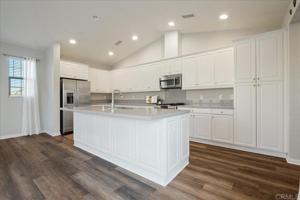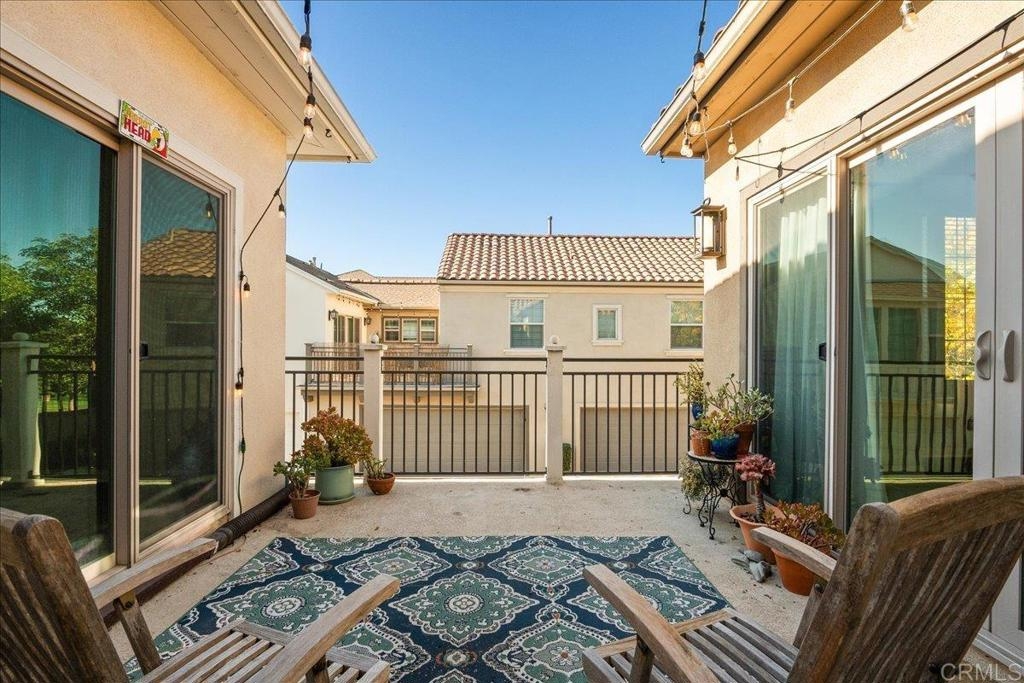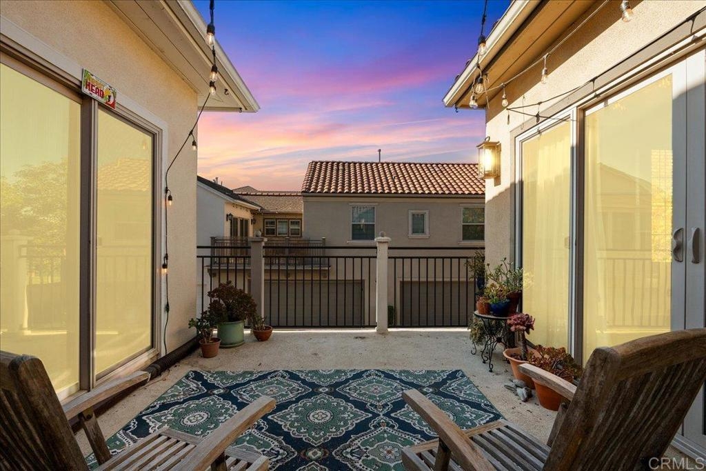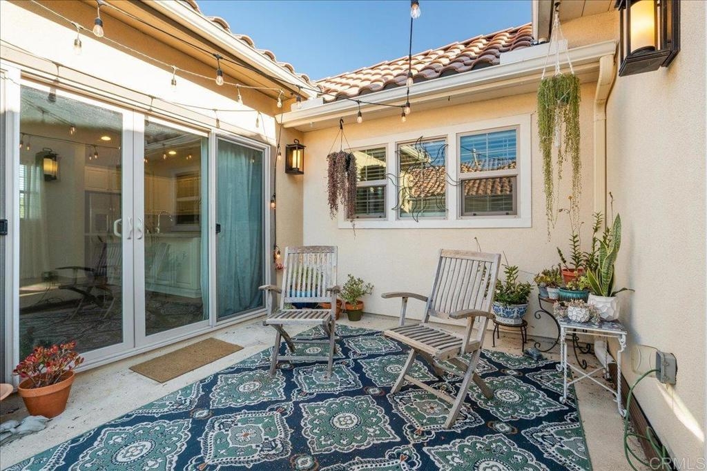 Welcome to this beautifully updated 2-bedroom, 2-bathroom home in the serene St. Cloud neighborhood, where privacy, modern comfort, and convenience come together. Elevated above the entry stairs, all living spaces are thoughtfully designed on a single level, giving the home the ease of a one-story layout. Inside, dual-pane windows and warm luxury vinyl plank (LVP) flooring set the stage for a contemporary yet inviting ambiance, while sleek stainless steel appliances bring a touch of modern elegance. At the top of the stairs, a versatile landing area offers space for a laundry closet, future office, or additional storage. The spacious kitchen boasts ample cabinet storage and a large island that seamlessly connects the dining and living areas—ideal for entertaining or unwinding at the end of the day. Step outside to the west-facing deck, a perfect retreat for enjoying your morning coffee, soaking in coastal breezes, or watching breathtaking sunsets. The attached two-car garage provides generous storage and everyday convenience. Tucked away from the main neighborhood streets, this home offers a heightened sense of privacy and tranquility. Residents of St. Cloud enjoy a low HOA fee of $345, granting access to resort-style amenities including a full Olympic-sized pool, spa, clubhouse, gym, lush green spaces, and ample lounge areas for relaxation. Utilities are incredibly affordable, with water and trash costs averaging under $60/month for the current owner. The gated entry enhances security and fosters a welcoming community atmosphere. Ideally situated near Martin Luther King Middle School and the highly rated Ivey Ranch Elementary, this home is also just minutes from El Camino High School and the exciting new developments at El Corazón, home to Frontwave Arena and the SD Clippers. The area also features an aquatic center with more to come including parks, walking trails, baseball fields, recreational spaces, and a bandstand for live events in the near future. Whether you're searching for a primary residence or a vacation retreat, this home is a rare opportunity to experience the best of coastal living. Don’t miss your chance to make this incredible property your own!