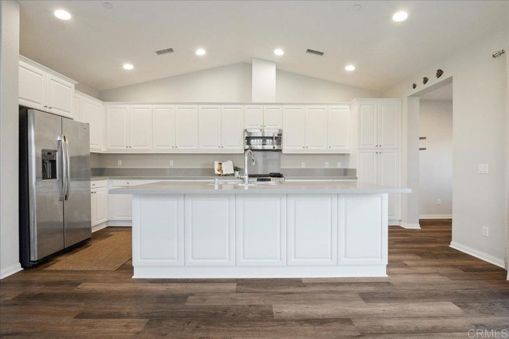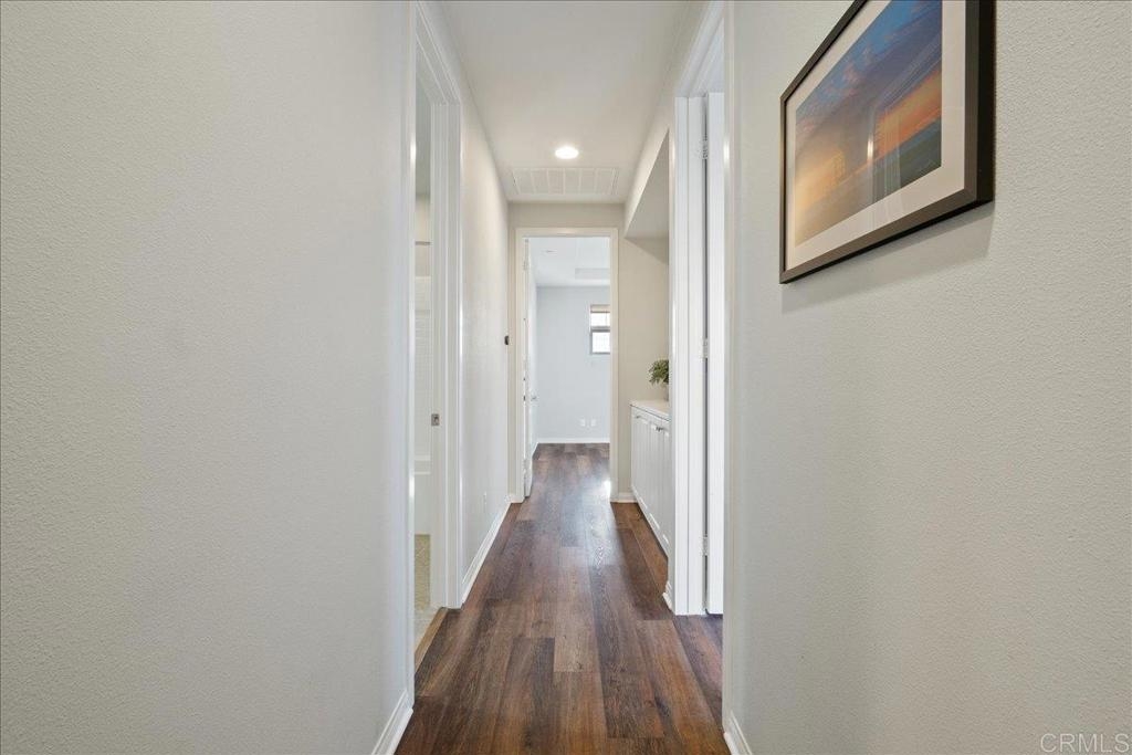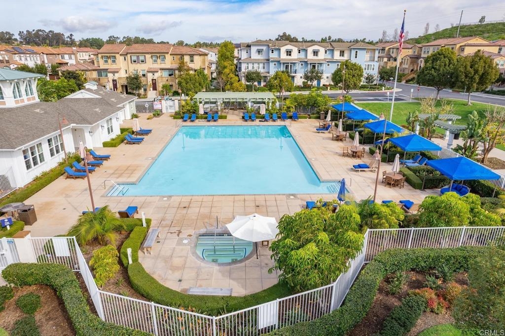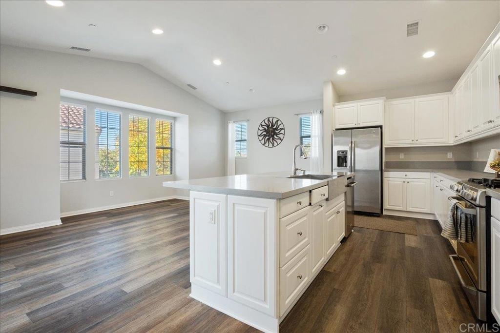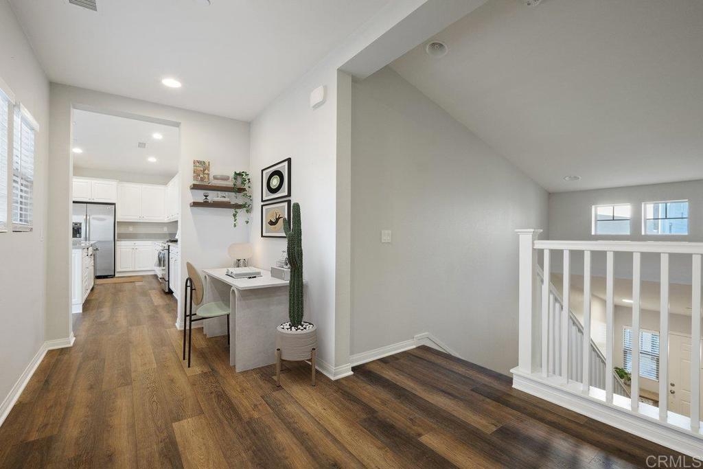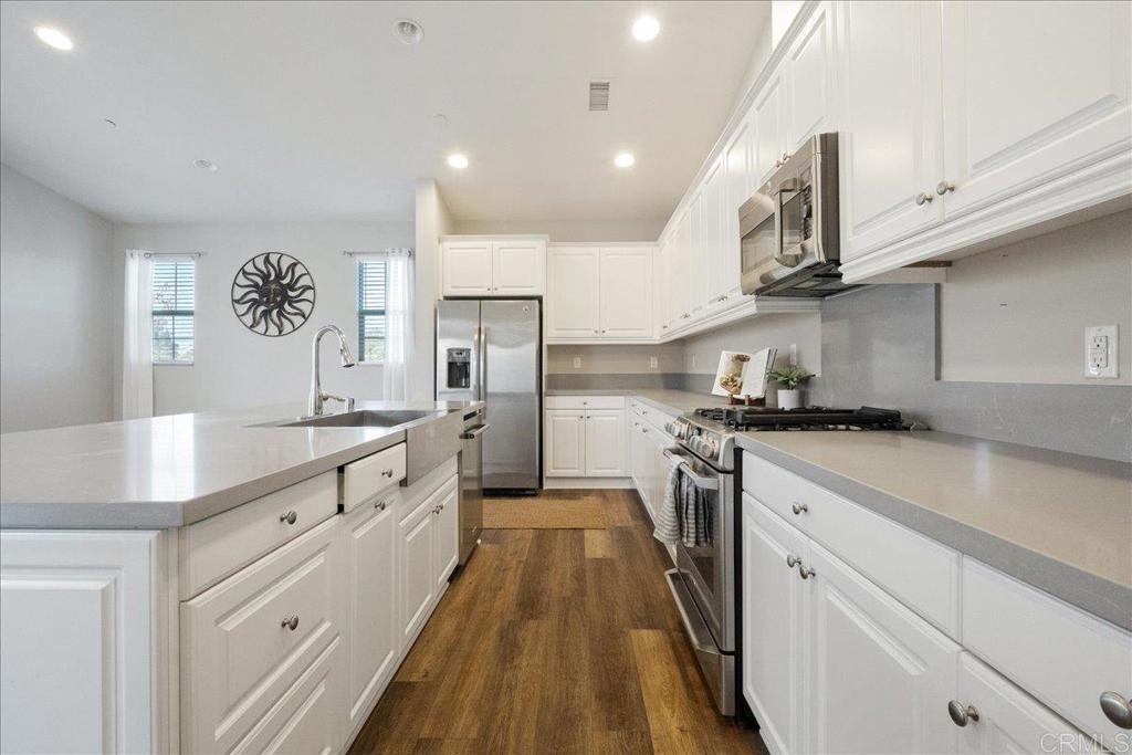 Welcome to this beautifully updated 2-bedroom, 2-bathroom home in the serene St. Cloud neighborhood, where privacy, modern comfort, and convenience come together. Elevated above the entry stairs, all living spaces are thoughtfully designed on a single level, giving the home the ease of a one-story layout. Inside, dual-pane windows and warm luxury vinyl plank (LVP) flooring set the stage for a contemporary yet inviting ambiance, while sleek stainless steel appliances bring a touch of modern elegance. At the top of the stairs, a versatile landing area offers space for a laundry closet, future office, or additional storage. The spacious kitchen boasts ample cabinet storage and a large island that seamlessly connects the dining and living areas—ideal for entertaining or unwinding at the end of the day. Step outside to the west-facing deck, a perfect retreat for enjoying your morning coffee, soaking in coastal breezes, or watching breathtaking sunsets. The attached two-car garage provides generous storage and everyday convenience. Tucked away from the main neighborhood streets, this home offers a heightened sense of privacy and tranquility. Residents of St. Cloud enjoy a low HOA fee of $345, granting access to resort-style amenities including a full Olympic-sized pool, spa, clubhouse, gym, lush green spaces, and ample lounge areas for relaxation. Utilities are incredibly affordable, with water and trash costs averaging under $60/month for the current owner. The gated entry enhances security and fosters a welcoming community atmosphere. Ideally situated near Martin Luther King Middle School and the highly rated Ivey Ranch Elementary, this home is also just minutes from El Camino High School and the exciting new developments at El Corazón, home to Frontwave Arena and the SD Clippers. The area also features an aquatic center with more to come including parks, walking trails, baseball fields, recreational spaces, and a bandstand for live events in the near future. Whether you're searching for a primary residence or a vacation retreat, this home is a rare opportunity to experience the best of coastal living. Don’t miss your chance to make this incredible property your own!