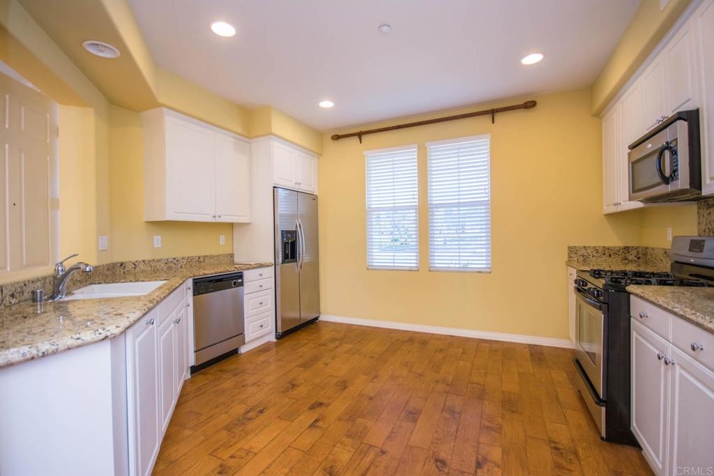 Gorgeous upgraded unit in gated community. Gorgeous, highly upgraded,attached end unit with private fenced courtyard. 3 bedrooms located upstairs. Kitchen with granite counters & stainless steel appliances. Custom paint & accent white wood paneled walls. Hardwood floors & upgraded carpet. Master with separate shower & soaking tub + walk-in closet. HOA with community pool and spa.