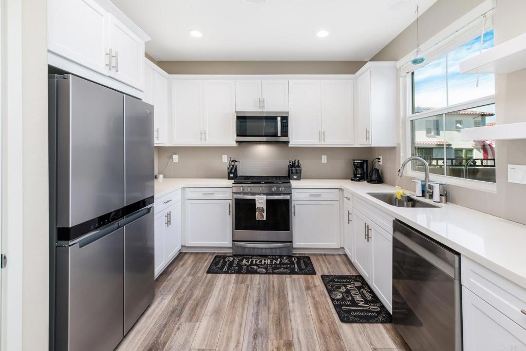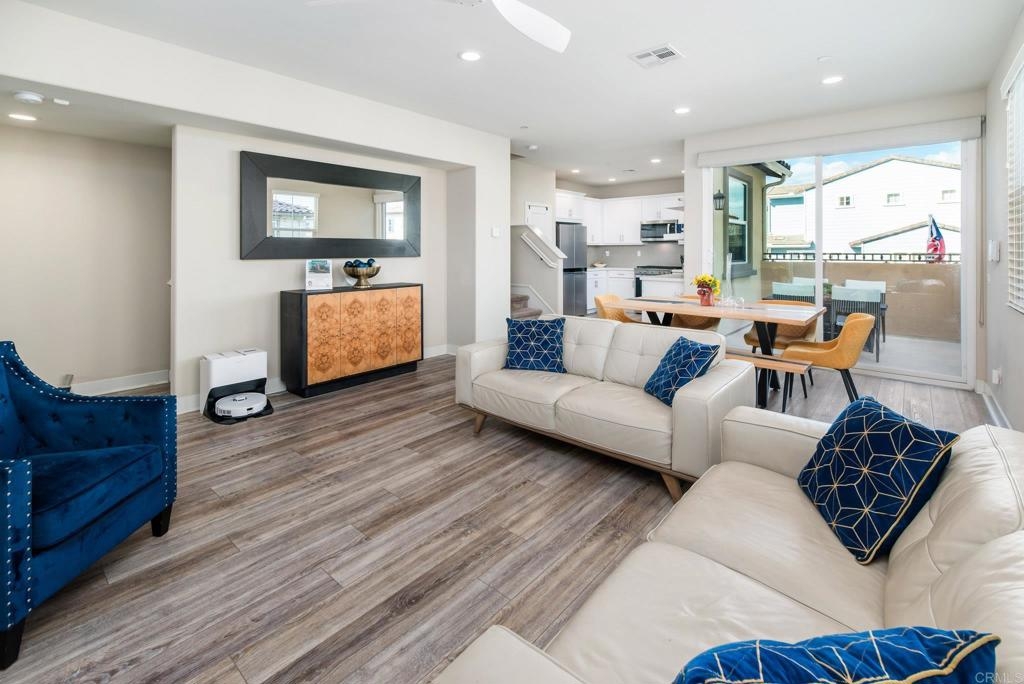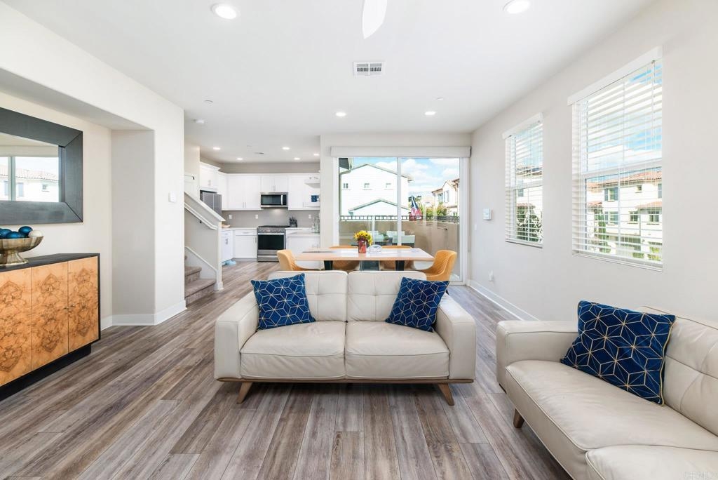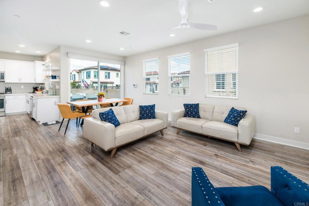 Welcome to this stunning tri-level townhome located in the highly sought-after St Cloud gated community. Designed with an open-floor plan, this home offers a perfect blend of modern living and convenience. The first floor features a private bedroom and bathroom suite with a spacious closet, ideal for guests or a home office. Throughout the home, enjoy the added luxury of custom blinds and a stylish sliding door shade. The beautifully appointed kitchen is a chef’s delight, featuring granite countertops and high-efficiency, Energy Star appliances, perfect for preparing meals while saving on energy costs. The home is also equipped with dual high-efficiency air conditioning units, ensuring year-round comfort while keeping energy consumption low. The property includes an attached 2-car garage for easy parking and extra storage. Living in St Cloud means access to resort-style amenities, including a Jr. Olympic-sized pool and spa, playground, basketball half-court, gym, clubhouse, and a serene community park. Located just minutes from Oceanside Pier and Pacific Beach Resort, this home offers the best of coastal living with nearby beaches, dining, and entertainment. Don’t miss your chance to own a home in this exceptional community!