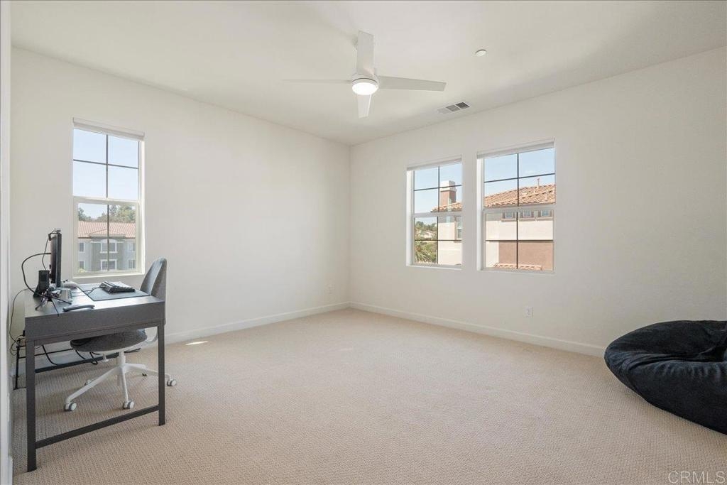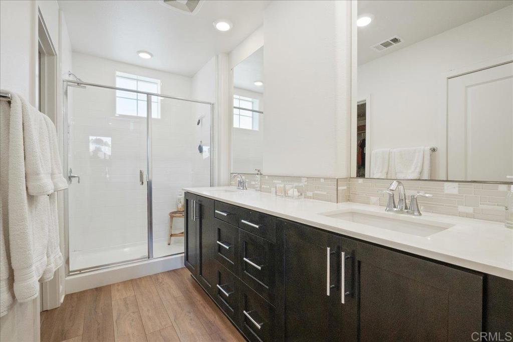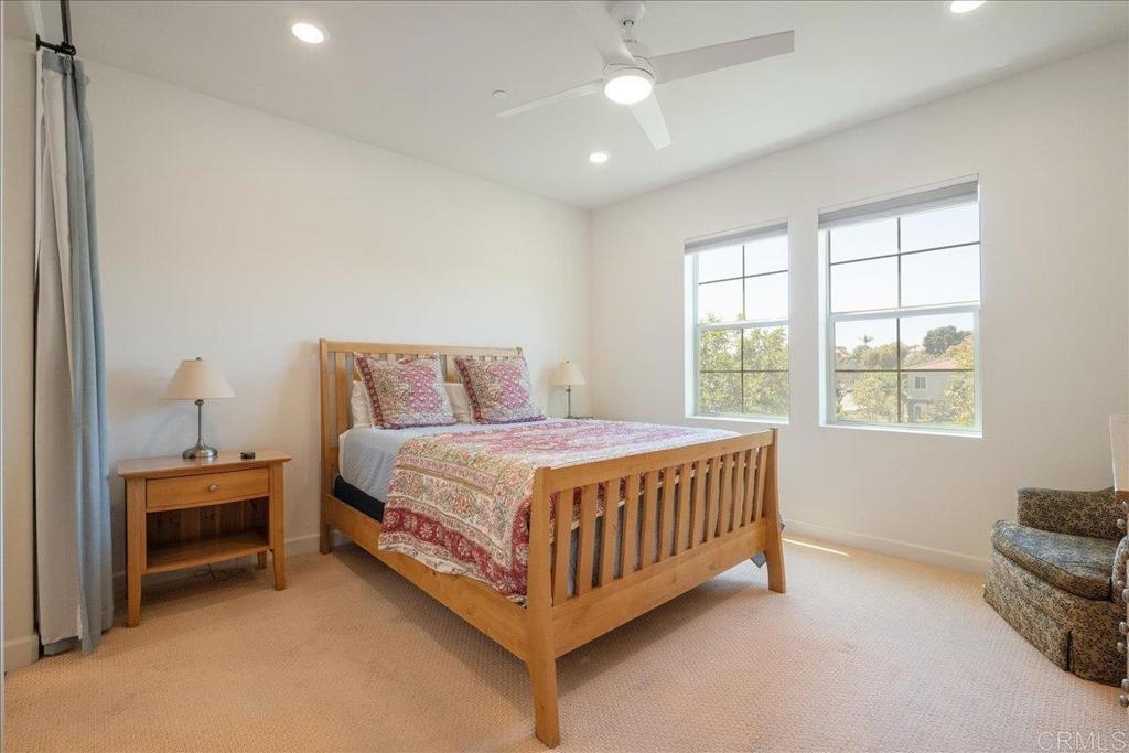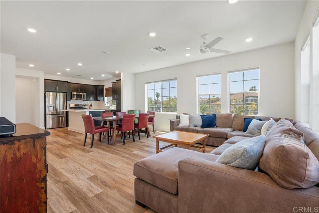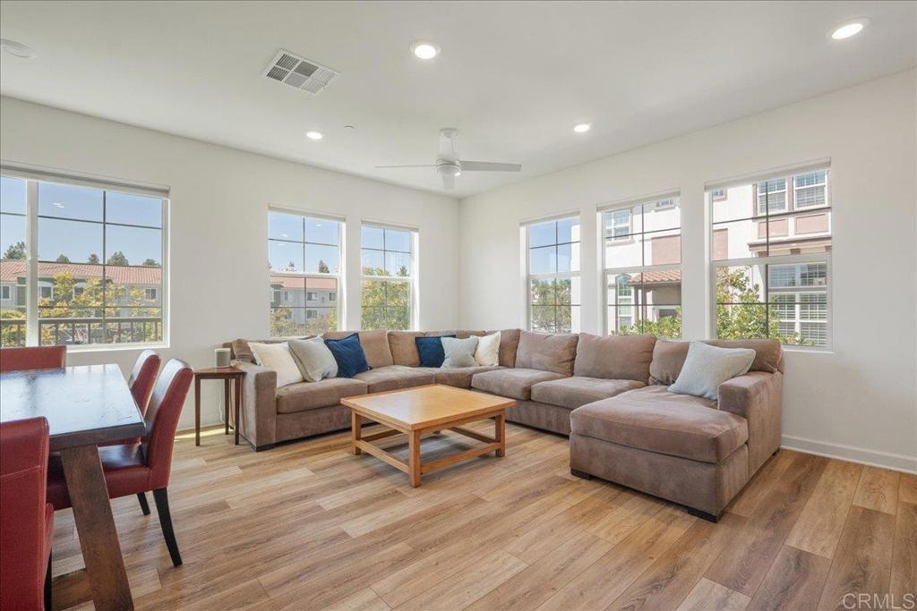 Welcome to 4366 Pacifica Way, Unit 5, a beautifully upgraded end-unit townhome nestled in the prestigious gated community of St. Cloud in Oceanside. This spacious 4-bedroom, 3.5-bathroom home offers 2,213 square feet of modern living across three thoughtfully designed levels. The flexible floor plan includes a full bedroom and en-suite bathroom on the first floor—perfect for guests or a home office—while the second level features an expansive open-concept living area, gourmet kitchen, and luxurious primary suite. Upstairs, two additional bedrooms and a full bathroom complete the home’s generous layout. Dual-pane windows and warm luxury vinyl plank (LVP) flooring set the stage for a contemporary yet inviting ambiance. The spacious kitchen offers ample cabinet storage, quartz countertops, modern stainless steel appliances and a large island that seamlessly connects the dining and living areas—ideal for entertaining or unwinding at the end of the day. Set on a quiet corner lot with greenbelt views, this townhome offers both privacy and peaceful surroundings. The St. Cloud community provides a resort-style lifestyle with amenities such as an Olympic-sized pool, spa, clubhouse, fitness center, BBQ areas, picnic spots, and playgrounds. The attached two-car garage offers direct access, extra storage, a quiet garage door, and a door leading out directly to the adjacent green belt. This home is situated near Martin Luther King Middle School, the highly rated Ivey Ranch Elementary, and is just minutes from El Camino High School and the exciting new developments at El Corazón, home to the Frontwave Arena and the SD Clippers. Whether you're searching for a primary residence or a vacation retreat, this home is a rare opportunity to experience the best of coastal living. Claim your place in one of Oceanside’s most desirable communities!