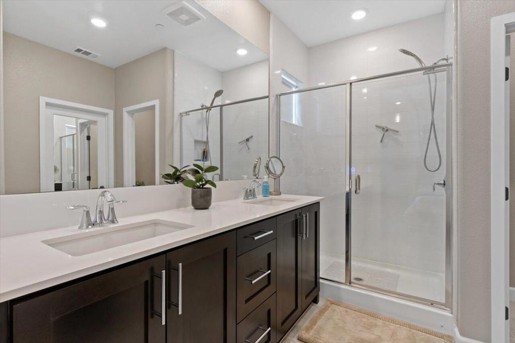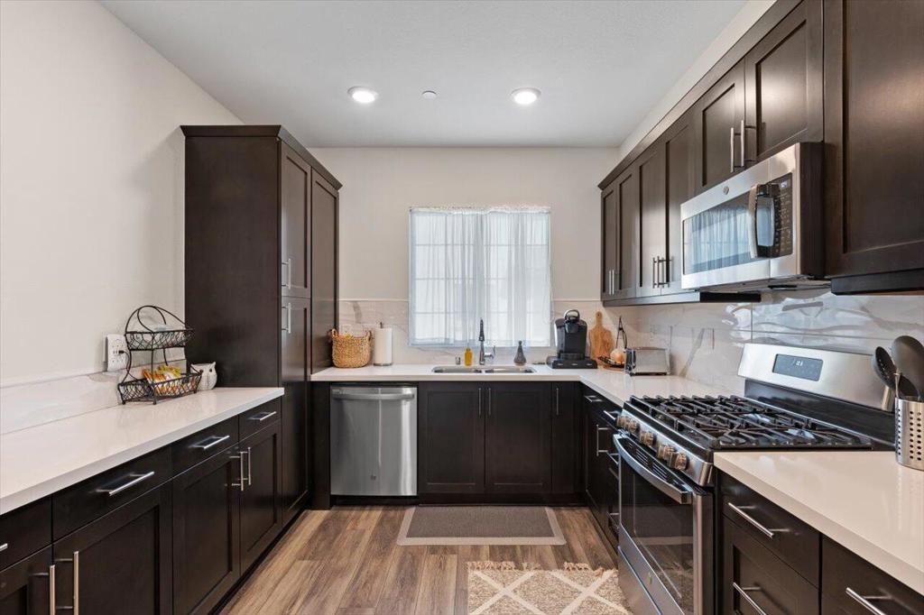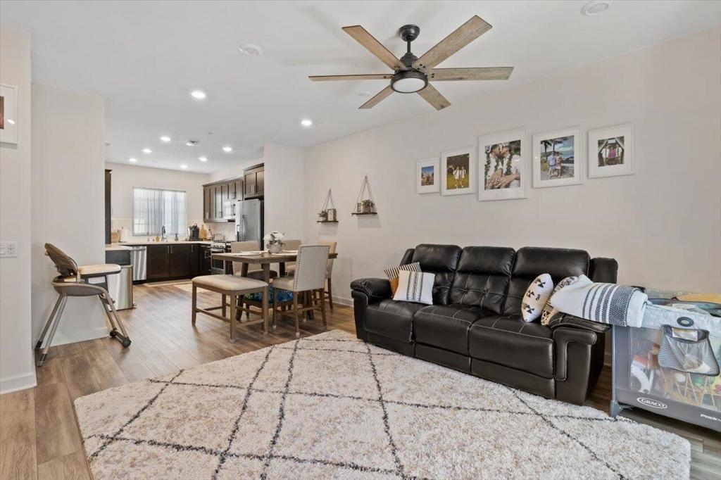 Incredible opportunity to own a home in St. Cloud that is almost brand new! This 2020 Lennar construction home in highly sought after gated St. Cloud community has it all. Main floor living includes a modern kitchen with smoke shaker cabinets with all white quartz counters, upgraded tile backsplash with open concept living/dining room area. Main level bedroom could be used as a guest bedroom or office with full bathroom. All appliances are included (including washer/dryer/fridge) and only 1 year old! Upgraded luxury vinyl wood plank flooring in main living areas. Smart home upgrades throughout with Ring doorbell, app function thermostat, LED lighting throughout, keyless front door entry and tankless water heater. Spacious 2 car attached garage with bonus storage under stairs at entry level.Enjoy the resort style community including Jr. Olympic pool and spa, indoor cardio room, clubhouse, basketball, BBQ, tot-lot and several large grassy areas to relax and play in. Walking distance to MLK park, trails and Ivey Ranch Elementary school. This is a MUST SEE!